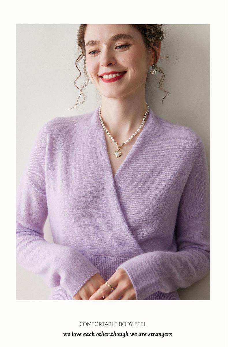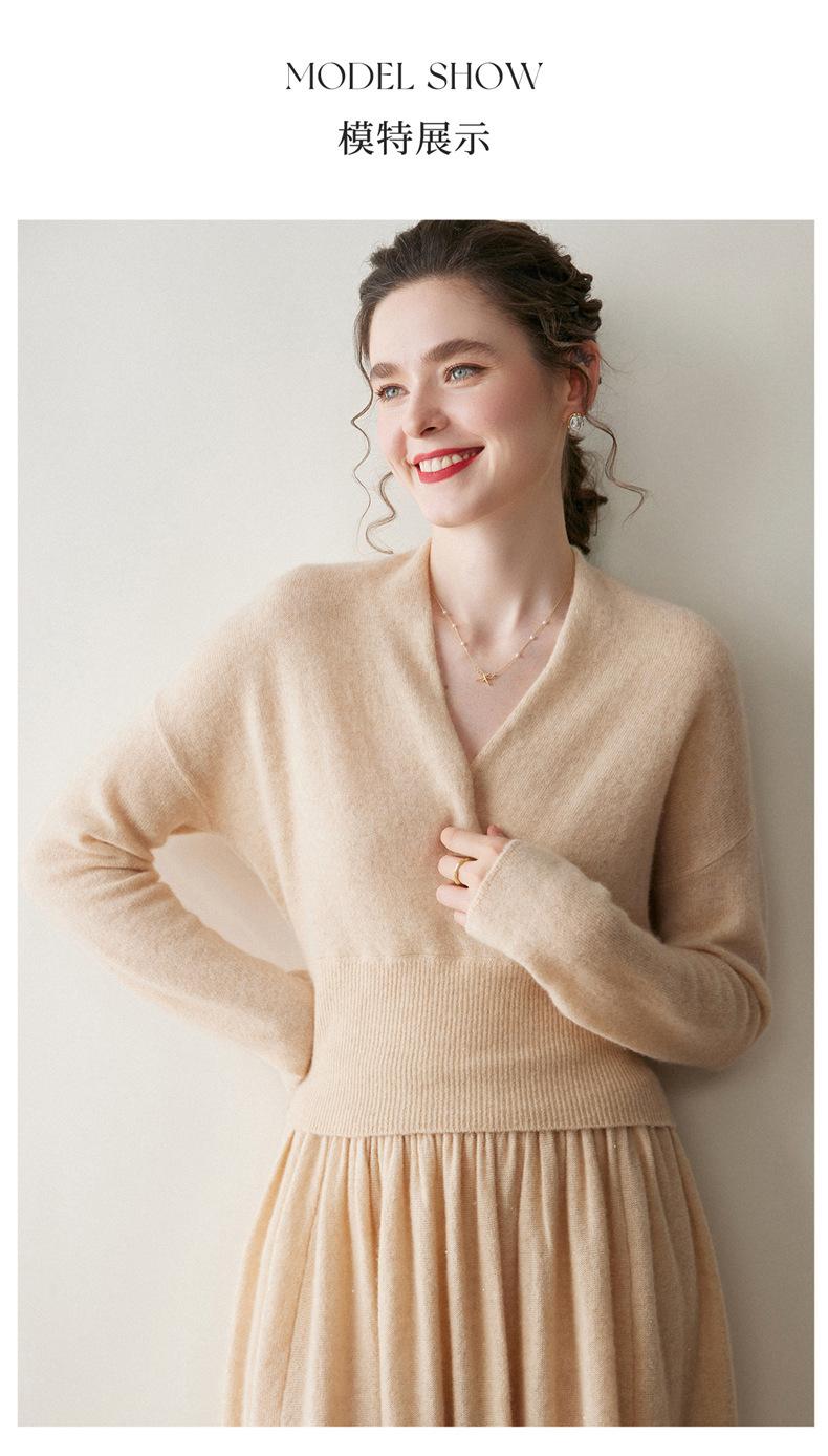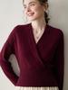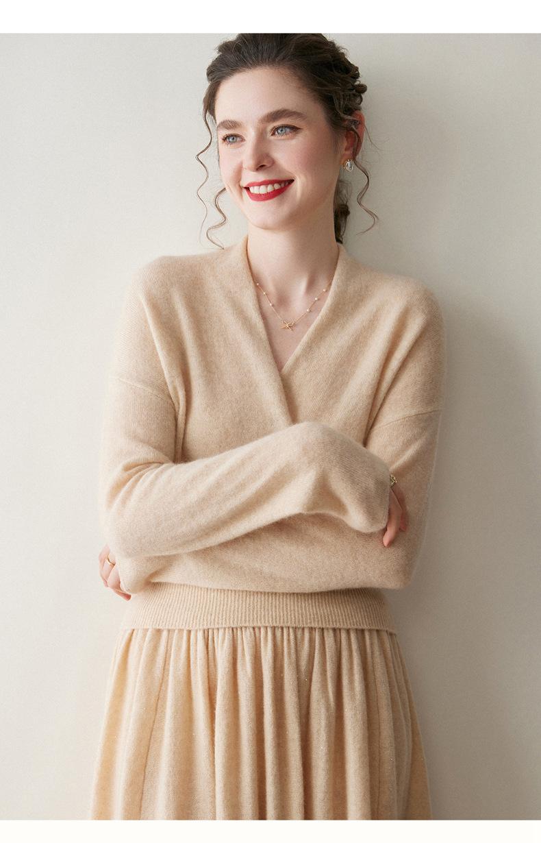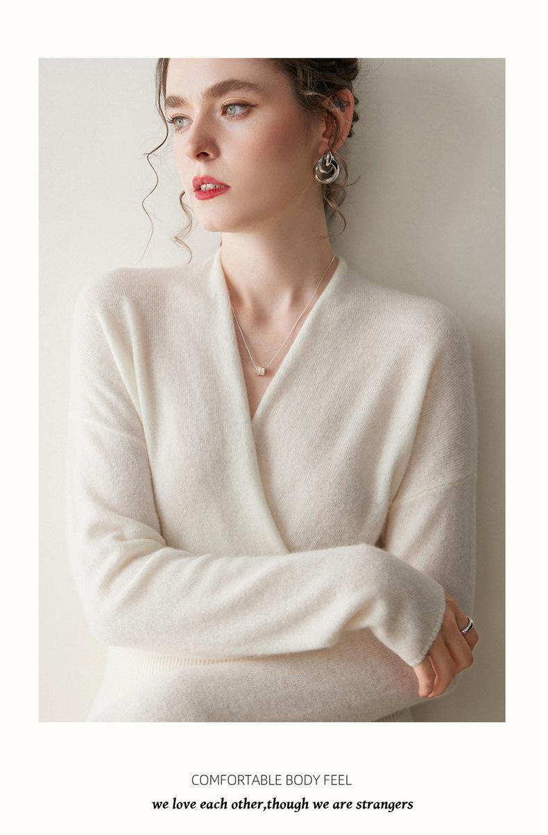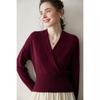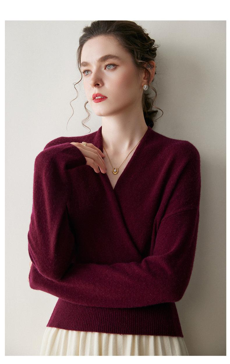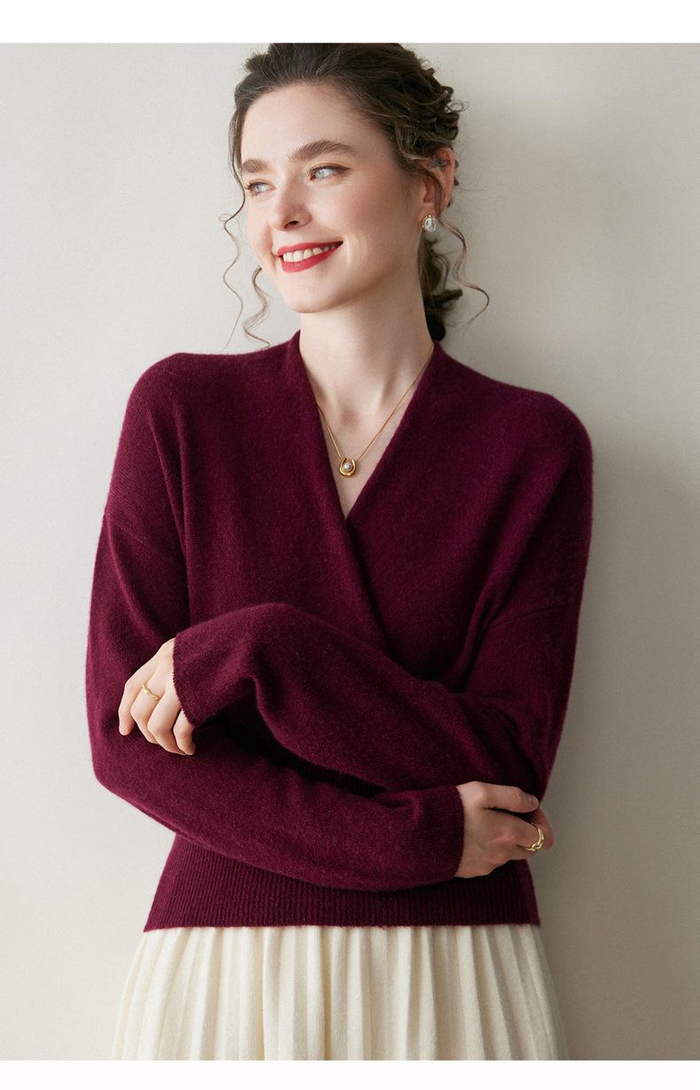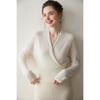 Suéter de cachemira con cuello en V cruzado para mujer 2025 otoño e invierno nuevo abrigo estilo bata francesa camisa básica de punto suéter holgado