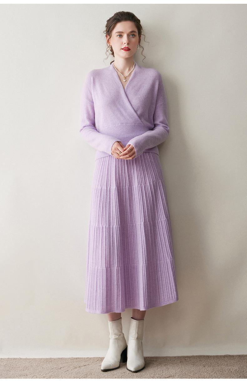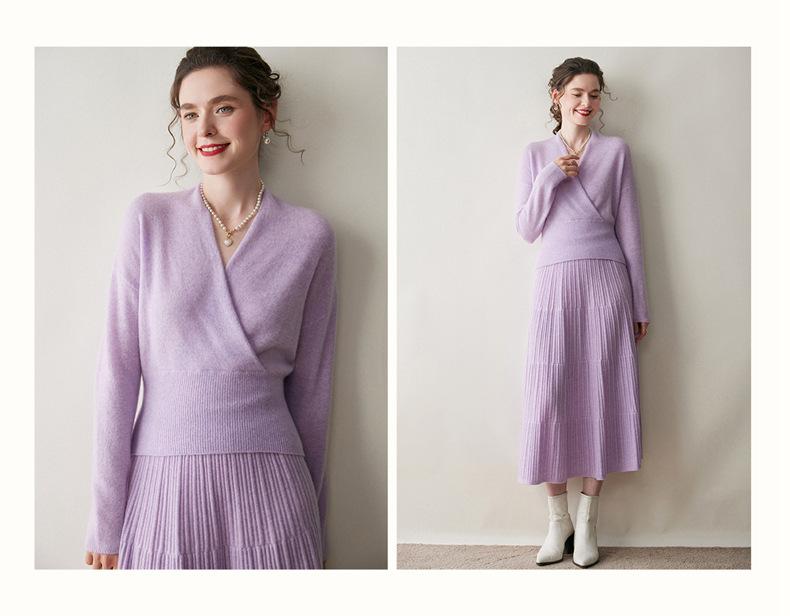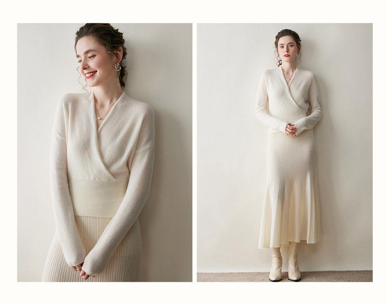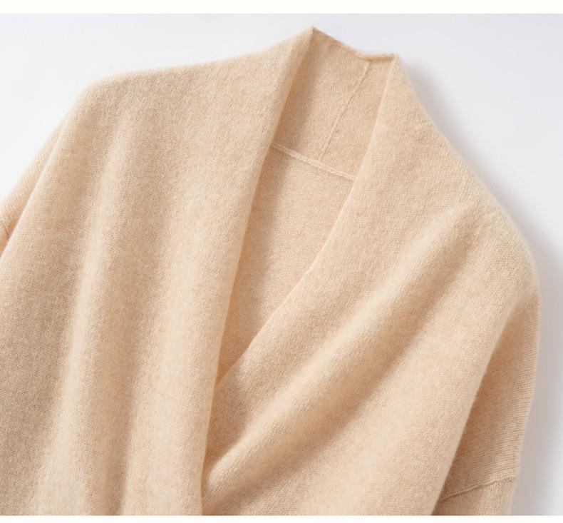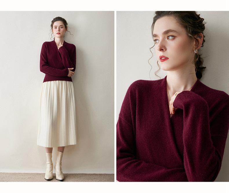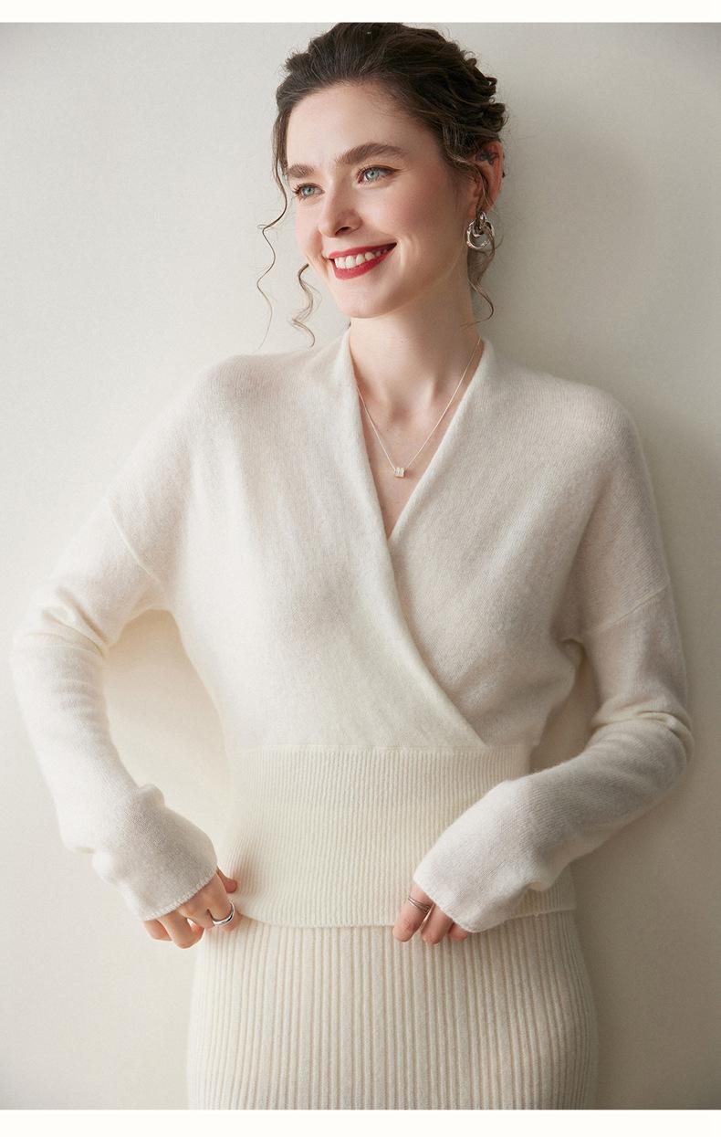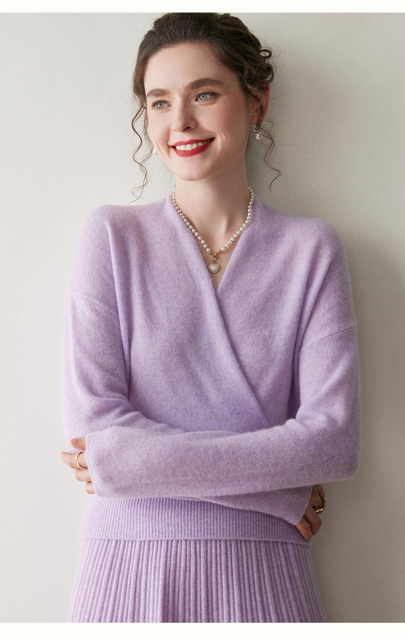 Suéter de cachemira con cuello en V cruzado para mujer 2025 otoño e invierno nuevo abrigo estilo bata francesa camisa básica de punto suéter holgado
