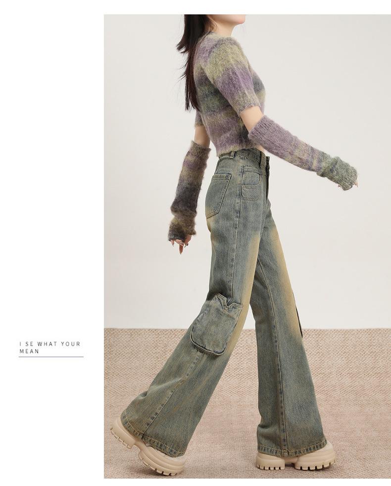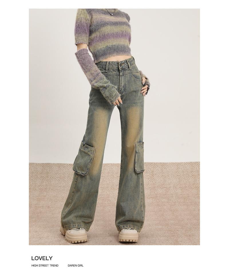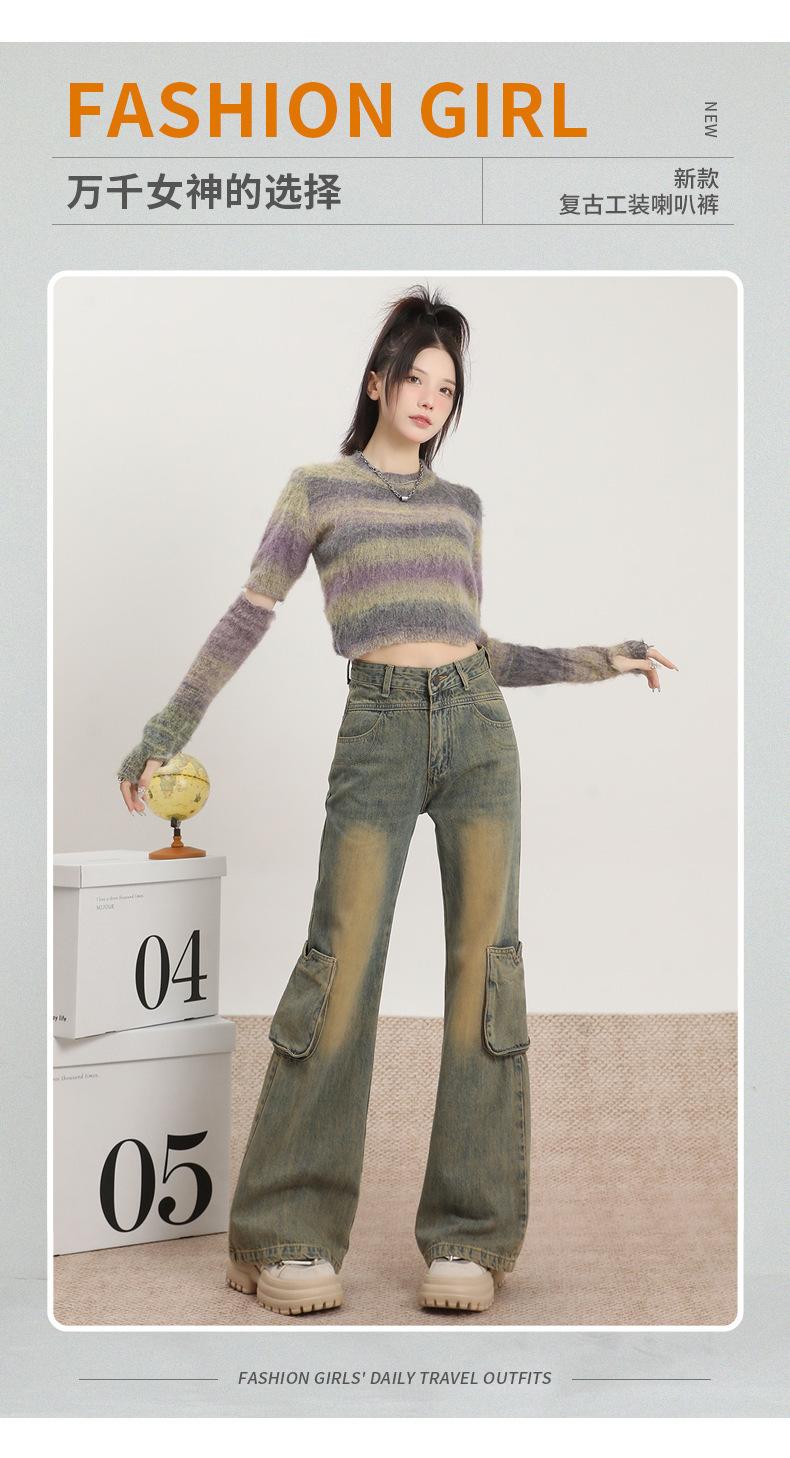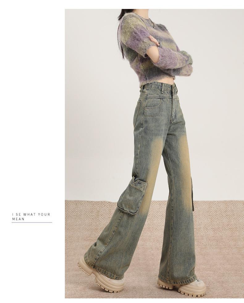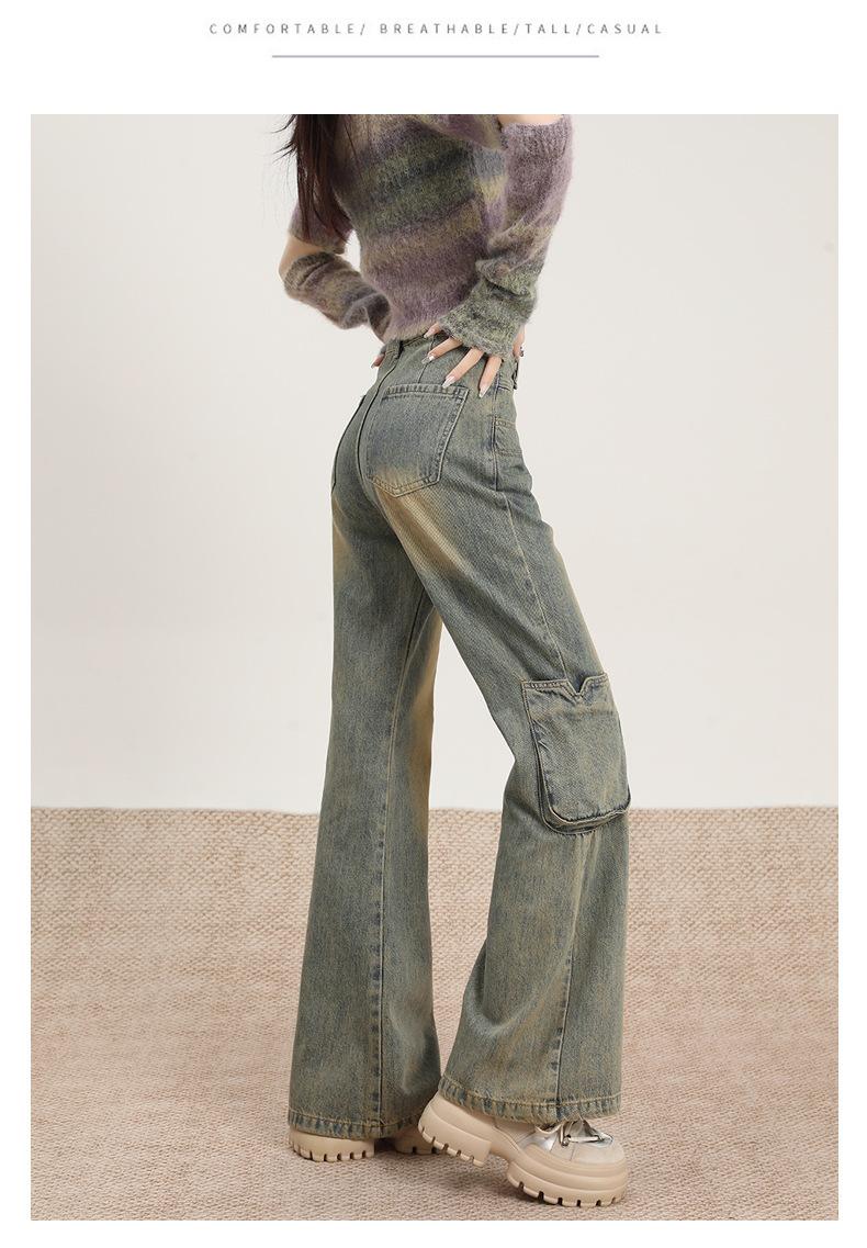 Jeans Acampanados Vintage de Ropa de Trabajo para Mujer Primavera 2025 Nuevo Diseño Bolsillo Cintura Alta Holgados Micro-Acampanados Pantalones Largos hasta el Piso
