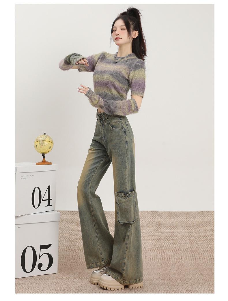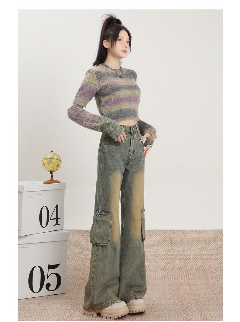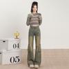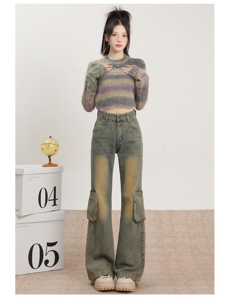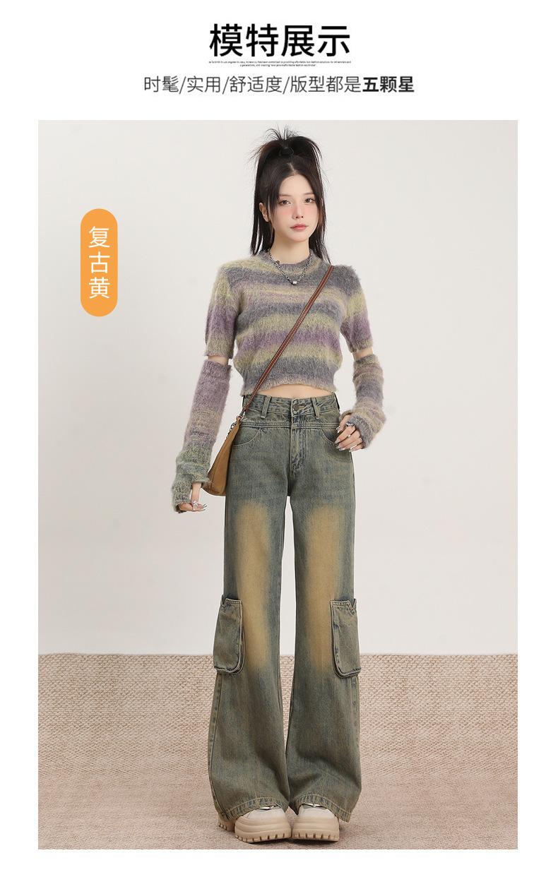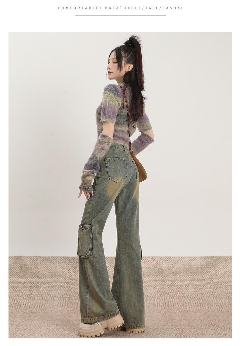 Jeans Acampanados Vintage de Ropa de Trabajo para Mujer Primavera 2025 Nuevo Diseño Bolsillo Cintura Alta Holgados Micro-Acampanados Pantalones Largos hasta el Piso