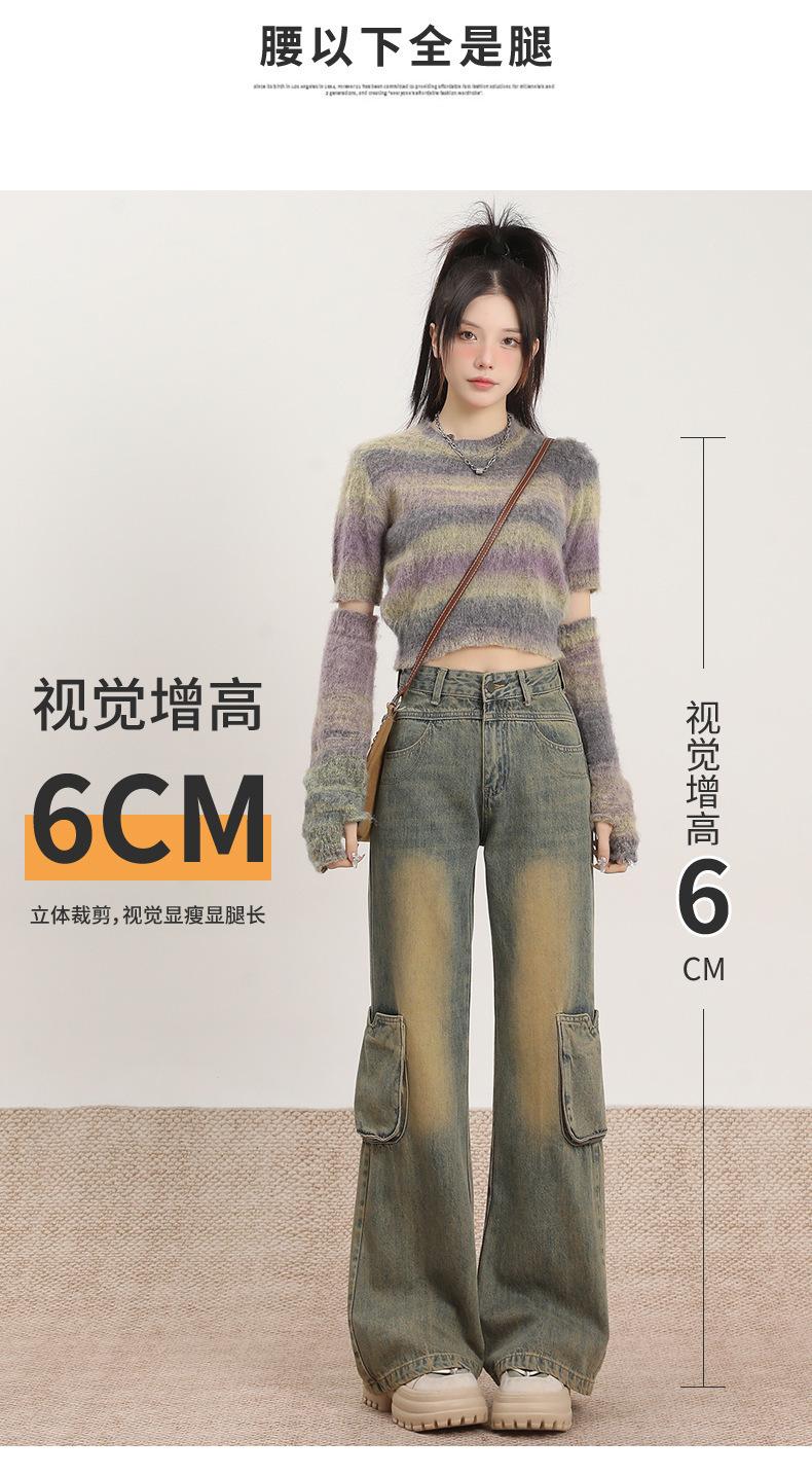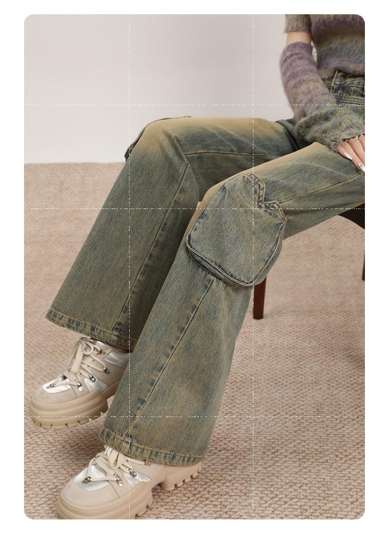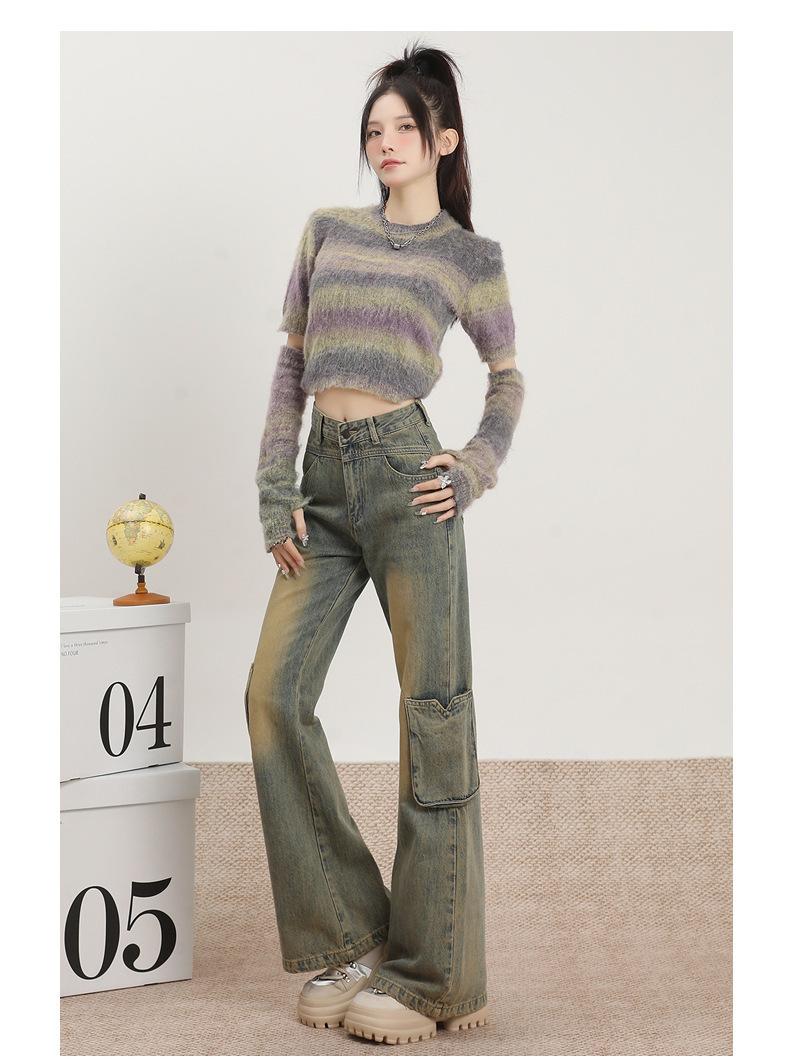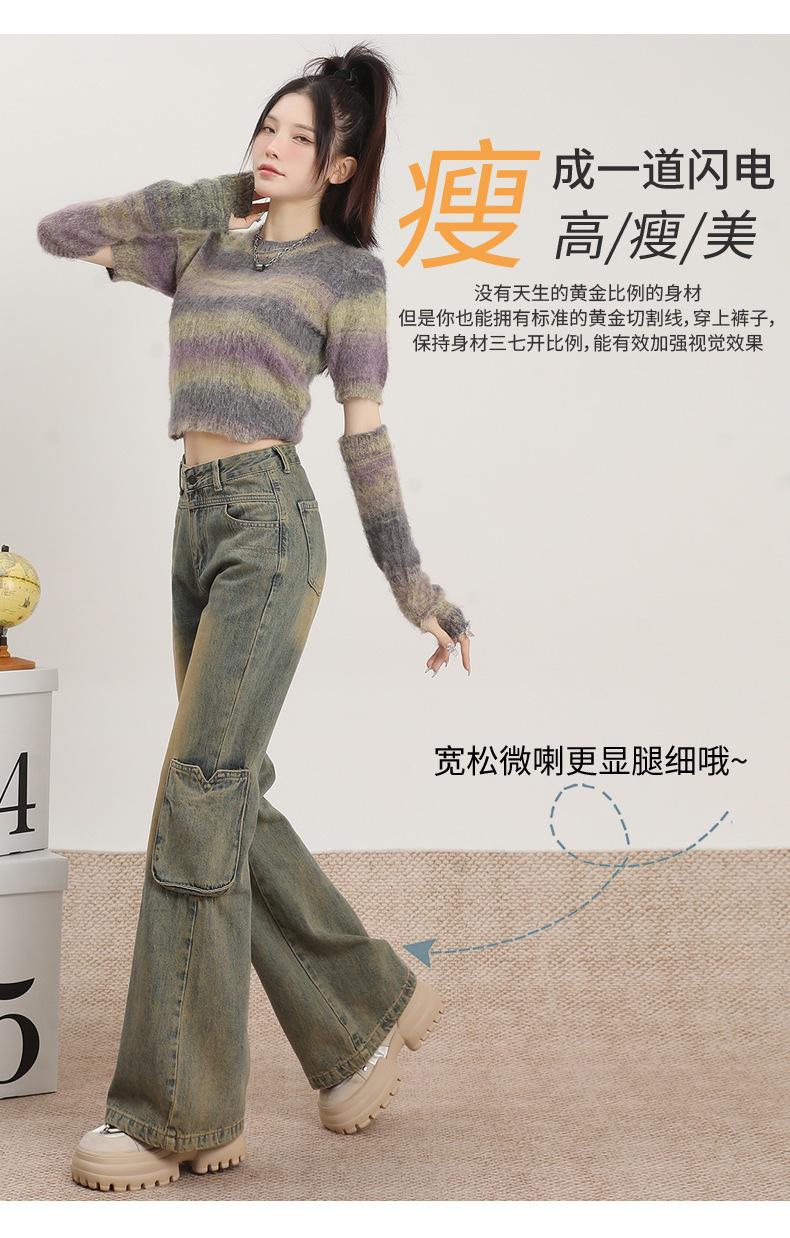 Jeans Acampanados Vintage de Ropa de Trabajo para Mujer Primavera 2025 Nuevo Diseño Bolsillo Cintura Alta Holgados Micro-Acampanados Pantalones Largos hasta el Piso
