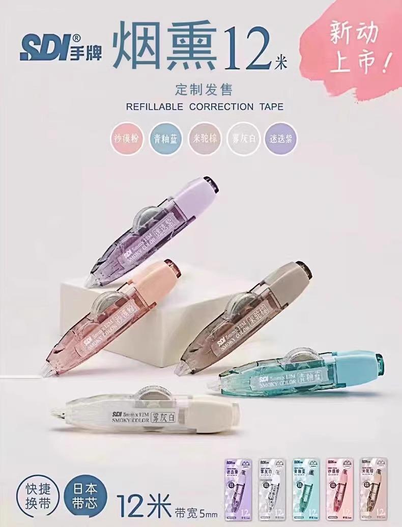 Set de Cinta Correctora Sdi Marca Taiwan Cinta Correctora Color Ahumado Limitado Núcleo Importado 120m Metros 325 Cinta Correctora