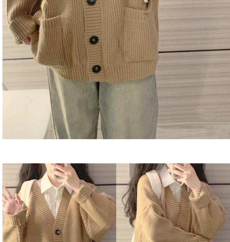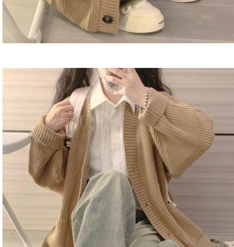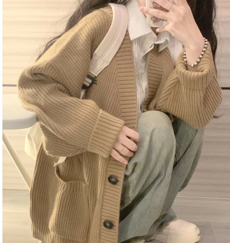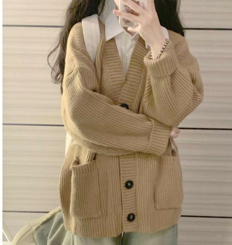 2024 Nuevo Otoño Temprano Estilo Perezoso Suéter Tops Cárdigan de Punto de Color Sólido Suelto para Mujer Estilo Japonés Top Retro