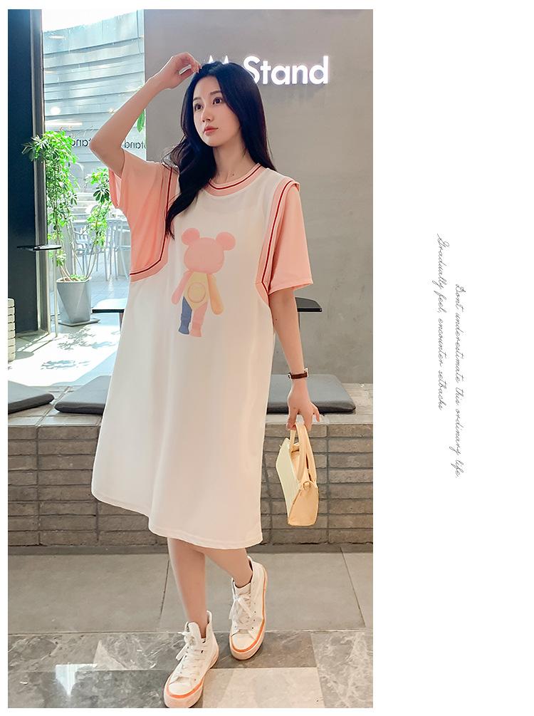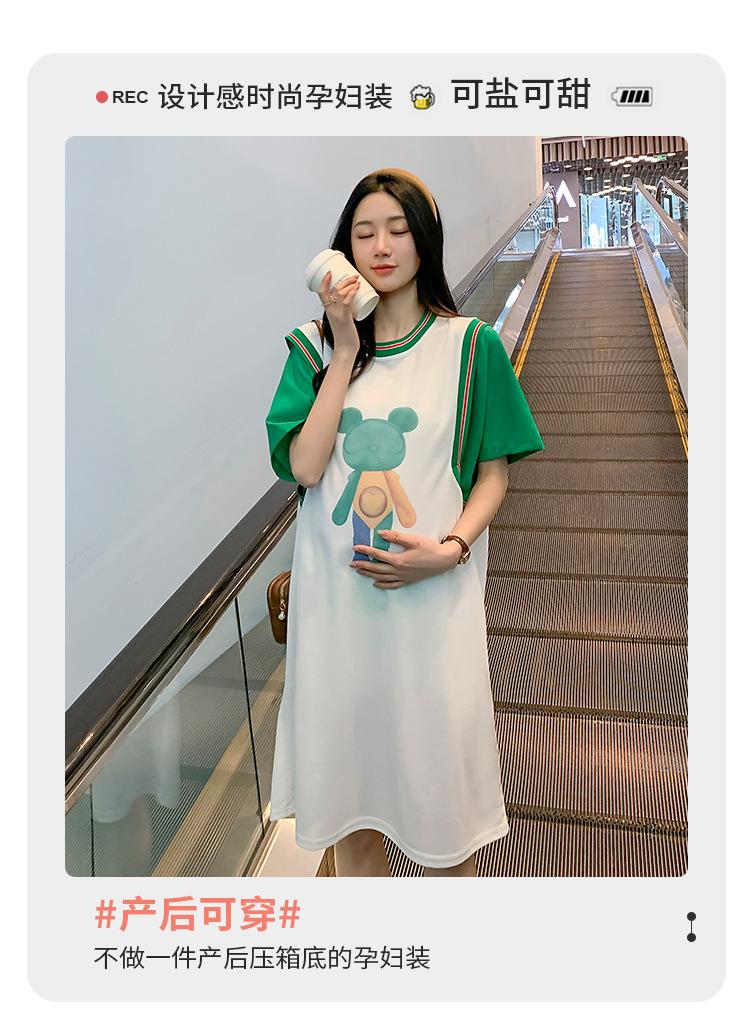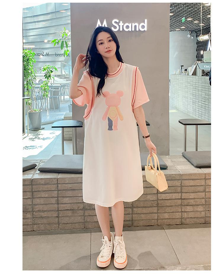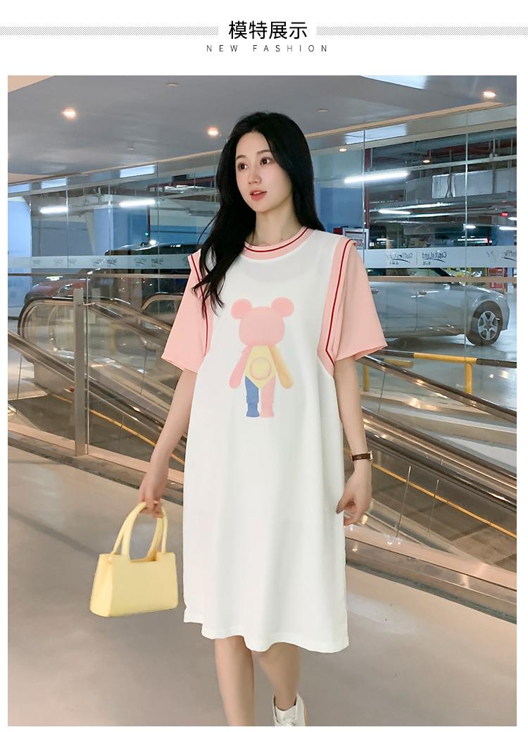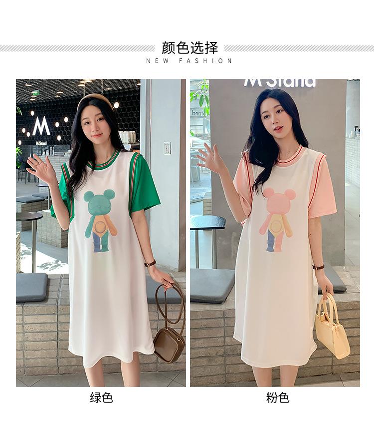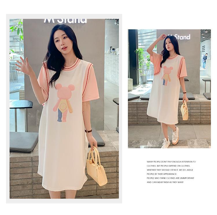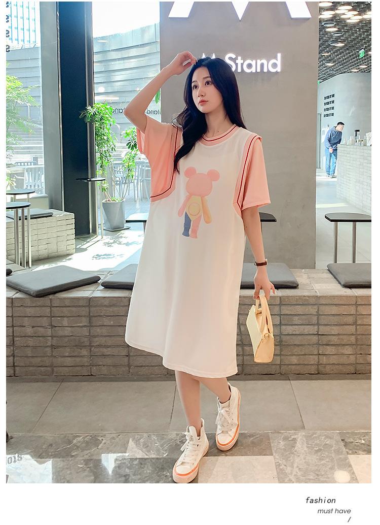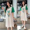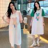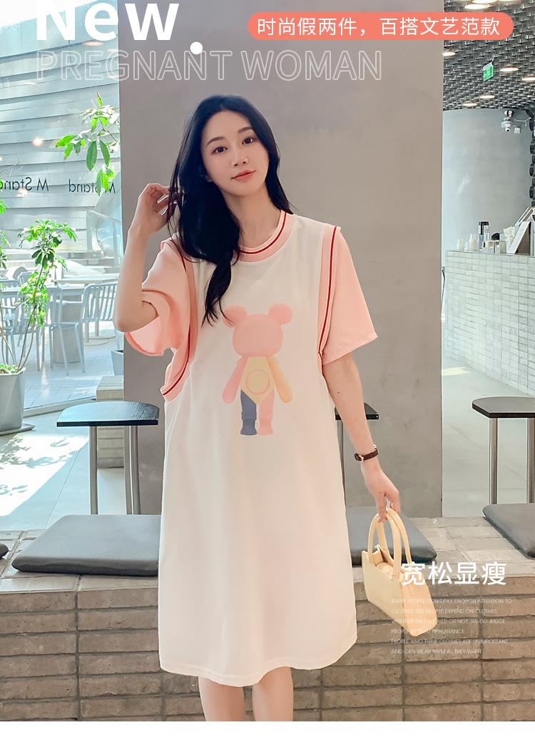 Maternidad 2024 Primavera y Verano Nuevo Vestido Coreano de Moda Falso de Dos Piezas Suelto Talla Grande para Mujeres Embarazadas