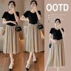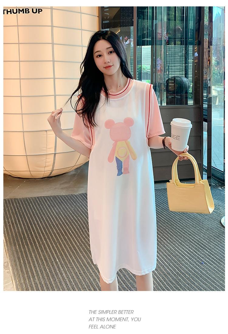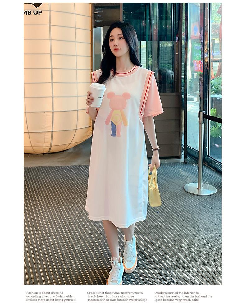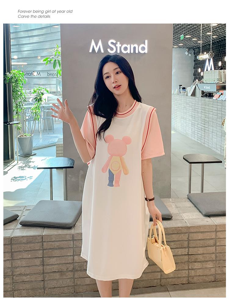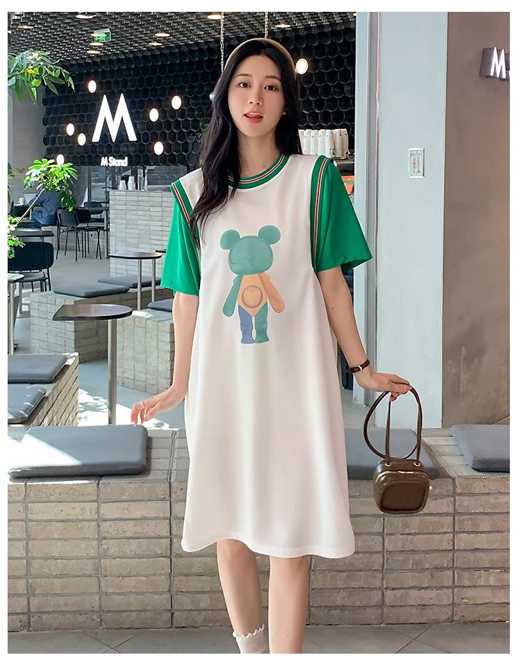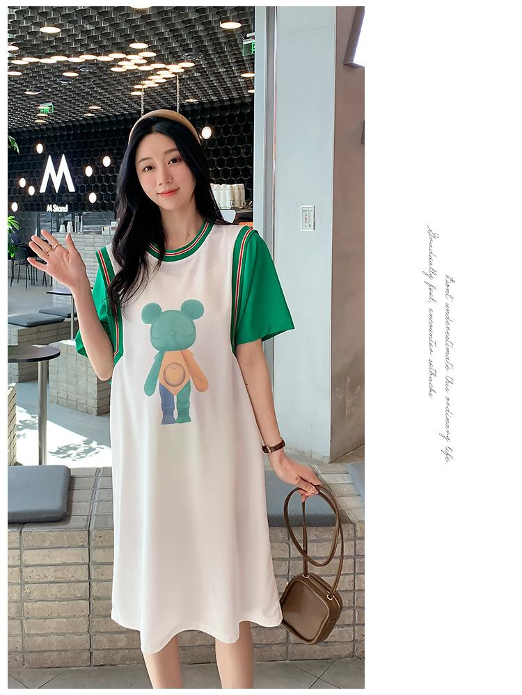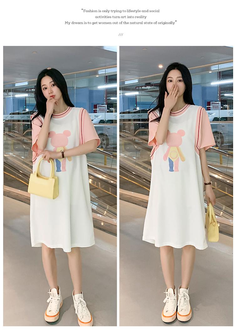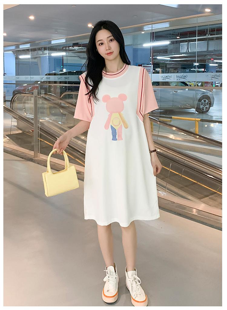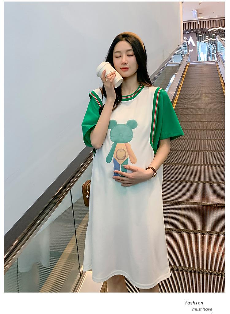 Maternidad 2024 Primavera y Verano Nuevo Vestido Coreano de Moda Falso de Dos Piezas Suelto Talla Grande para Mujeres Embarazadas