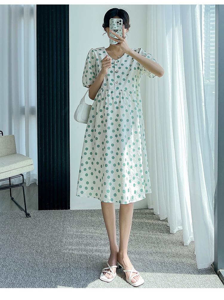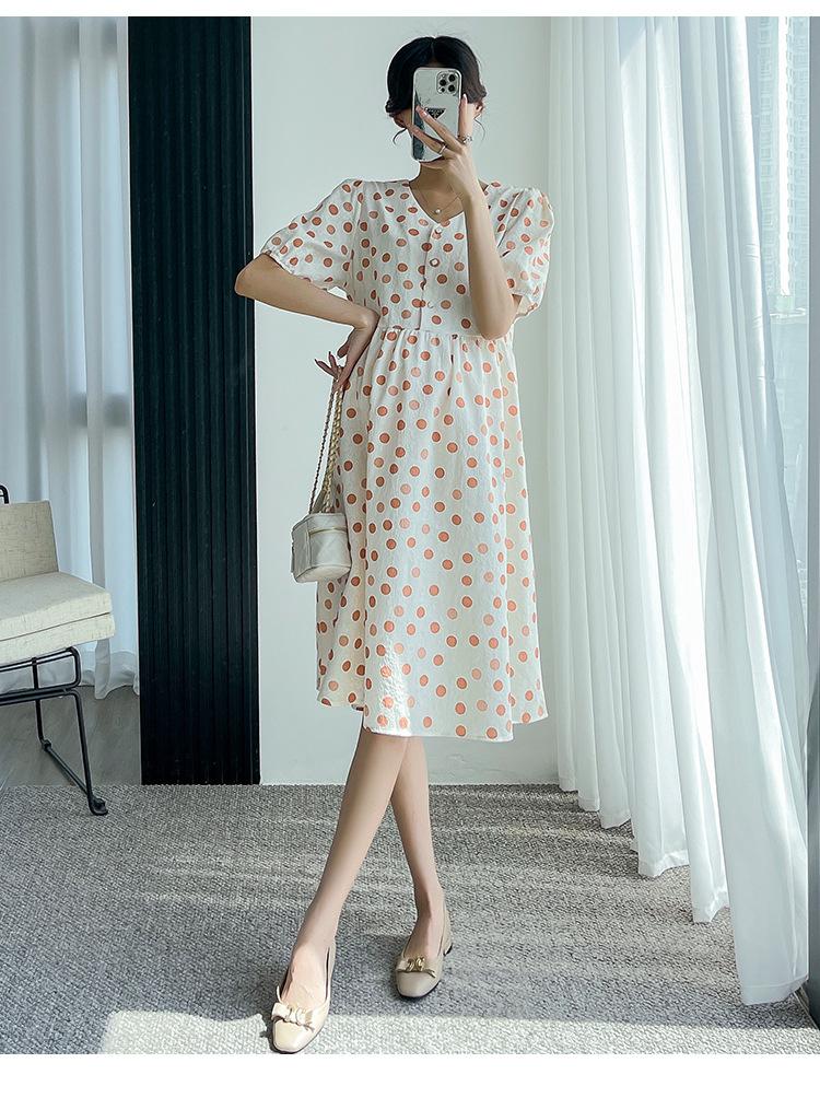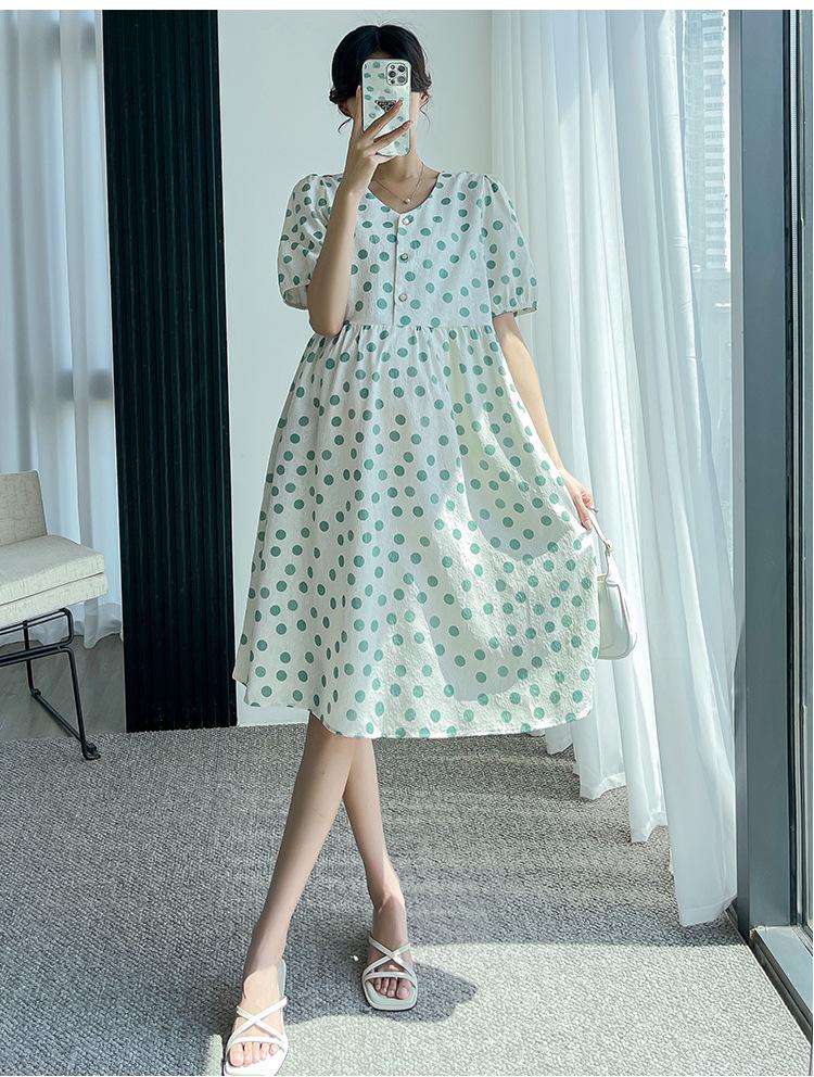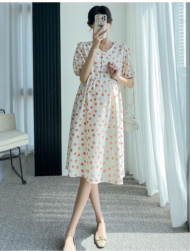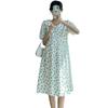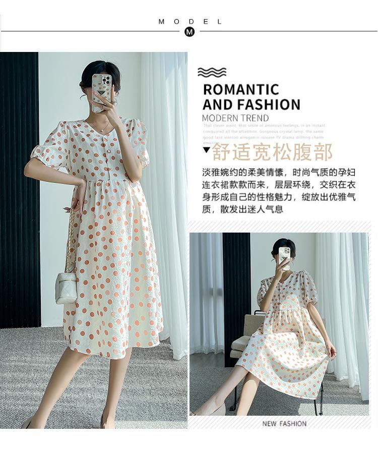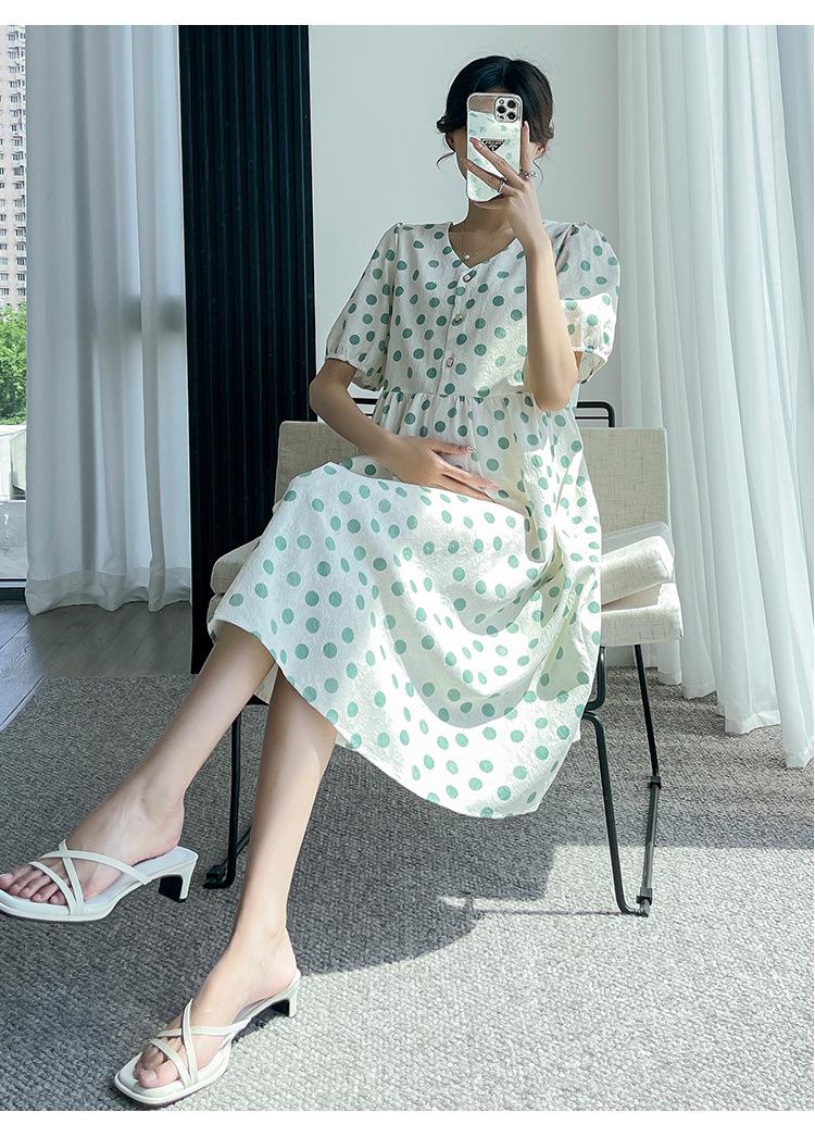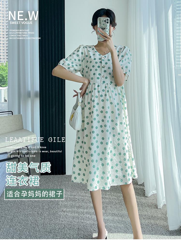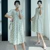Vestido de maternidad 2024 Verano nuevo dulce floral largo medio holgado talla grande vestido para mujeres embarazadas