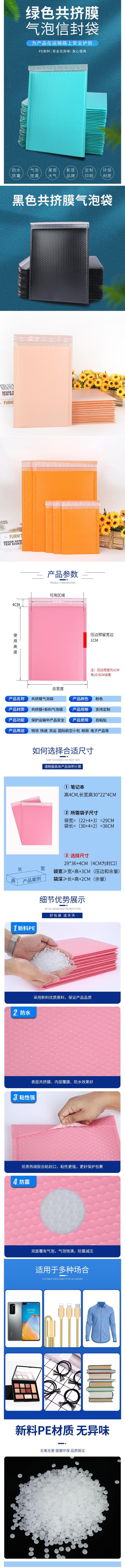 Bolsa de Mensajería Rosa Embalaje Autoadhesiva Bolsa de Espuma a Prueba de Golpes Bolsa de Sobre Negra Película Coextruida Verde Bolsa de Burbujas Venta al por Mayor