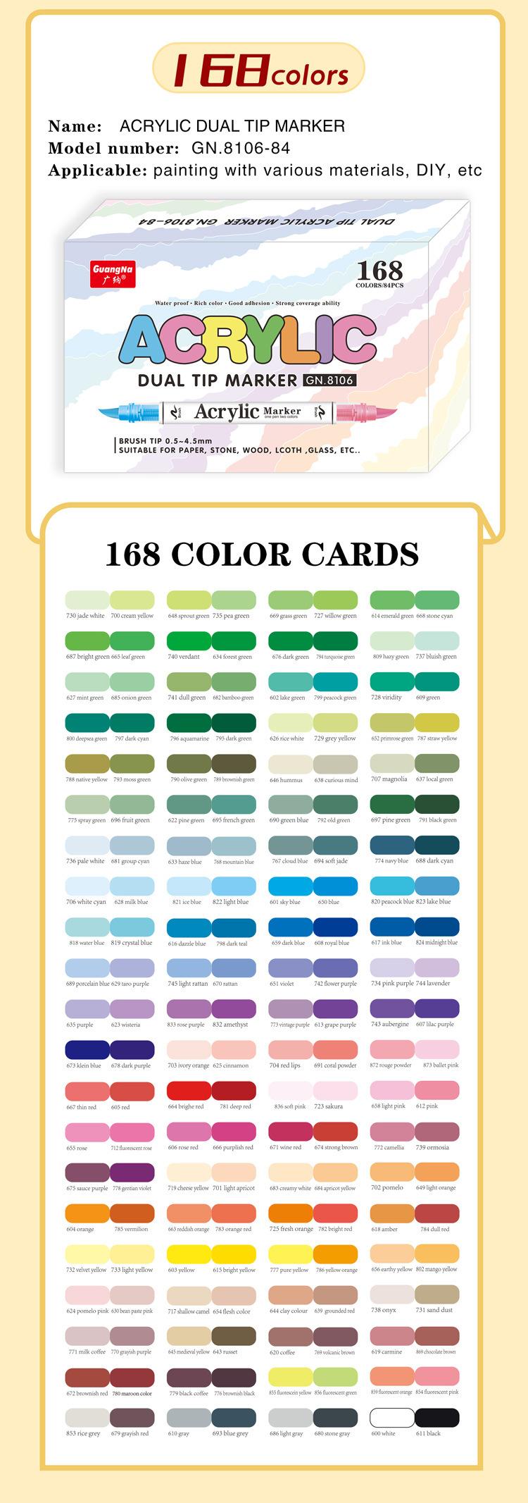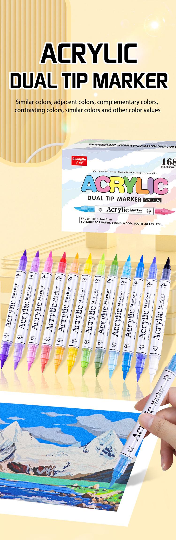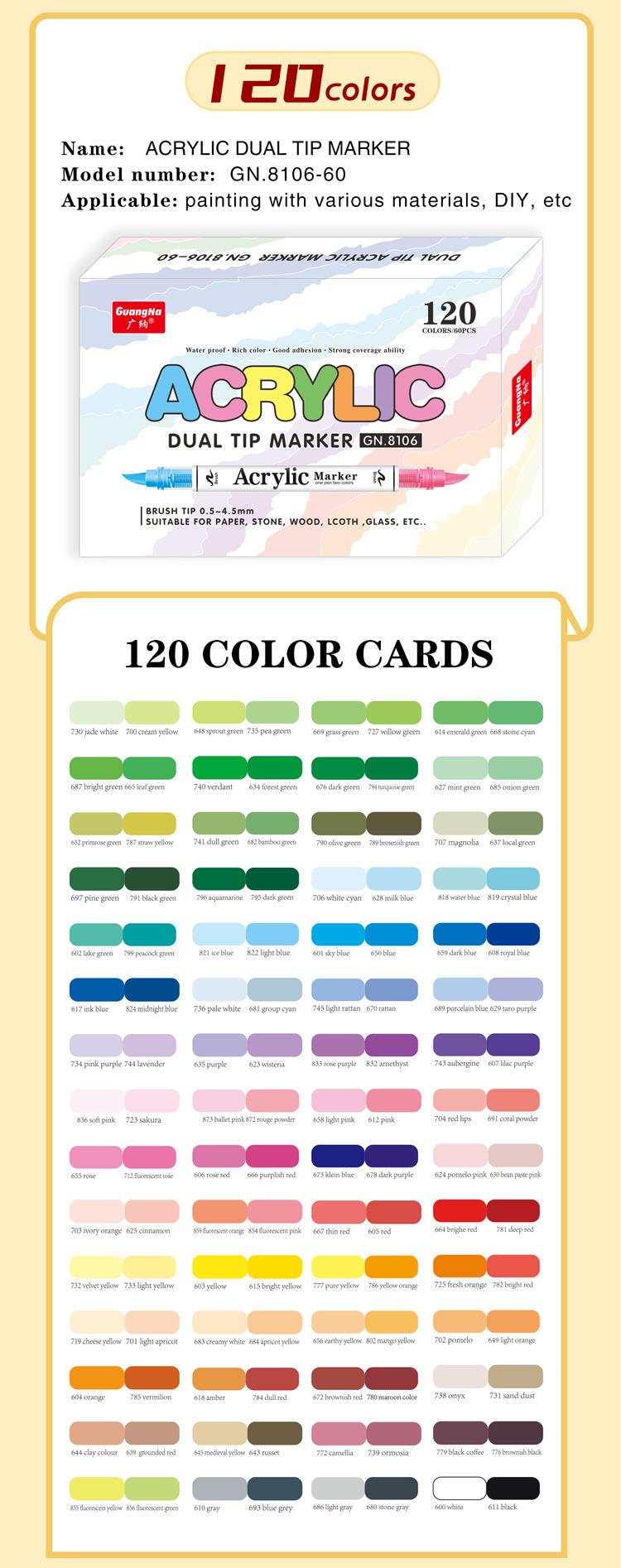 Marcador Acrílico de Doble Punta Suave y Doble Color Guangna 8106, Juego de 120 Colores, Color Apilable, Marcador para Estudiantes