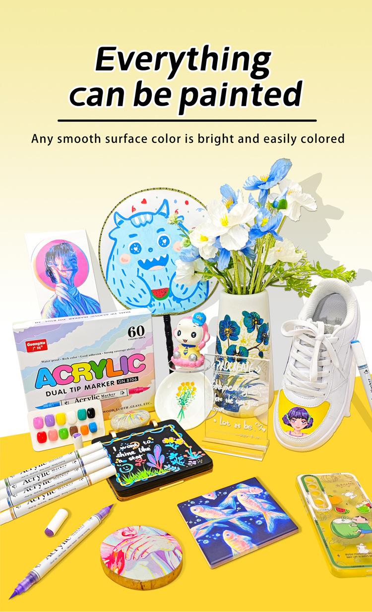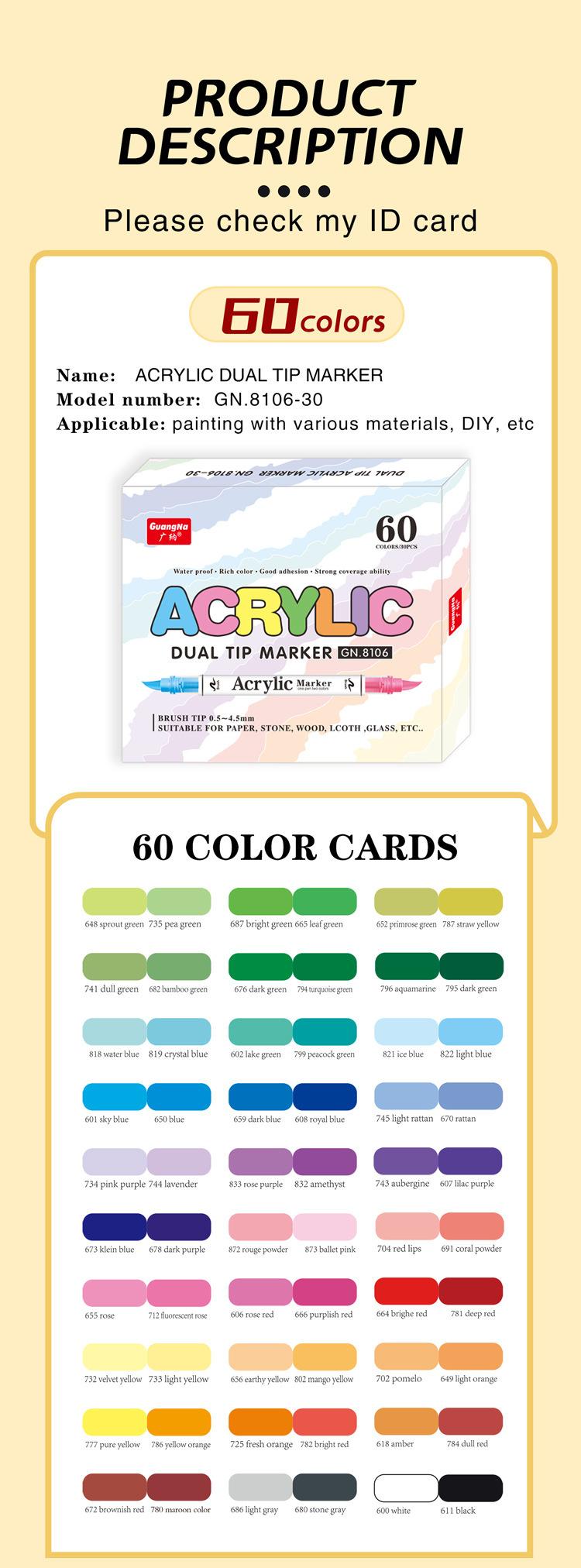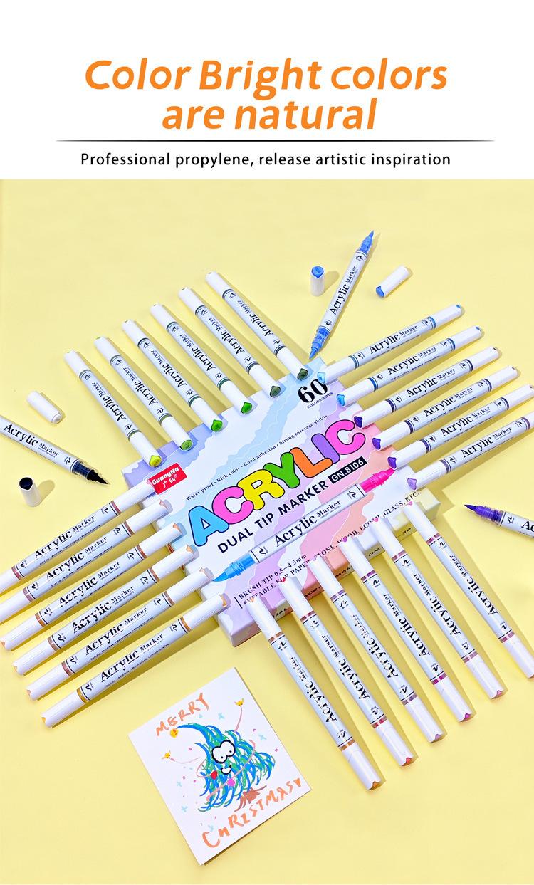Marcador Acrílico de Doble Punta Suave y Doble Color Guangna 8106, Juego de 120 Colores, Color Apilable, Marcador para Estudiantes