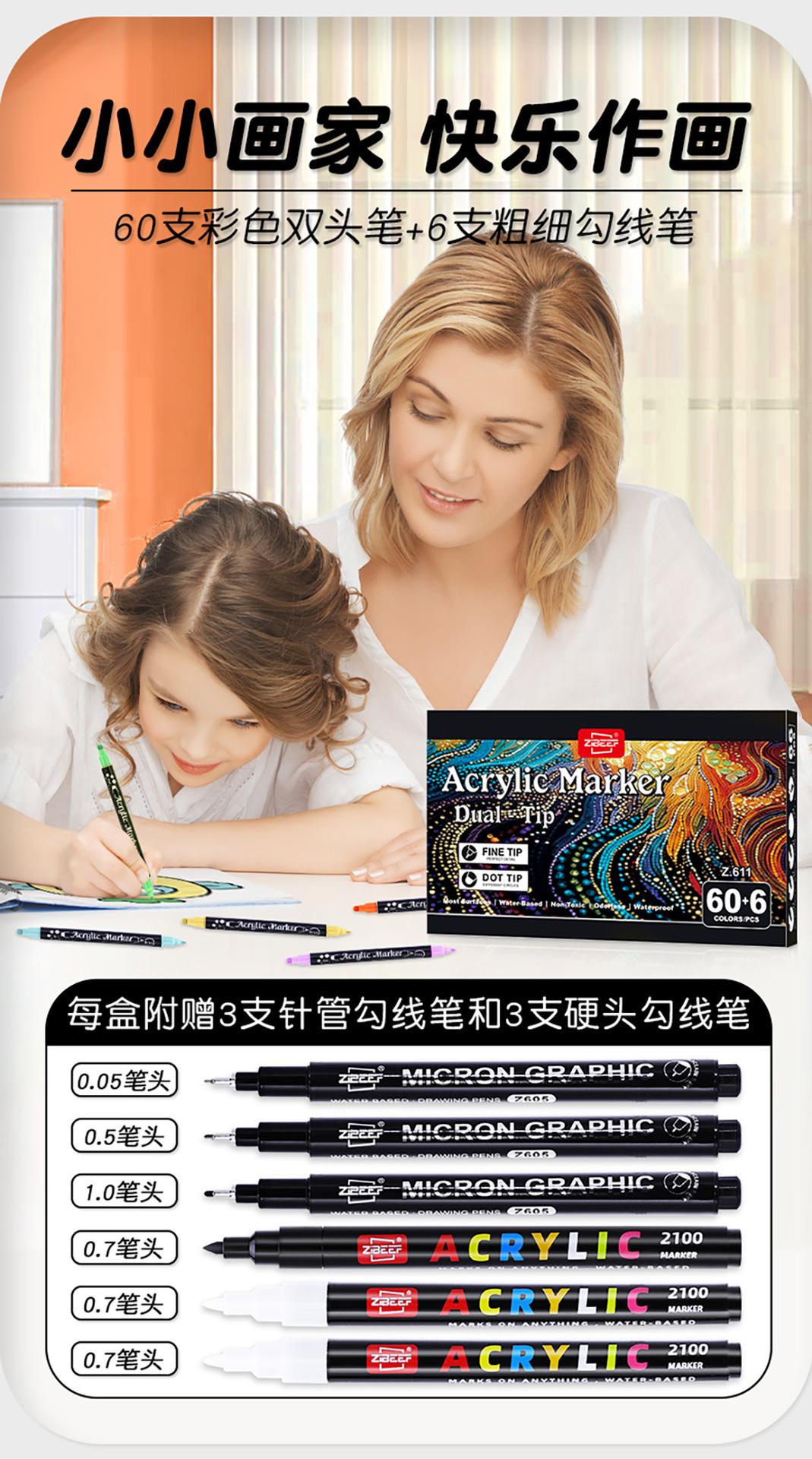 Guangna 611 traje de marcador acrílico pintado a mano para estudiantes 60 colores opaco diy arte graffiti estudiante pincel