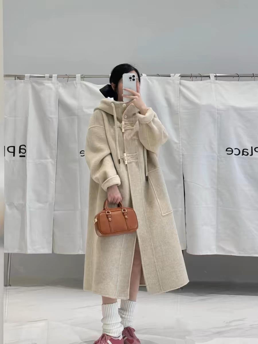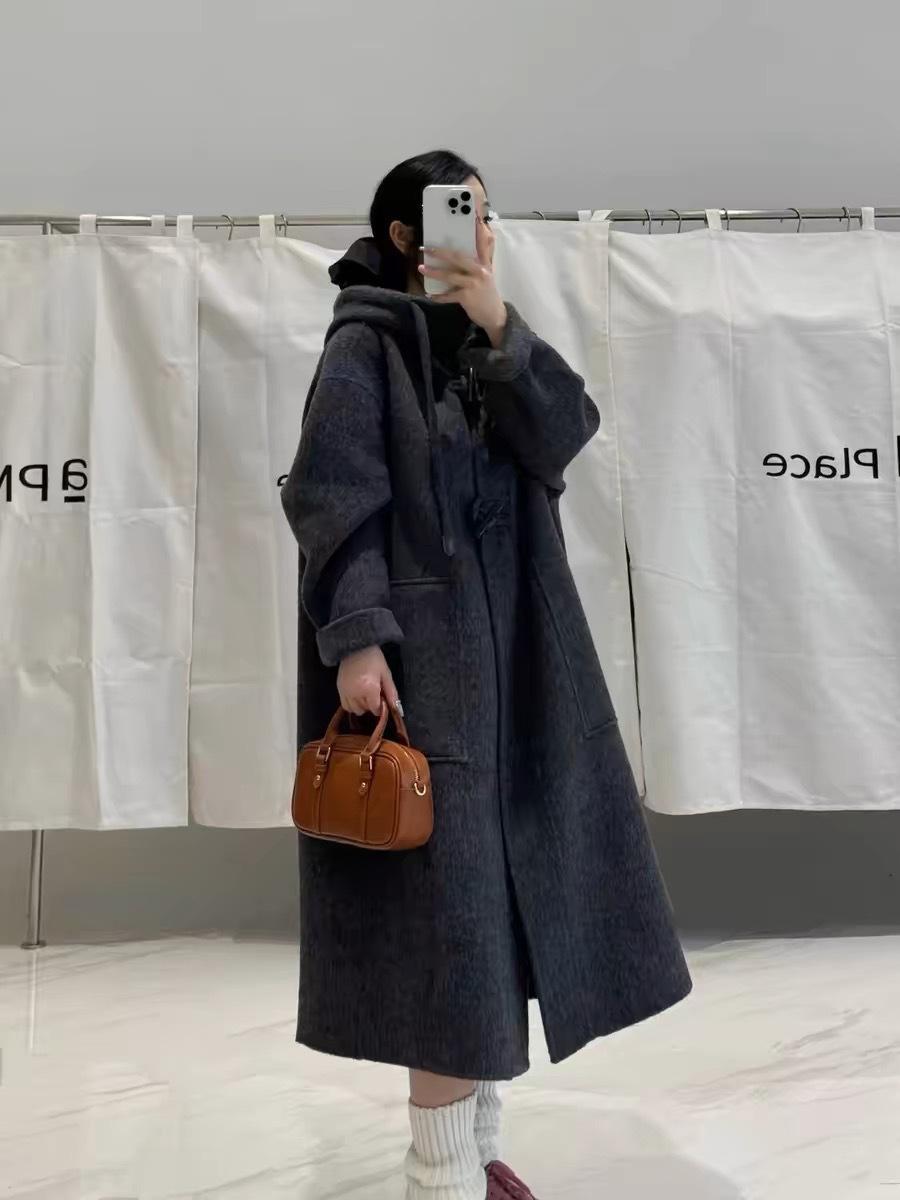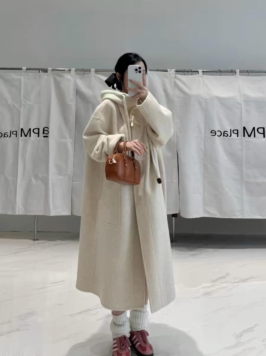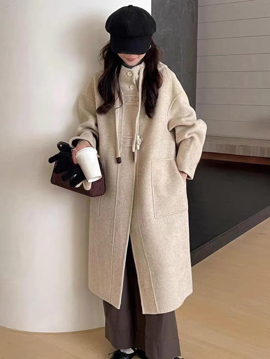 Otoño e Invierno Nuevo Abrigo de Felpa de Lana de Doble Cara de Alta Gama para Mujer Suelto Delgado Largo de Alta Calidad con Capucha Abrigo de Lana con Capucha