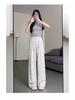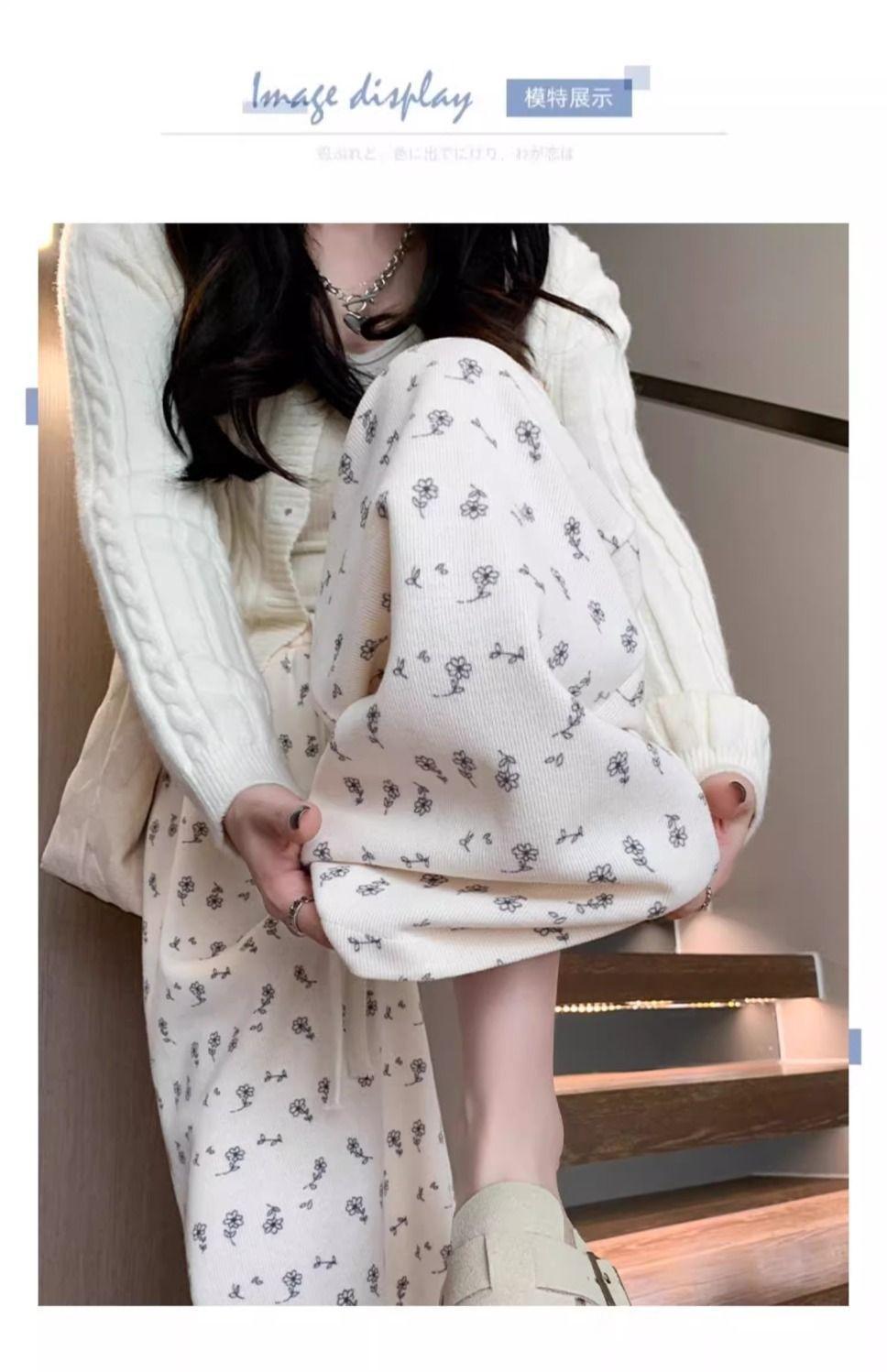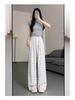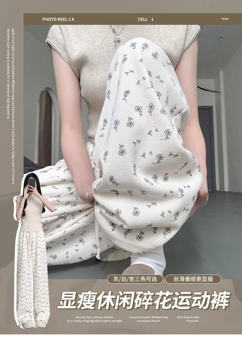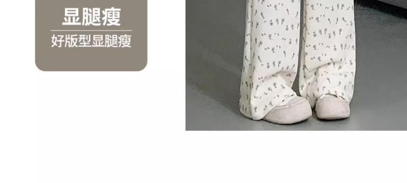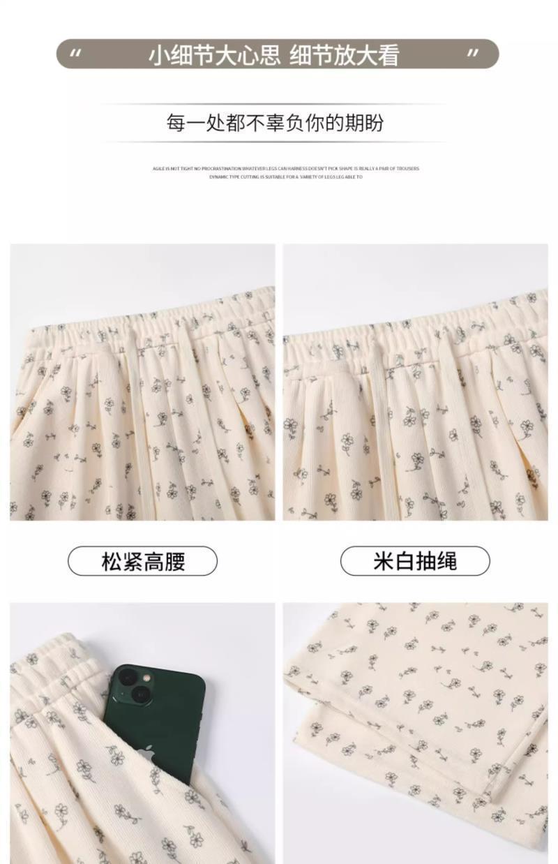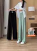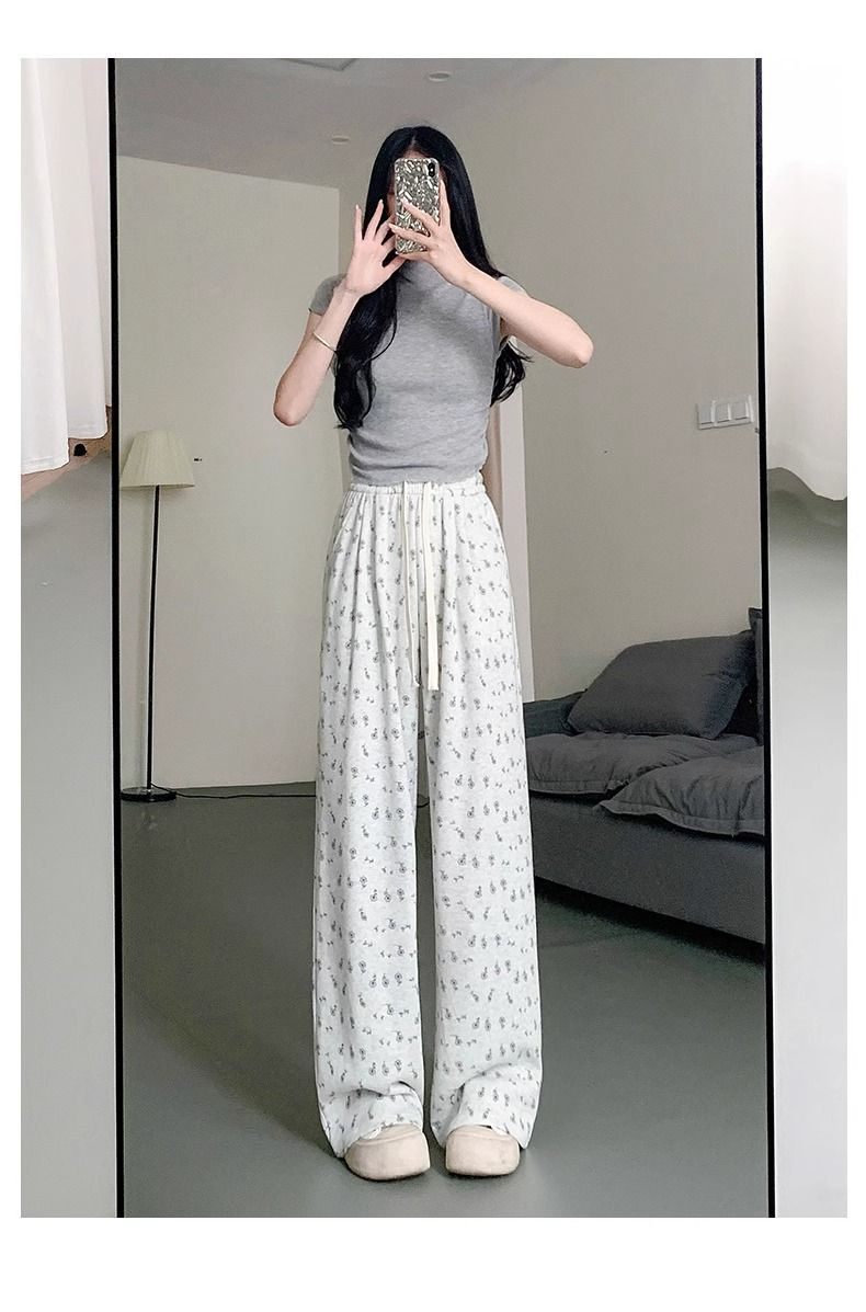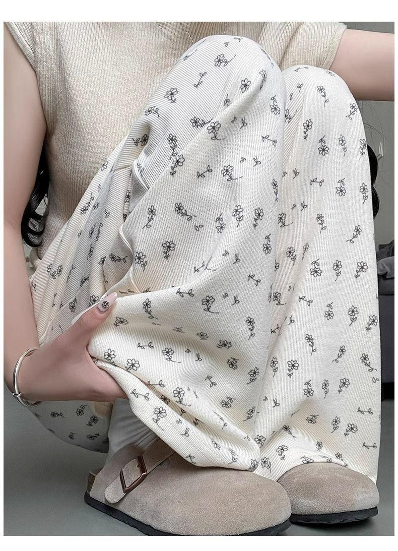Pantalones anchos de seda de hielo con estampado floral para mujer, novedad de verano 2024, cintura alta, adelgazantes, sueltos, pequeños, delgados, casuales, rectos.