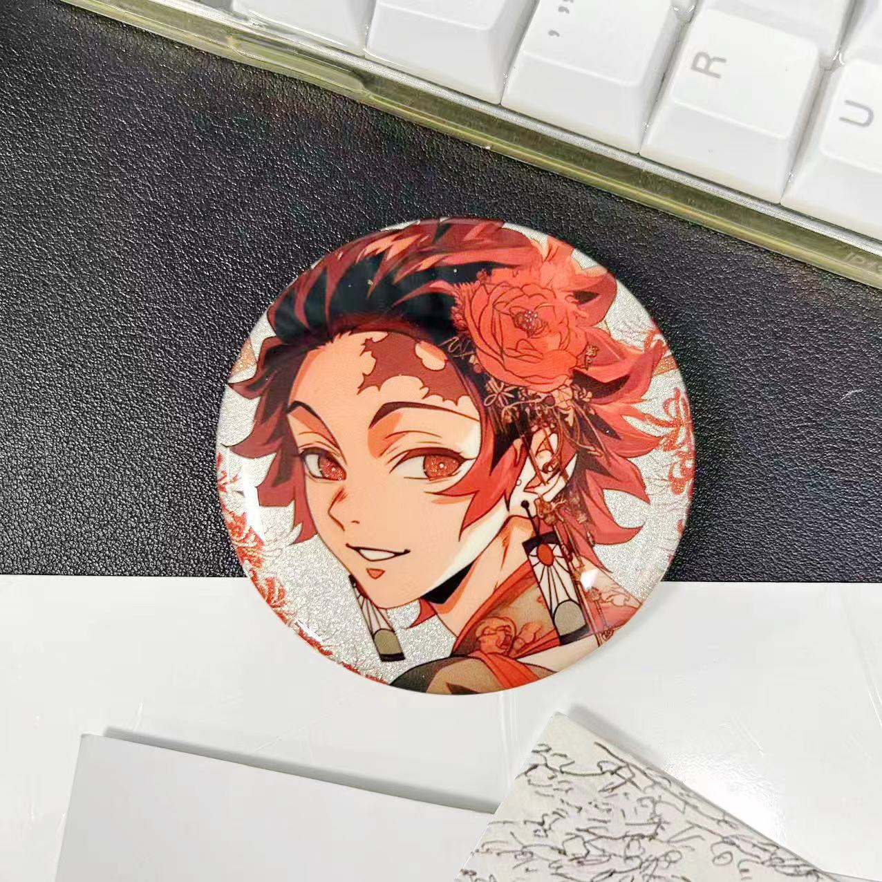 Demon Slayer Insignia de Doble Flash Botón Periféricos de Anime Segunda Dimensión Anime Hojalata Colgante para Mochila Tanjiro Sol