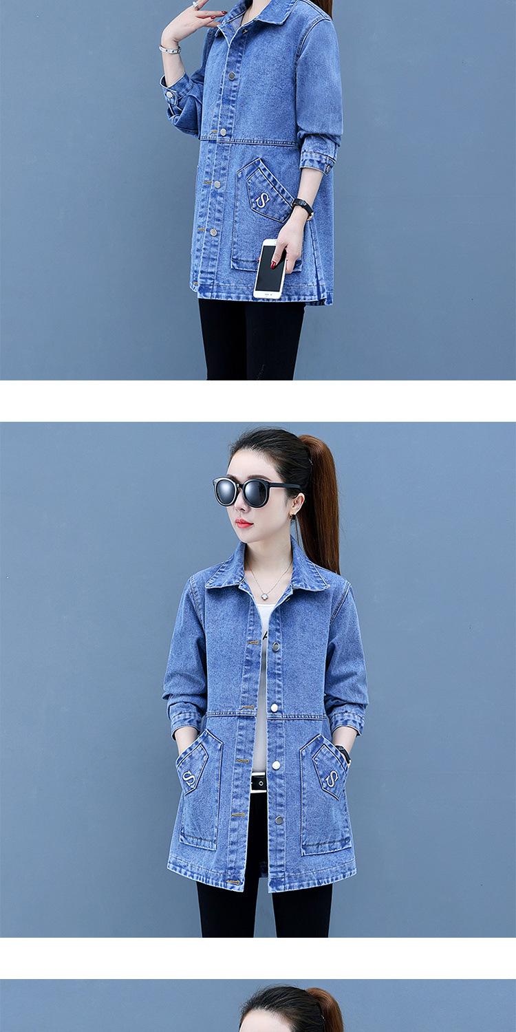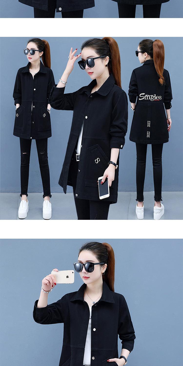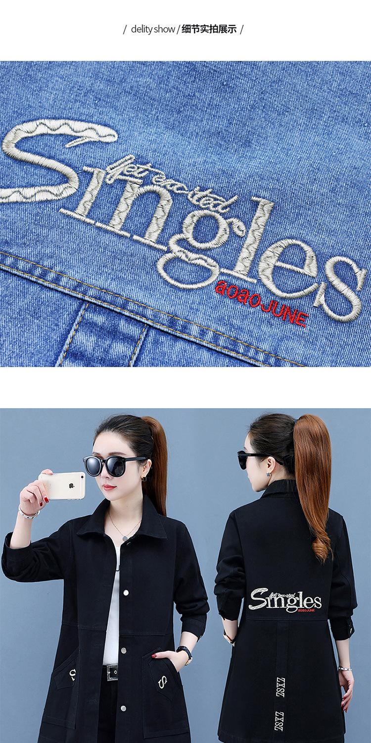 Abrigo de mezclilla de primavera y otoño para mujer 2024 Nueva moda Abrigo de mezclilla simple para mujer Chaqueta de cuello de vestir de longitud media