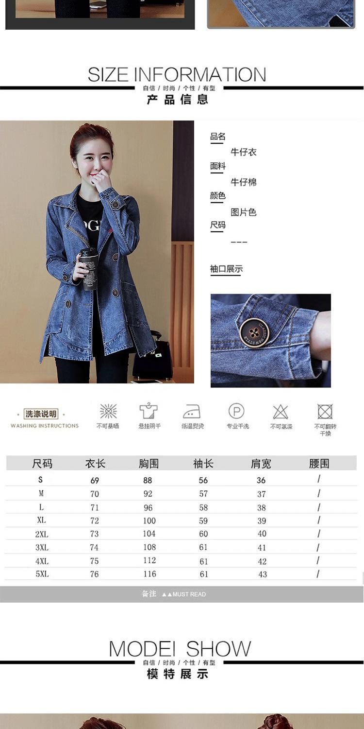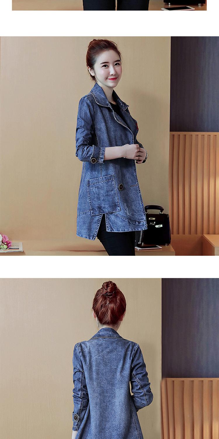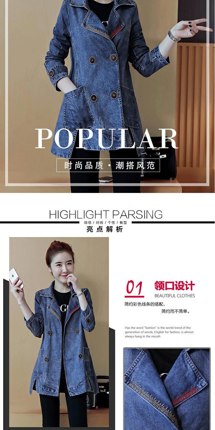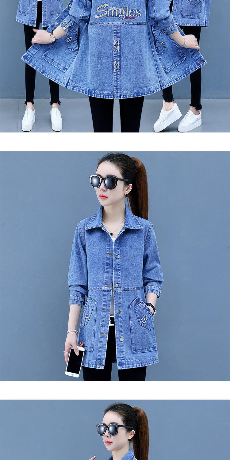 Abrigo de mezclilla de primavera y otoño para mujer 2024 Nueva moda Abrigo de mezclilla simple para mujer Chaqueta de cuello de vestir de longitud media