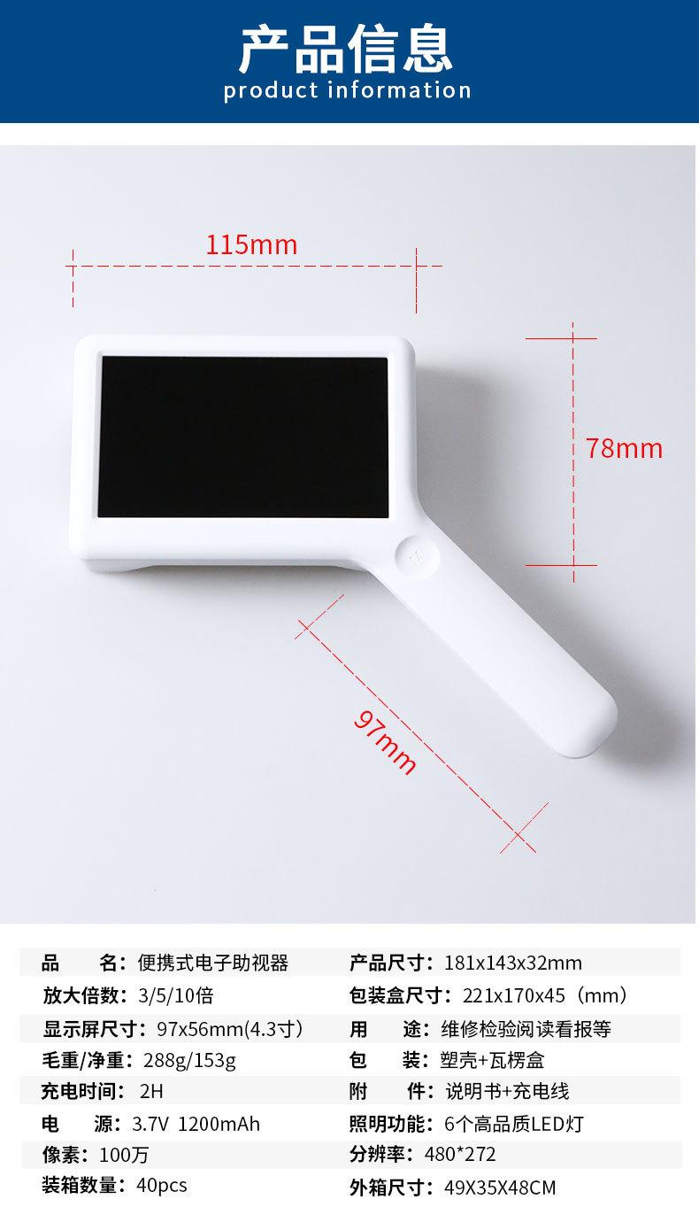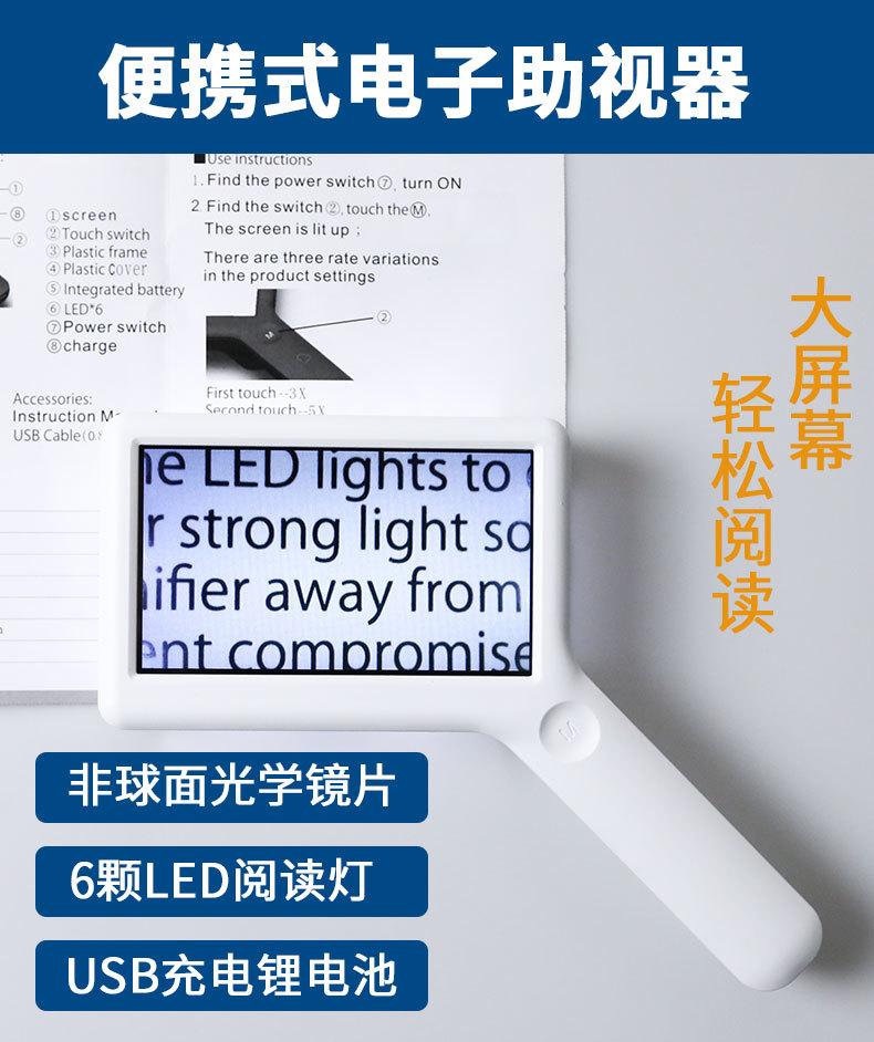 Lupa electrónica de mano de 4.3 pulgadas para ayuda visual, lupa digital, baja visión, ancianos, estudiantes, lectura de periódico