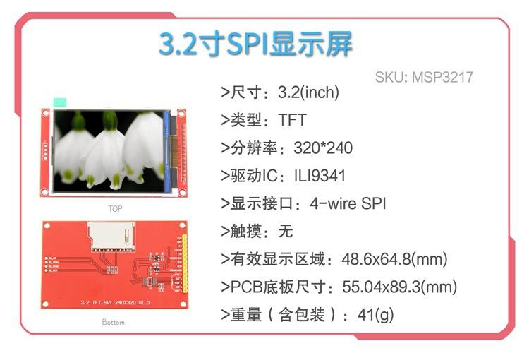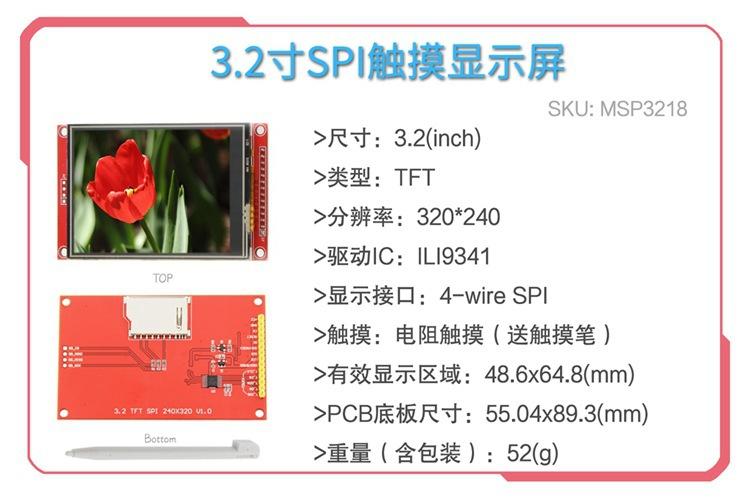 http://www.lcdwiki.com/zh/3.2inch_SPI_Module_ILI9341_SKU:MSP3218