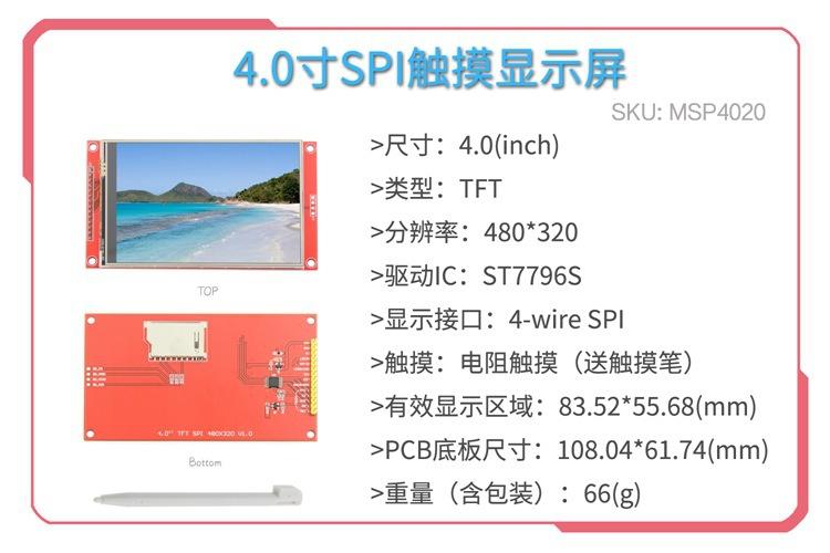 http://www.lcdwiki.com/zh/4.0inch_SPI_Module_ST7796