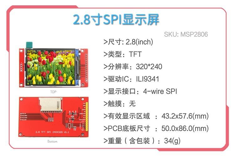 http://www.lcdwiki.com/zh/2.8inch_SPI_Module_ILI9341_SKU:MSP2807