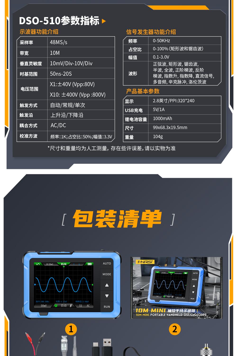 Osciloscopio de Mano Pequeño Digital Portátil Osciloscopio DSO-510 Generador de Señales Multifuncional