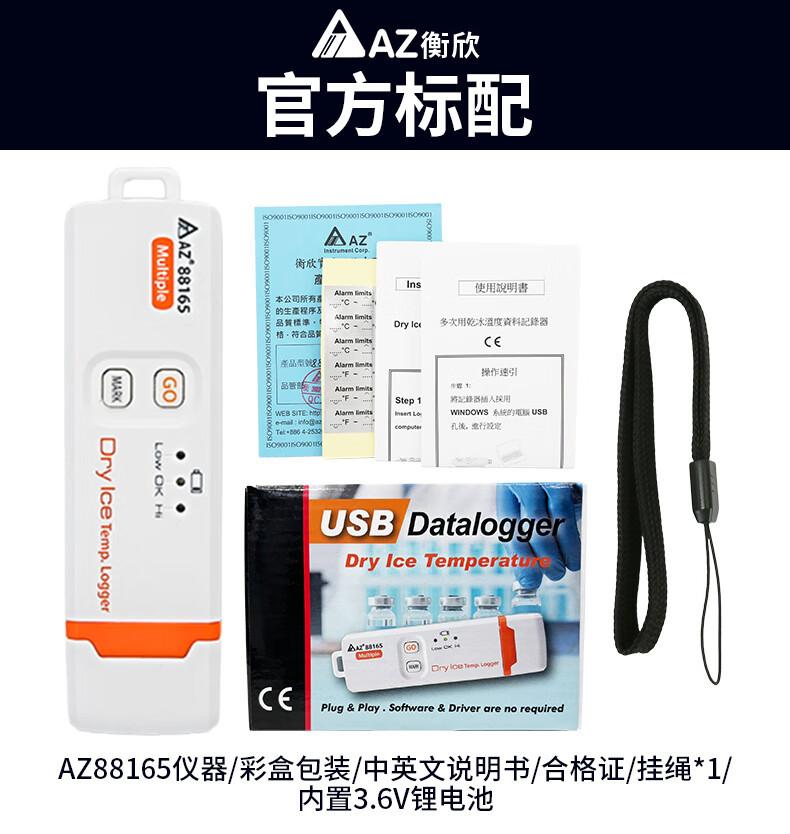 Hengxin AZ88165 Termómetro de Hielo Seco Registrador de Temperatura USB para Transporte de Cadena de Frío