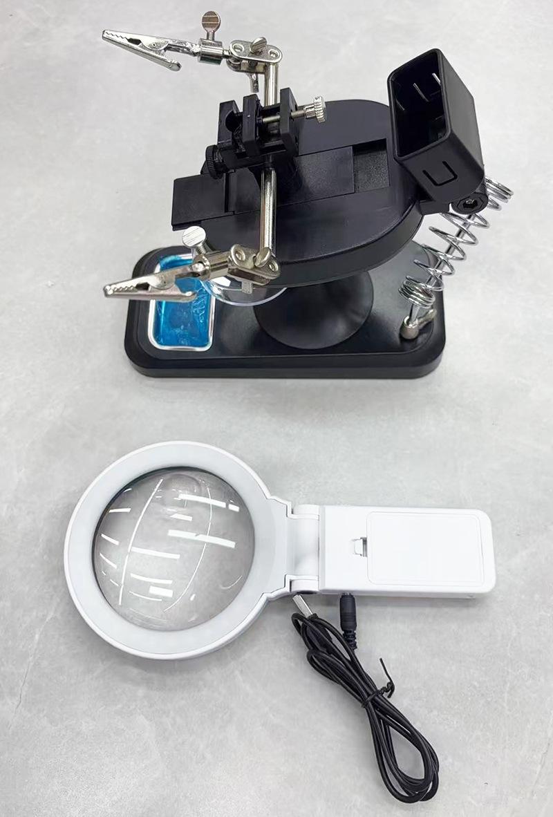 Nueva lupa auxiliar de escritorio portátil de doble uso con luz LED se puede enchufar para reparación lectura multiusos de alta definición
