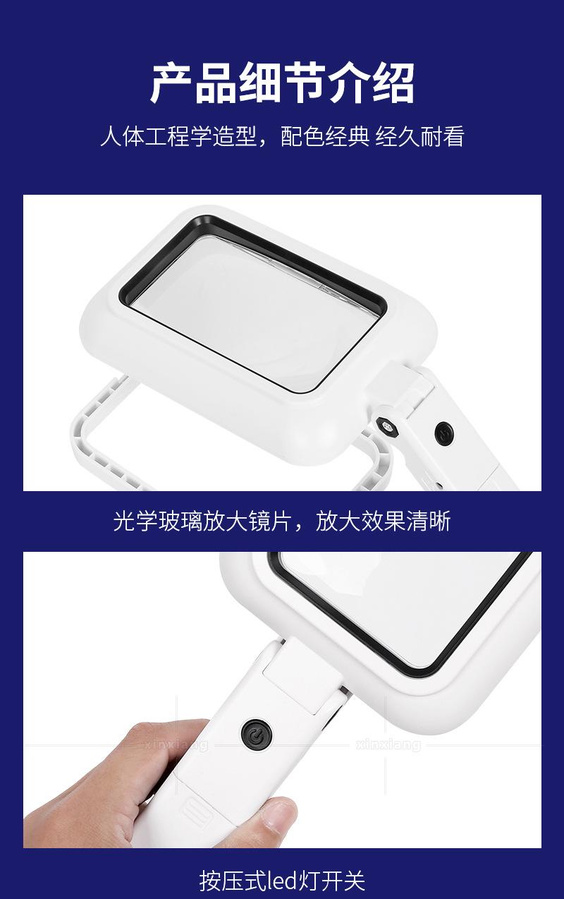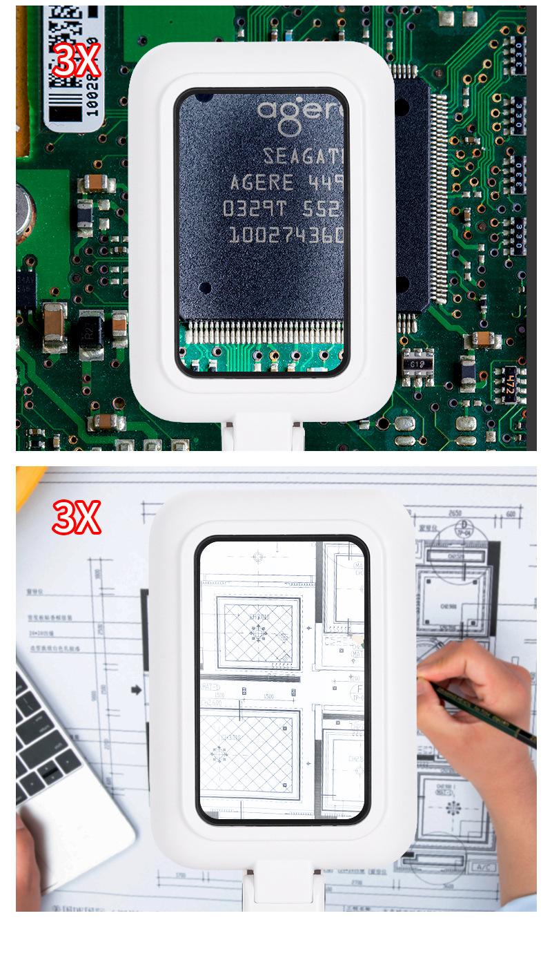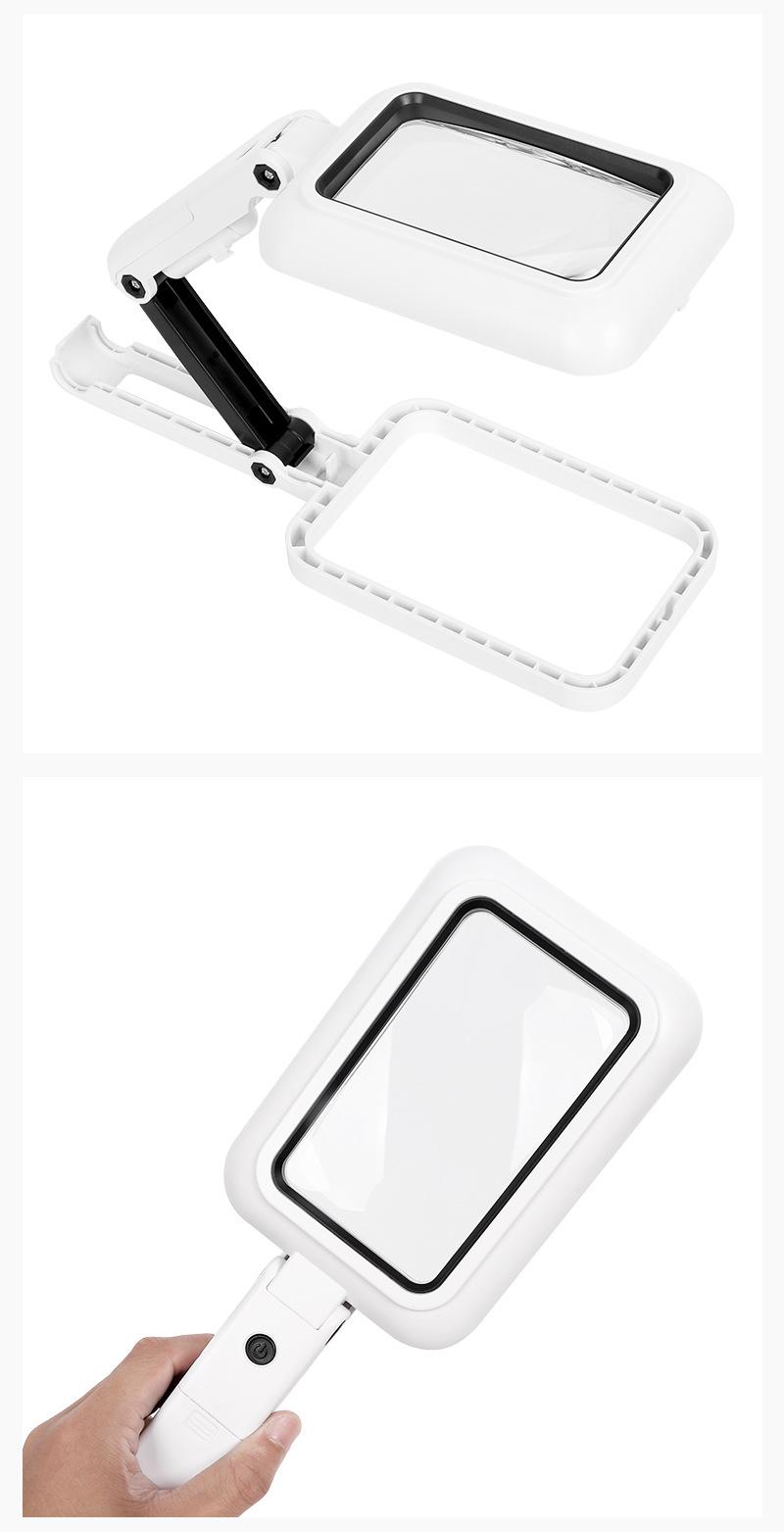Espejo óptico cuadrado de mano 18 luces LED 3 tipos de fuente de luz soporte ajustable lectura de escritorio reparación lupa