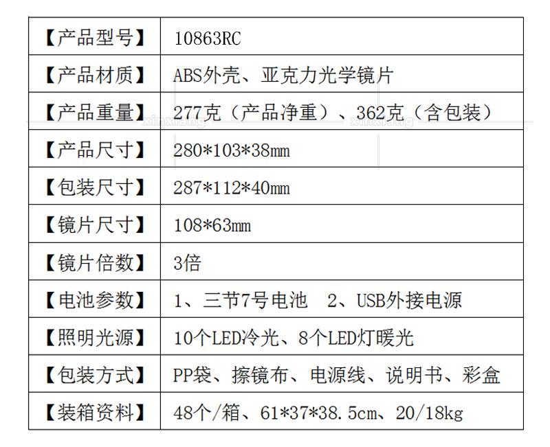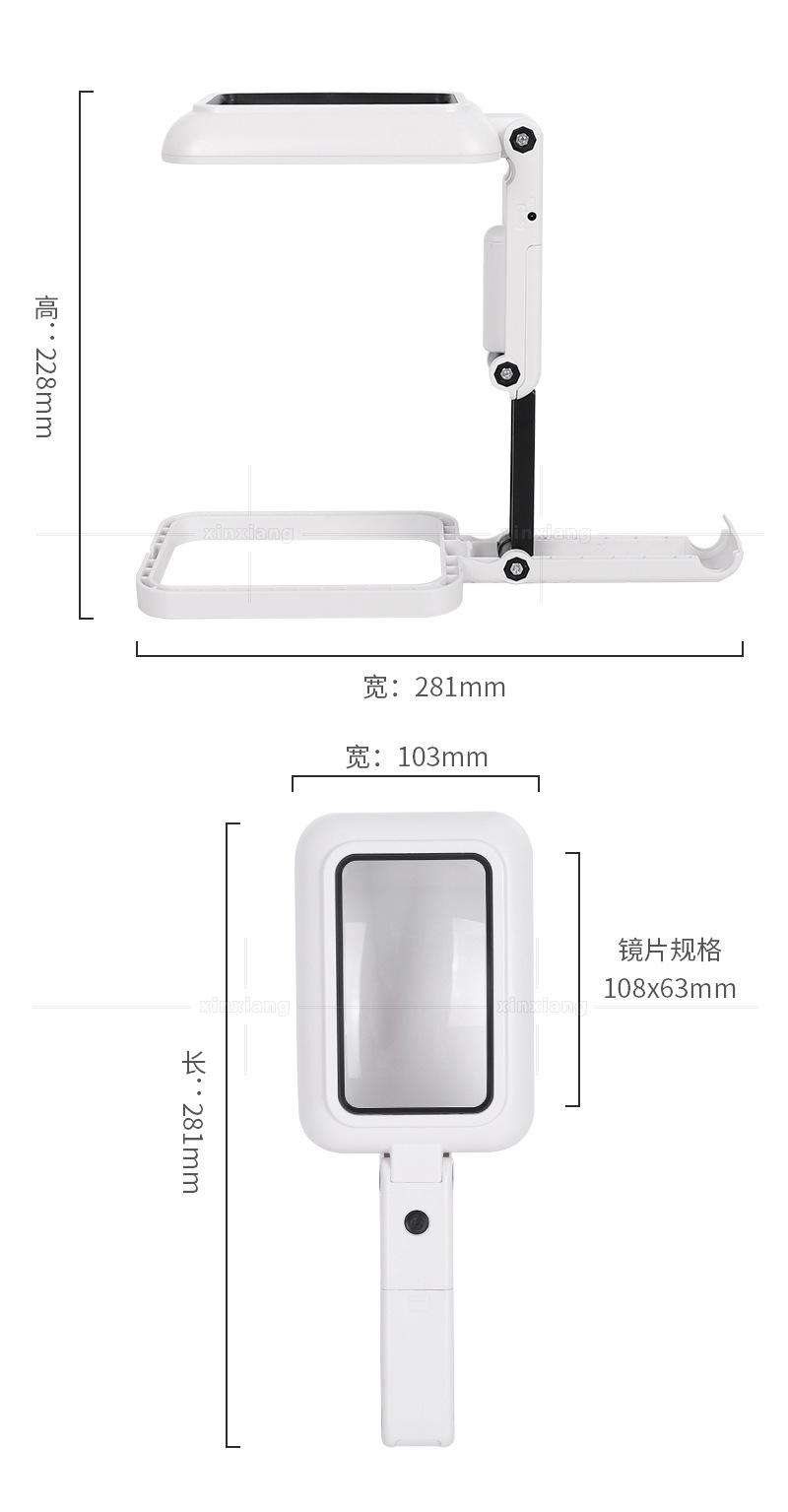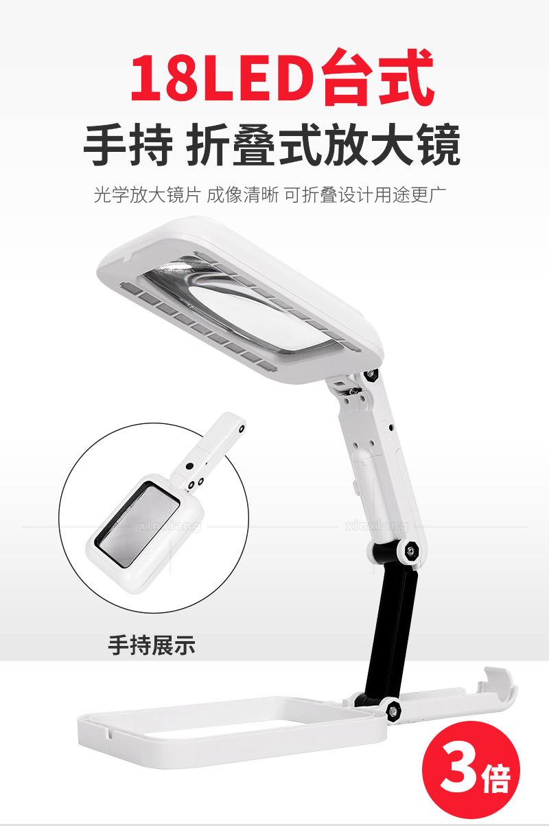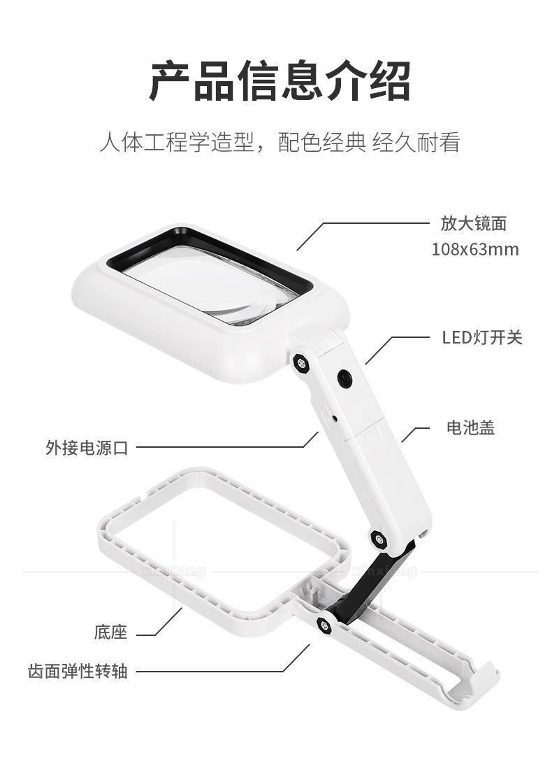 Espejo óptico cuadrado de mano 18 luces LED 3 tipos de fuente de luz soporte ajustable lectura de escritorio reparación lupa