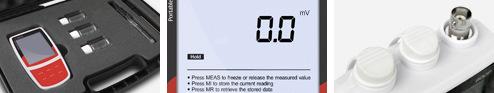 • Estándares de tampón de pH seleccionables (USA/NIST/DIN) o calibración personalizada de 2 puntos.