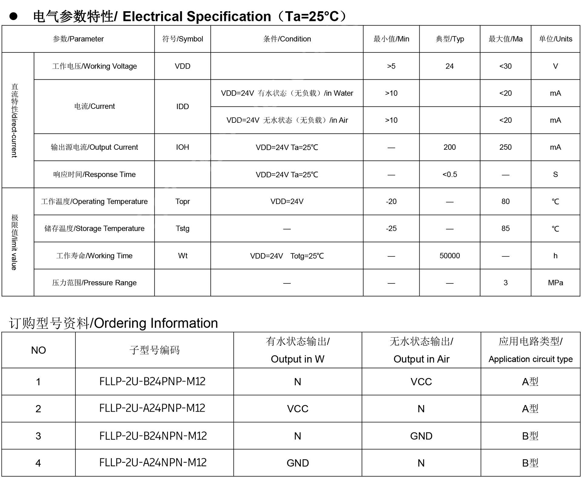 FLLP-2U-A24NPN-M12, FLLP-2U-A24PNP-M12, FLLP-2U-B24NPN-M12, FLLP-2U-B24PNP-M12