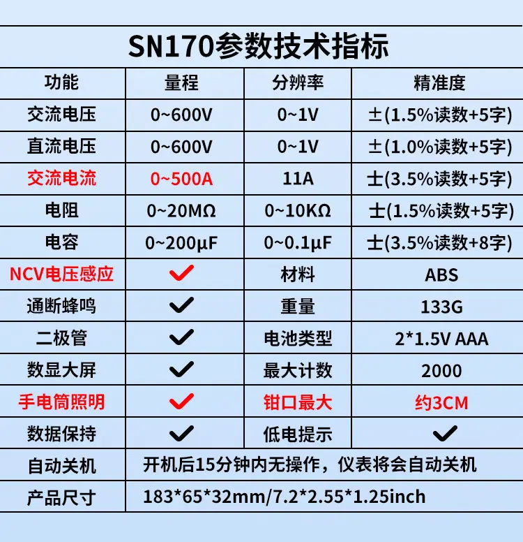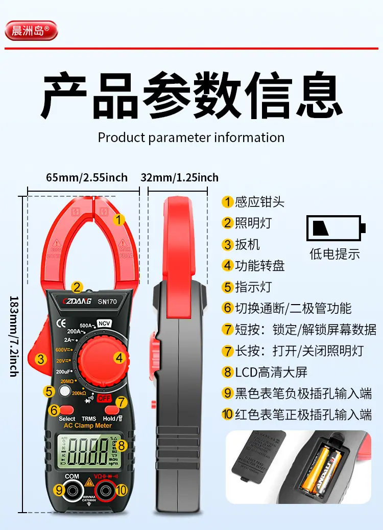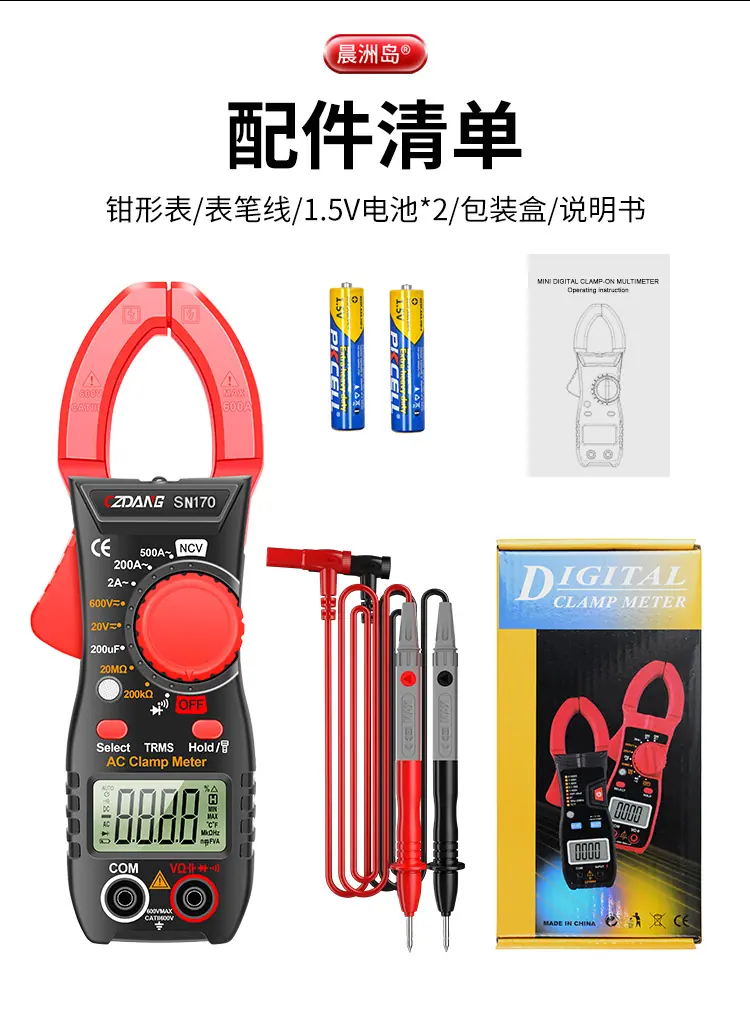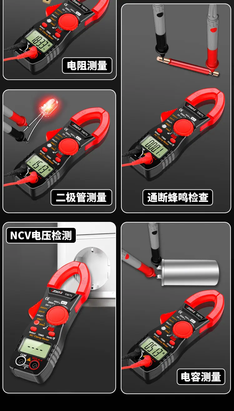 Amperímetro de pinza portátil de alta precisión exclusivo transfronterizo Multímetro de pinza con pantalla digital multifuncional