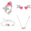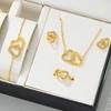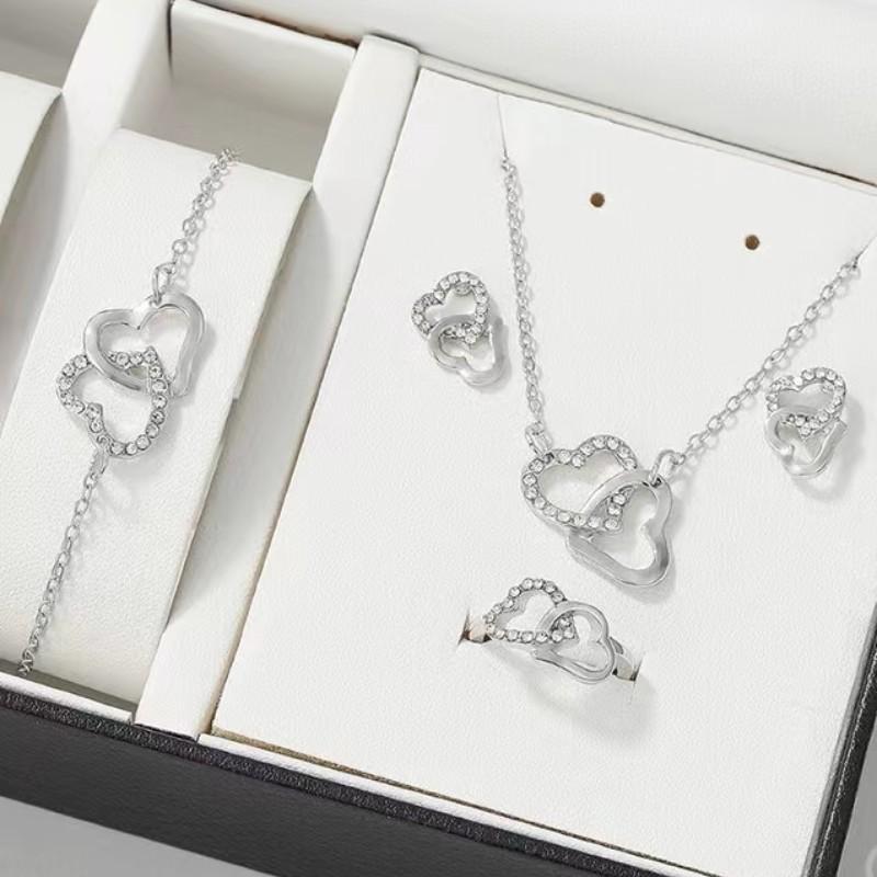 Europeo y Americano Simple para Mujer Versátil Doble Corazón Joyería Collar Pulsera Aretes Pulsera Colgante Set de Regalo Creativo