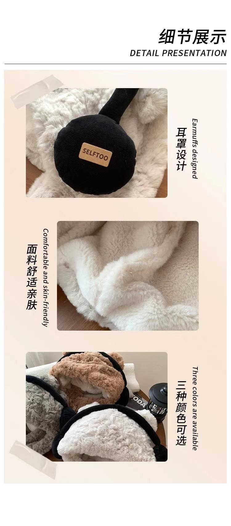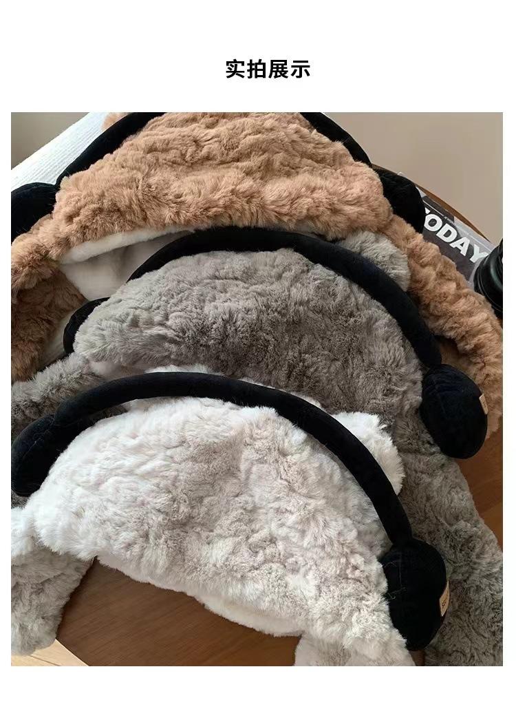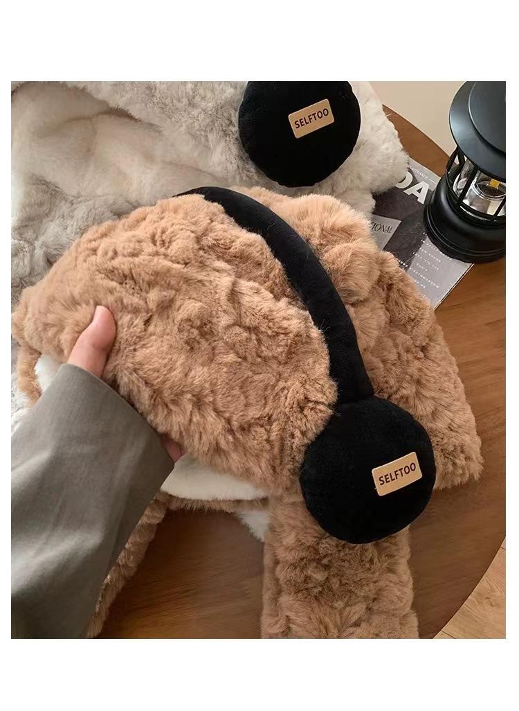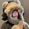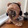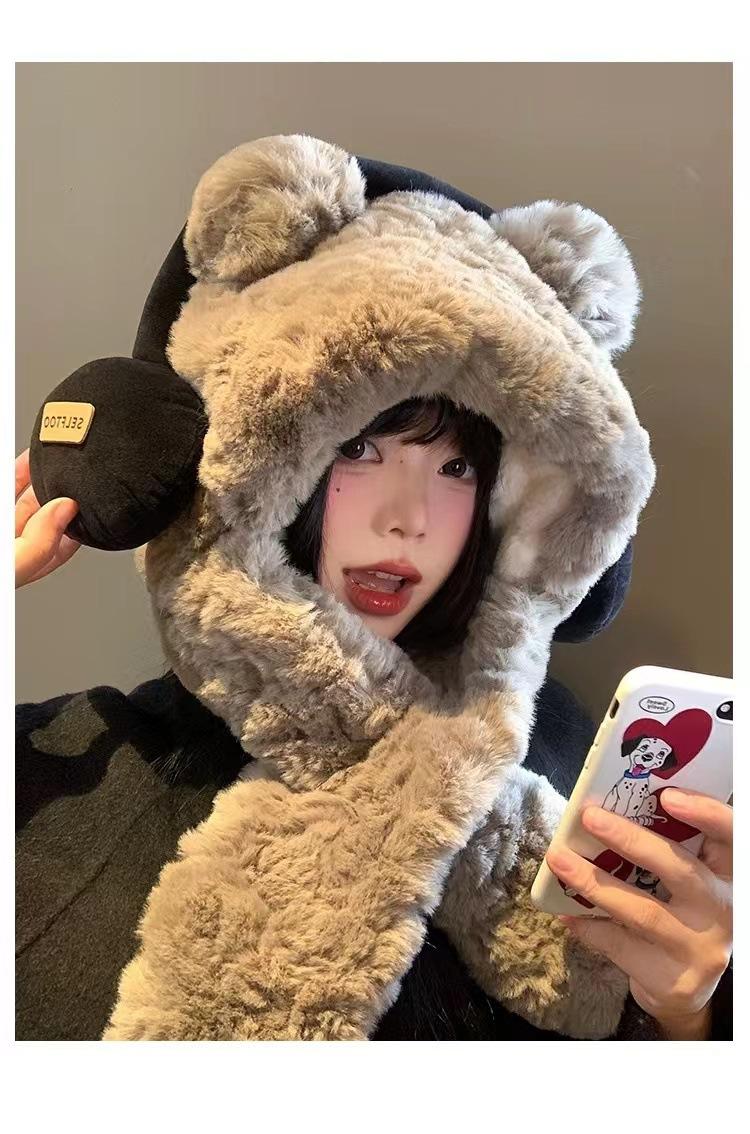 Gorro con auriculares y bufanda de oso, todo en uno, para mujer, otoño e invierno, bonito jersey de felpa grueso y cálido, protección para los oídos, gorro Lei Feng a la moda.