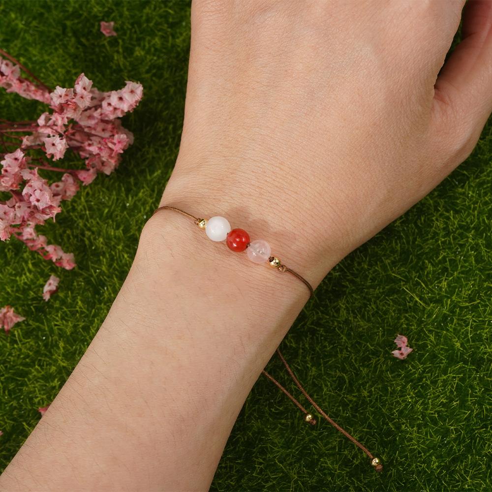 Pulsera de piedra natural estilo Mori diseño personalizado tejido a mano ajustable bloque de color pulsera de piedra cuerda de mano estilo ins para mujer