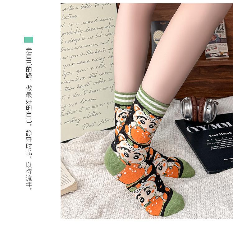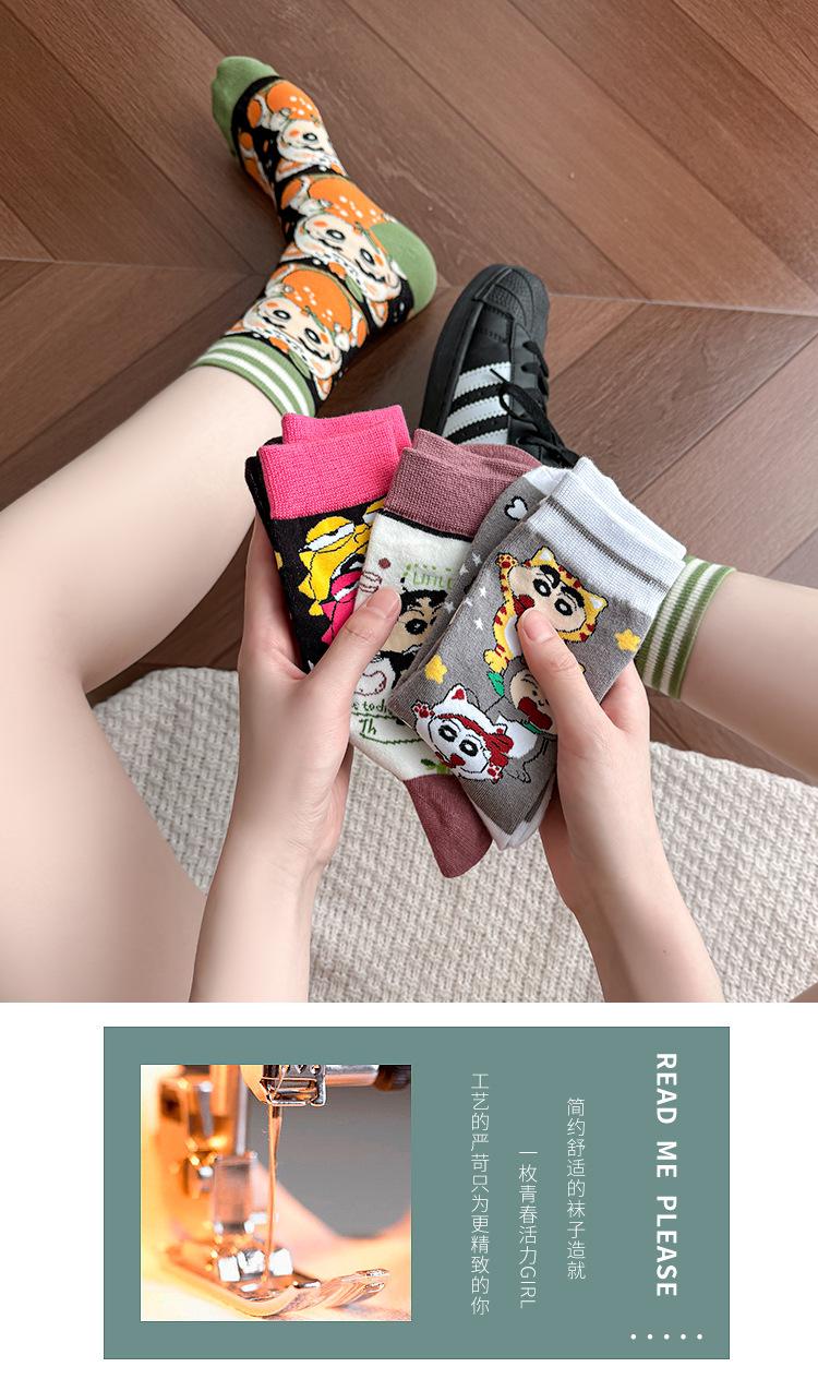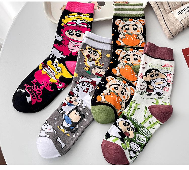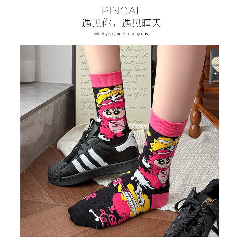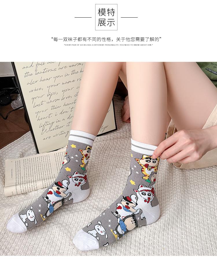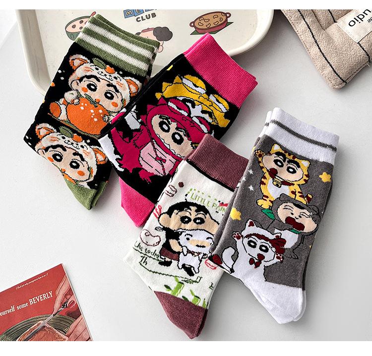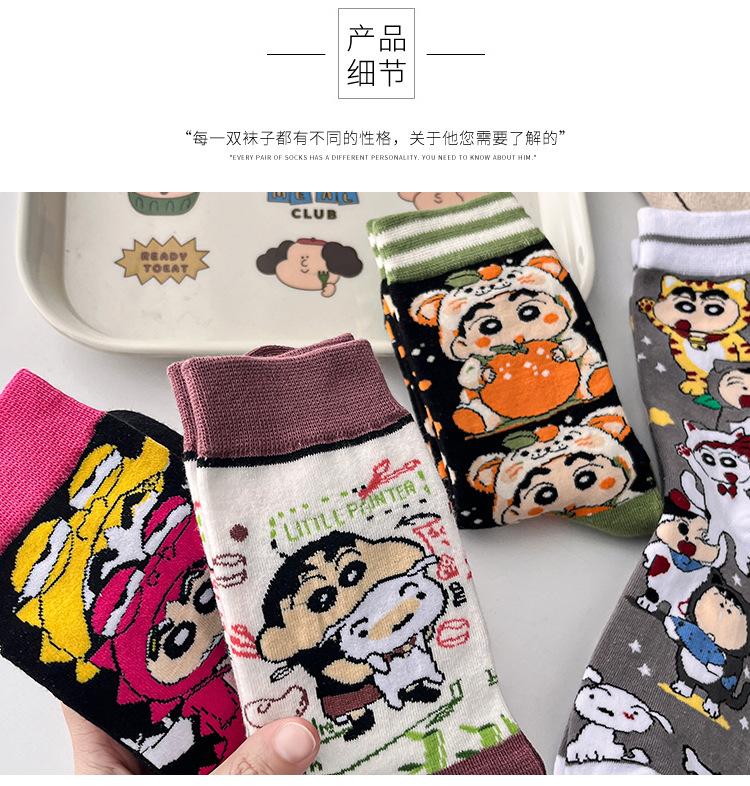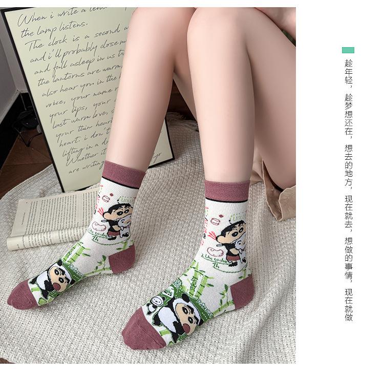 Calcetines de Dibujos Animados Japoneses Calcetines de Media Caña para Mujer Calcetines de Creyón Modernos de Verano Estilo Fino Shin-chan Calcetines Largos Primavera Otoño Estudiante Calcetines por Encima de la Rodilla