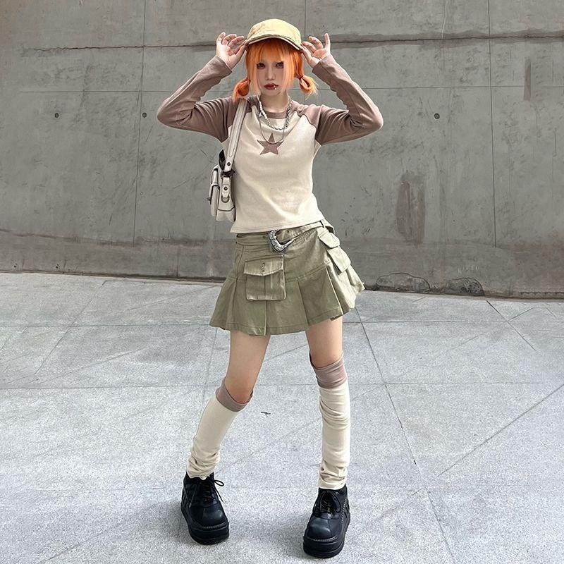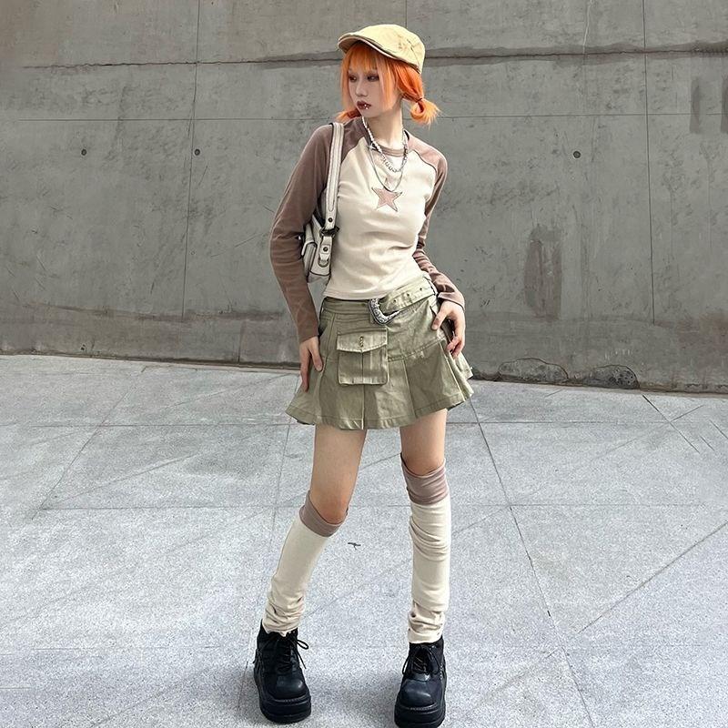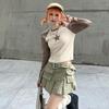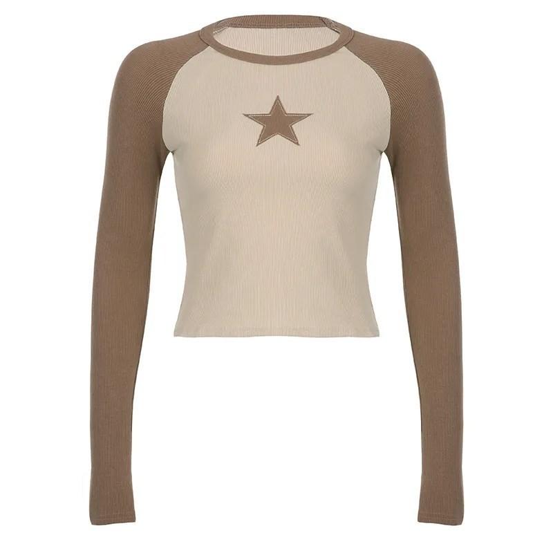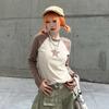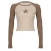 2025 Primavera/Verano Nuevo Americano Calle Retro Moda Estampado Top Tendencia Chica Hot Recorte Bloque de Color Manga Larga