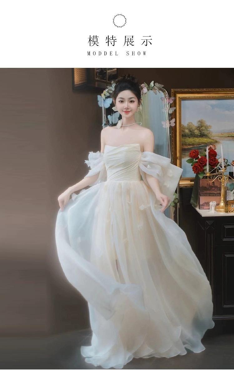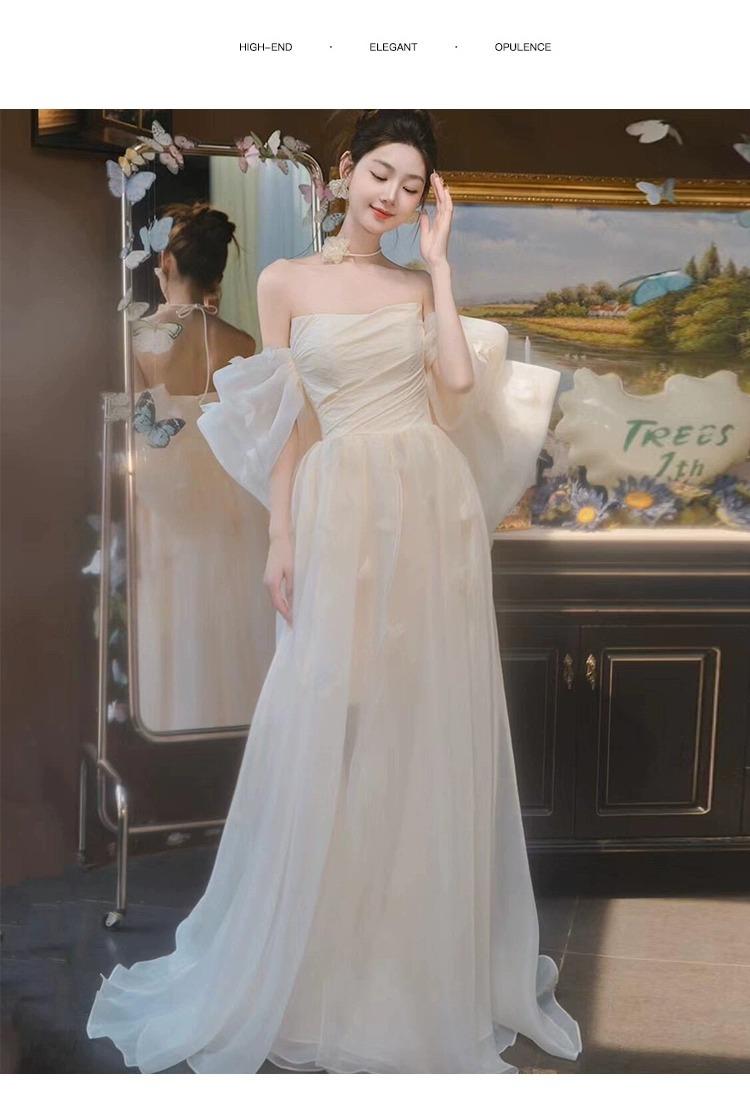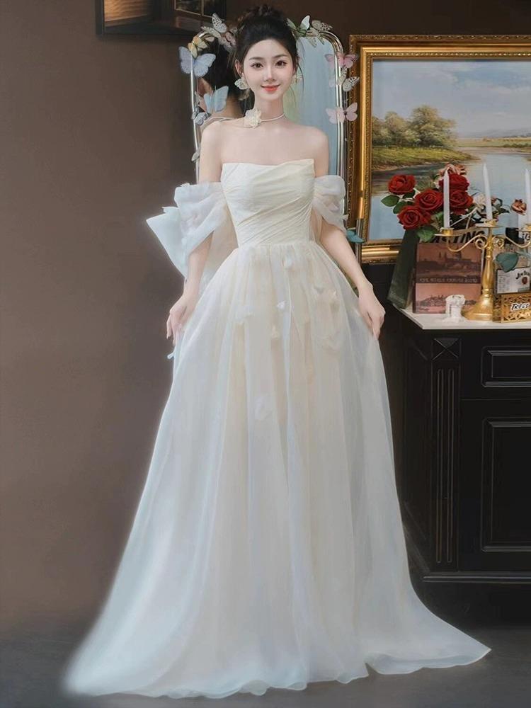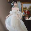 Vestido de Novia de Viaje Ligero con Un Hombro Mori Súper Hada Sueño Princesa Novia Vestido Largo de Cola Vestido de Bienvenida