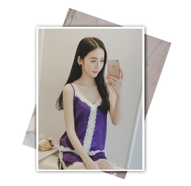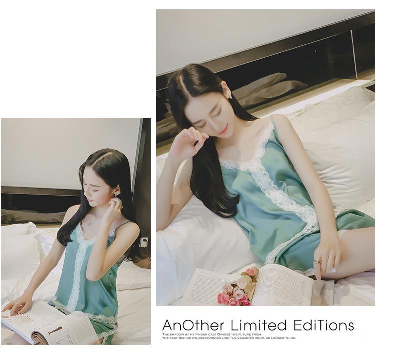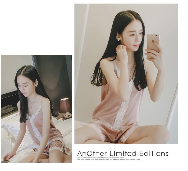 Pijama de Encaje de Verano Sexy para Mujer Verano Dos Piezas Dulce y Lindo Separado Camisola de Seda de Hielo Shorts Set de Pijama