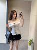 Foto Real~Romántico Francés Hombro Descubierto Un Hombro Diseño Holgado Top + Traje de Falda Casual de Lunares para Mujer