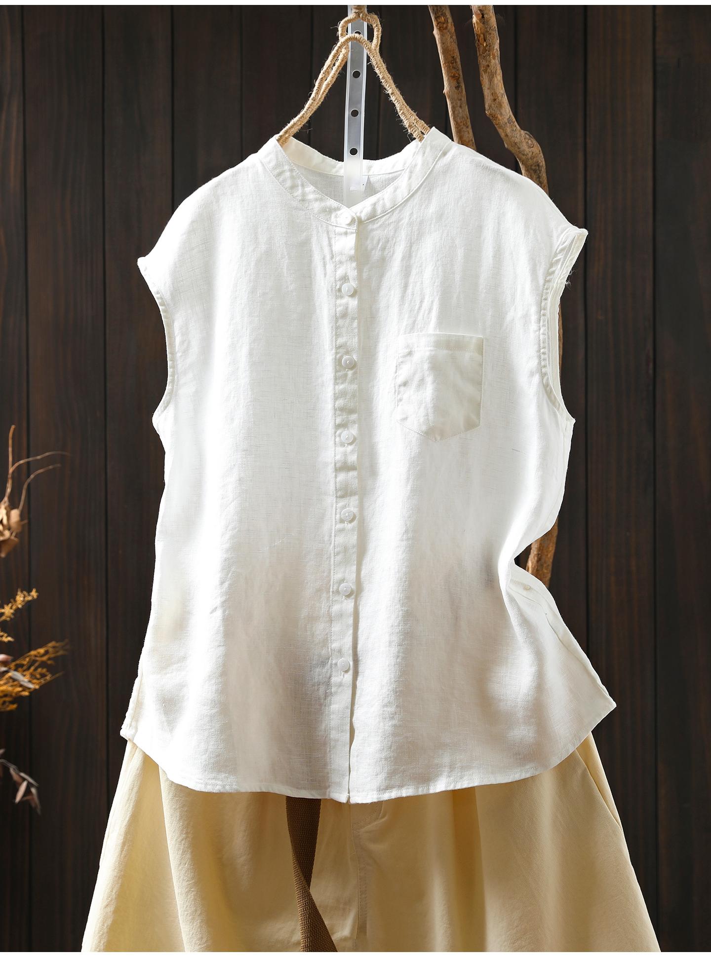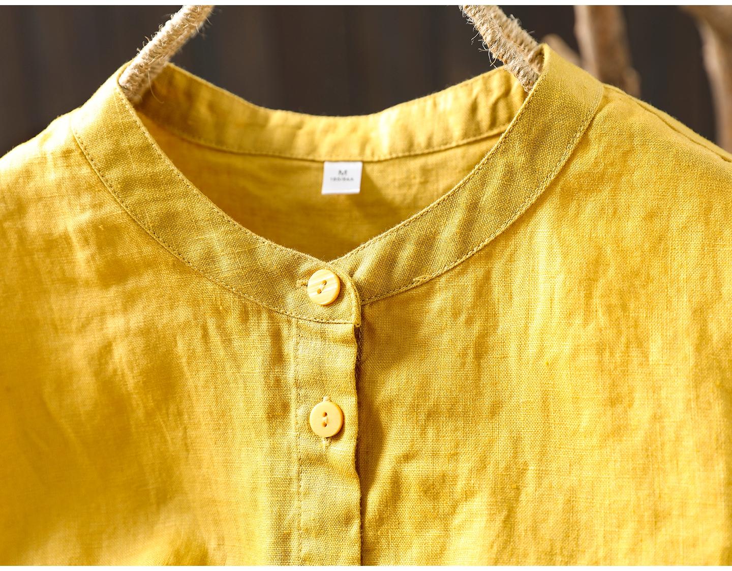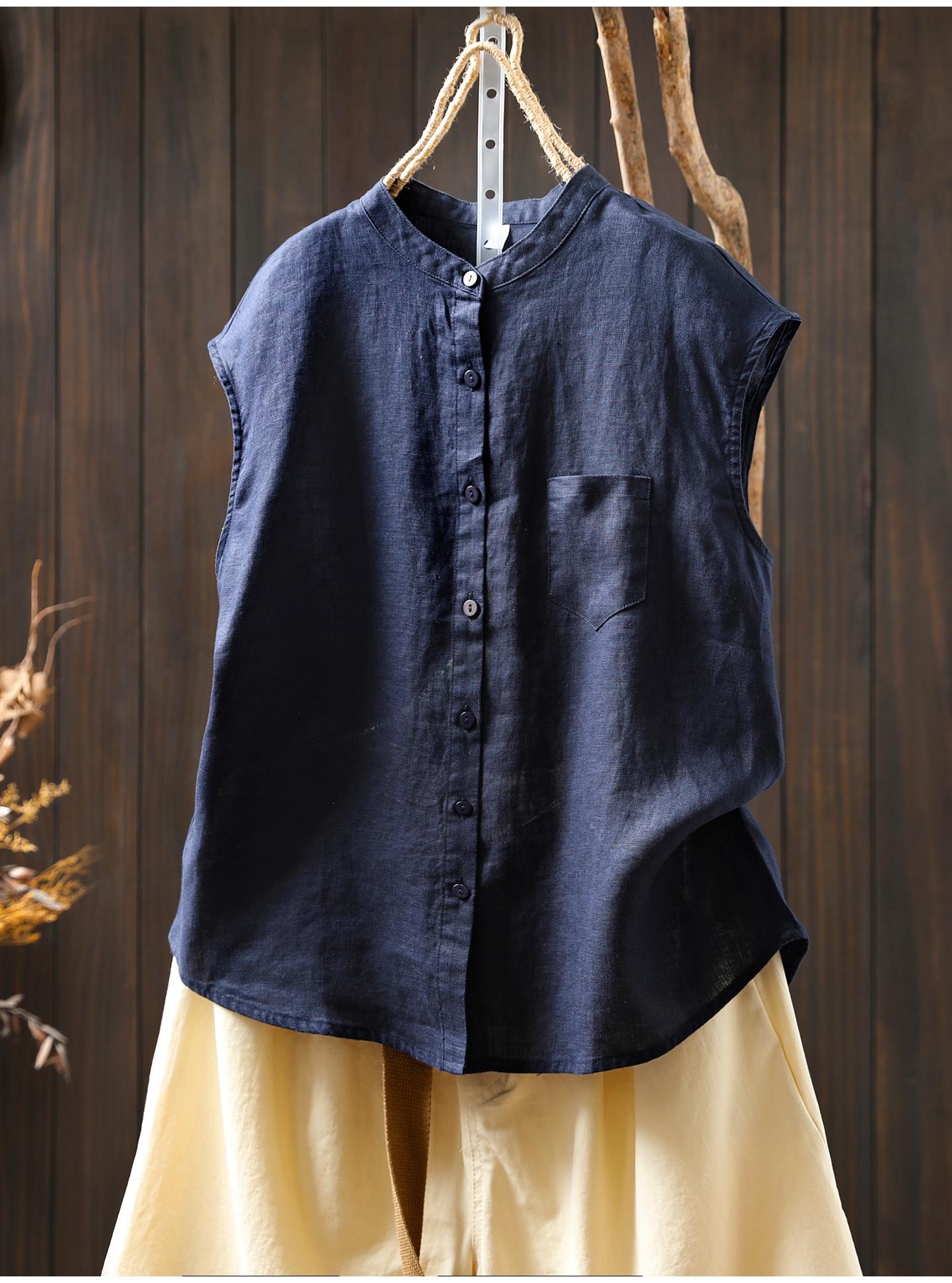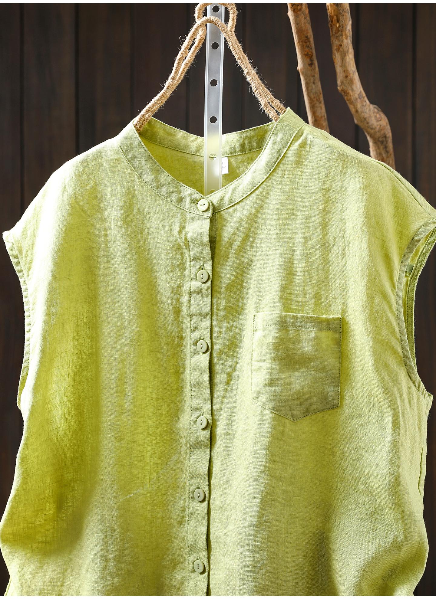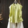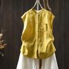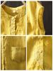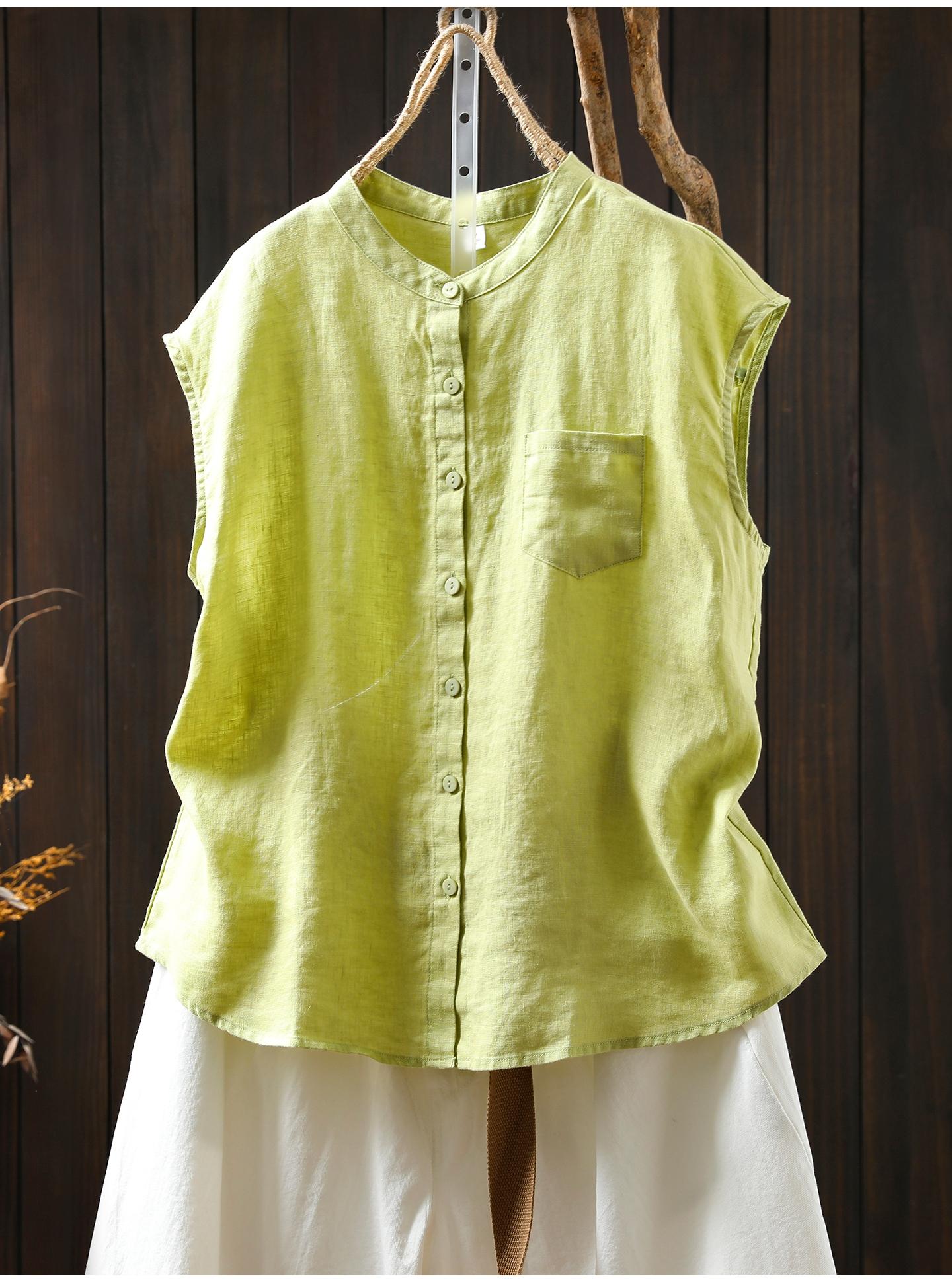 Camisa Amarilla de Lino Puro sin Mangas Mujer 2025 Verano Nueva Color Sólido Cuello Mao Holgada Casual Literaria Versátil Top