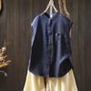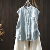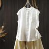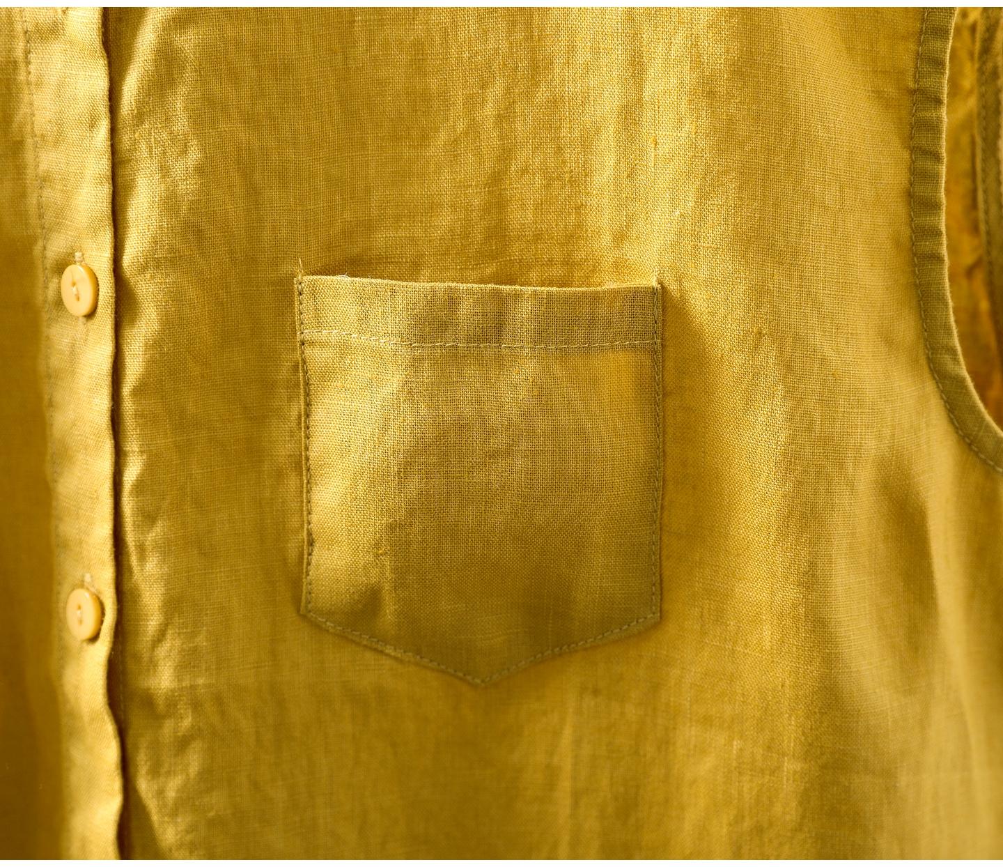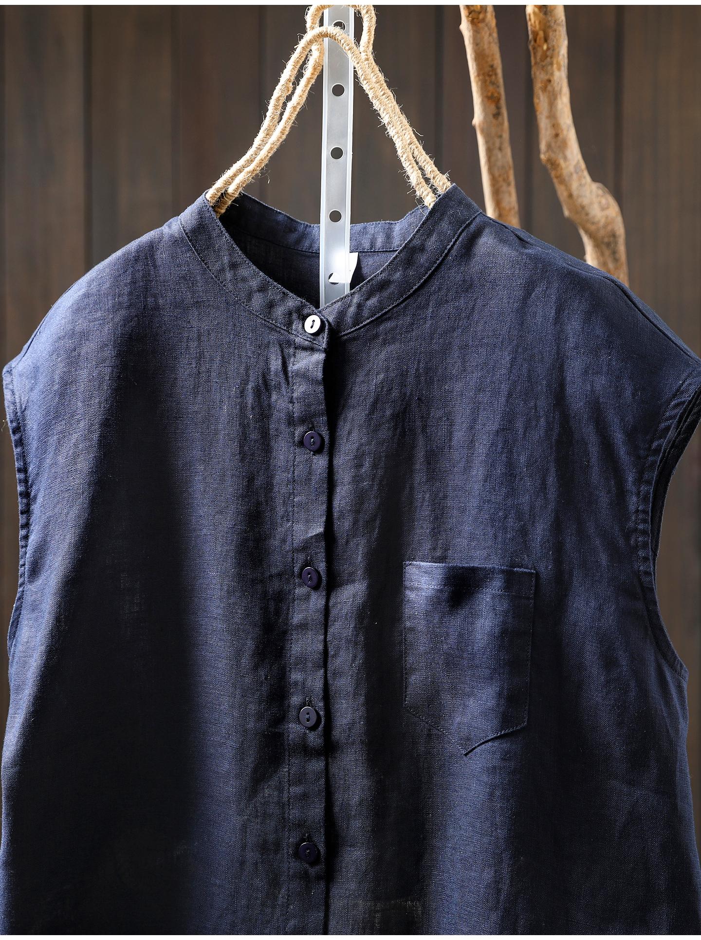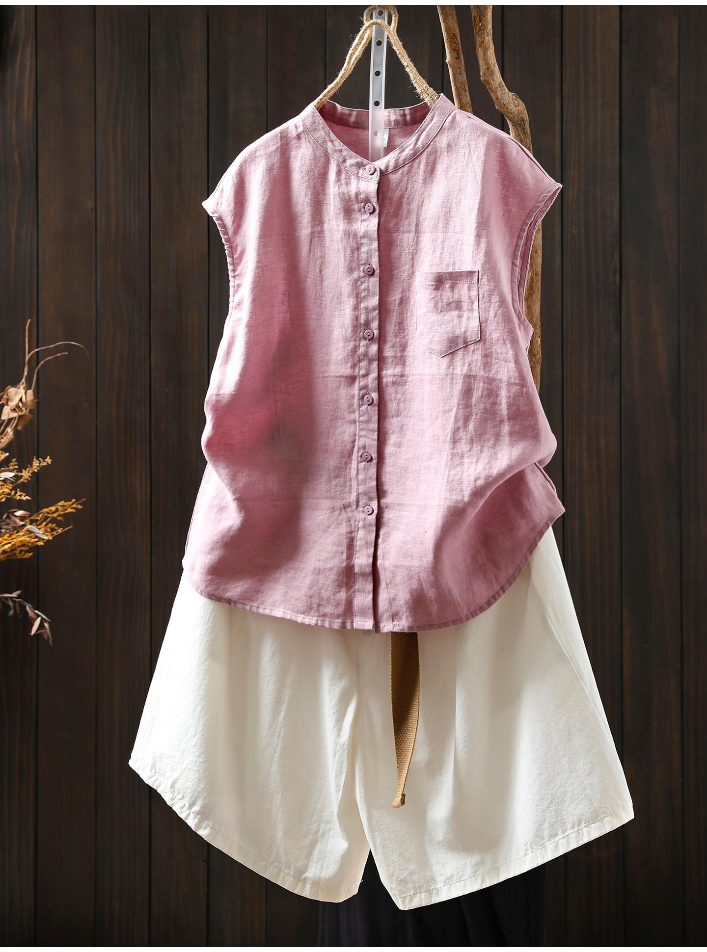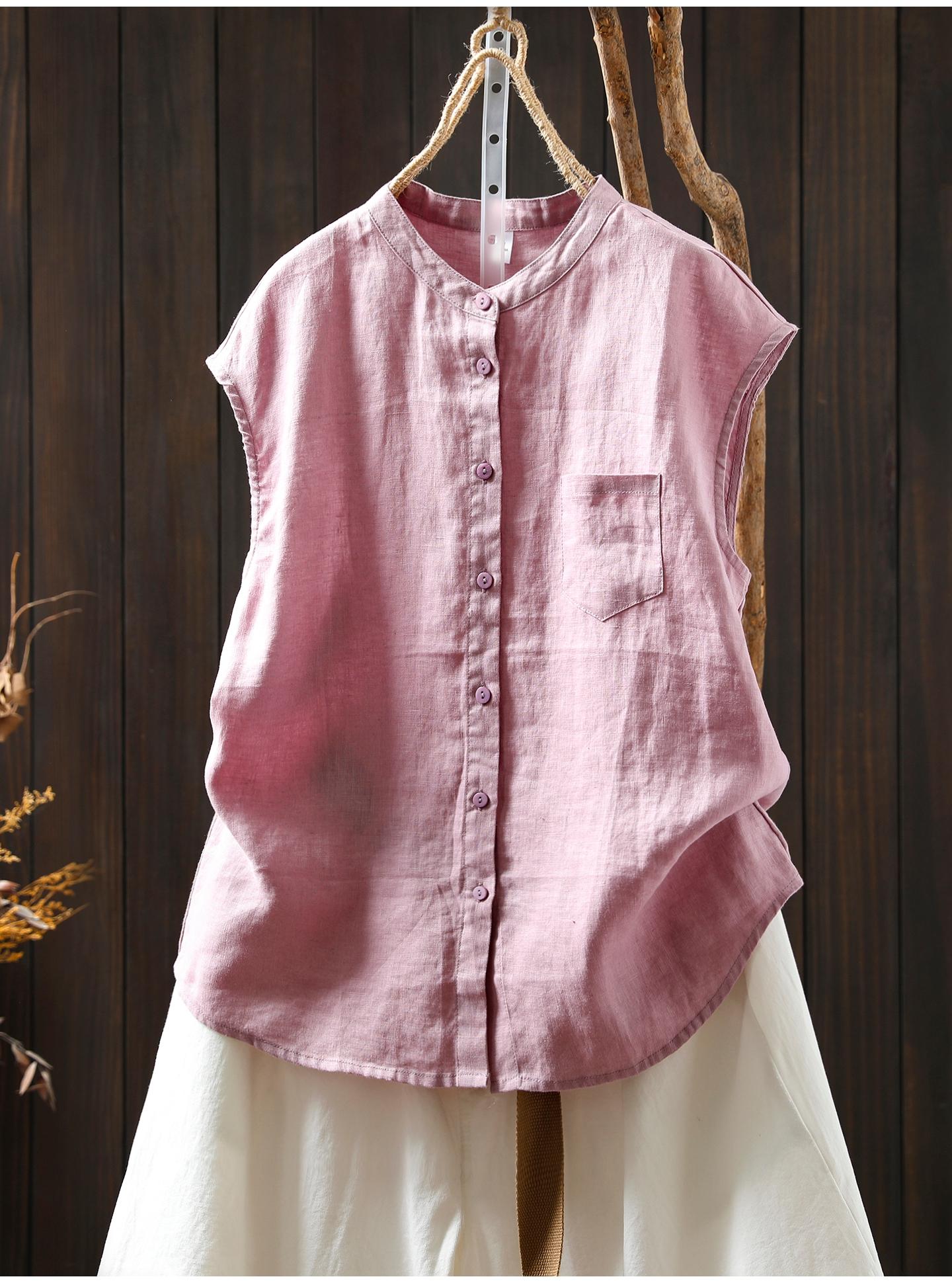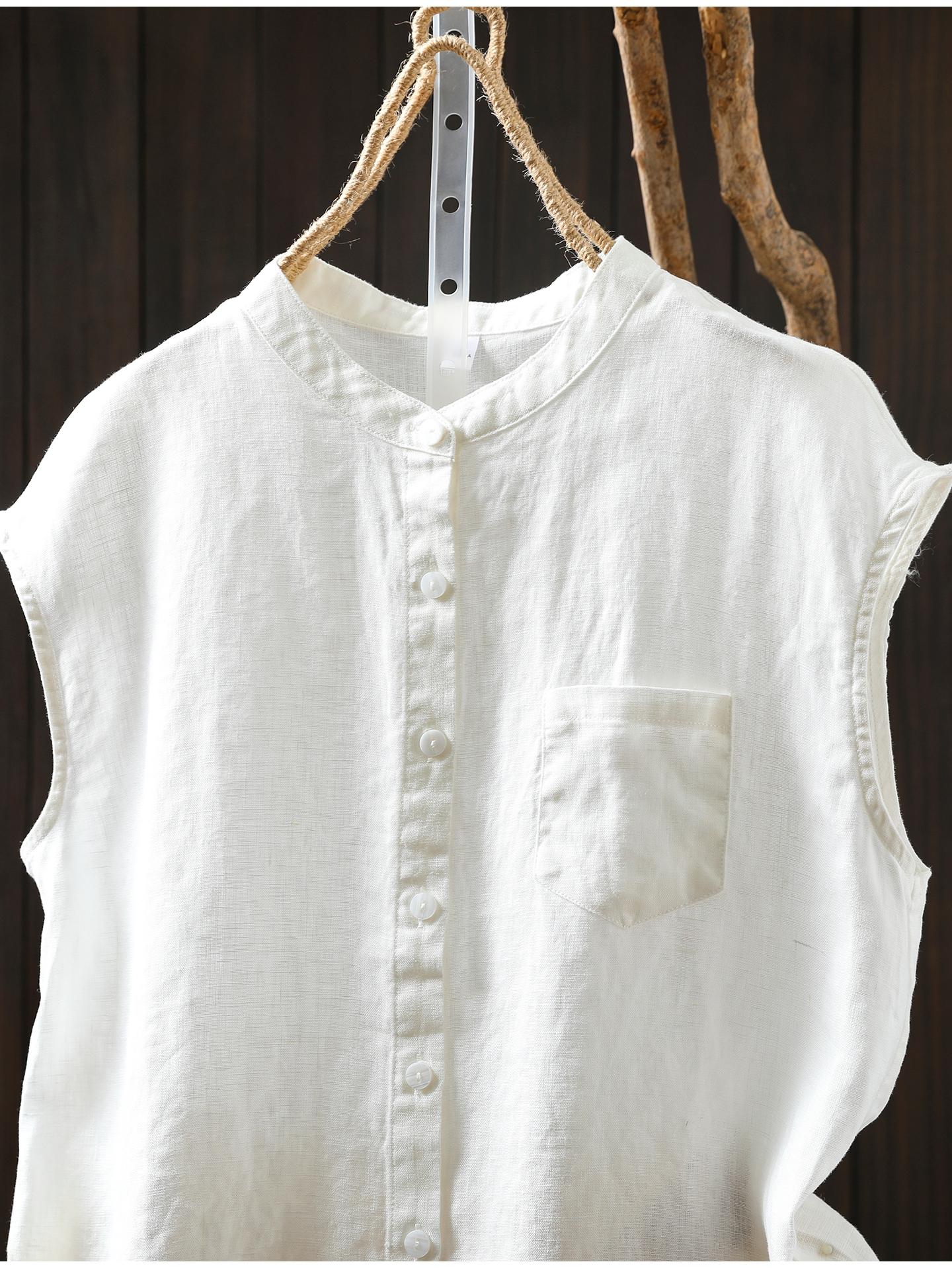 Camisa Amarilla de Lino Puro sin Mangas Mujer 2025 Verano Nueva Color Sólido Cuello Mao Holgada Casual Literaria Versátil Top