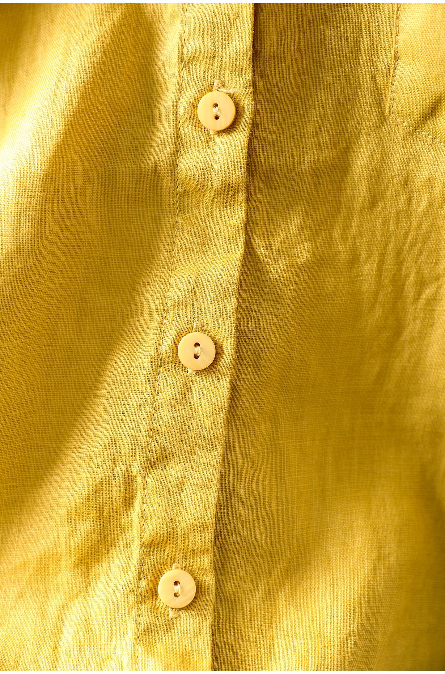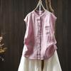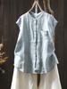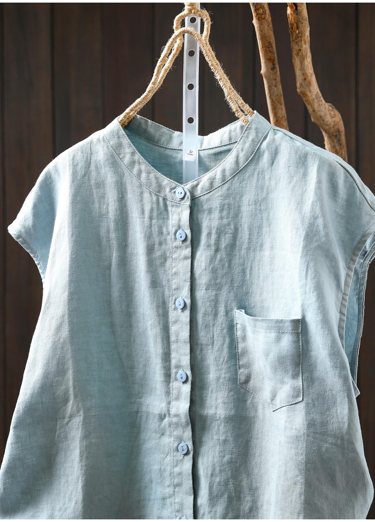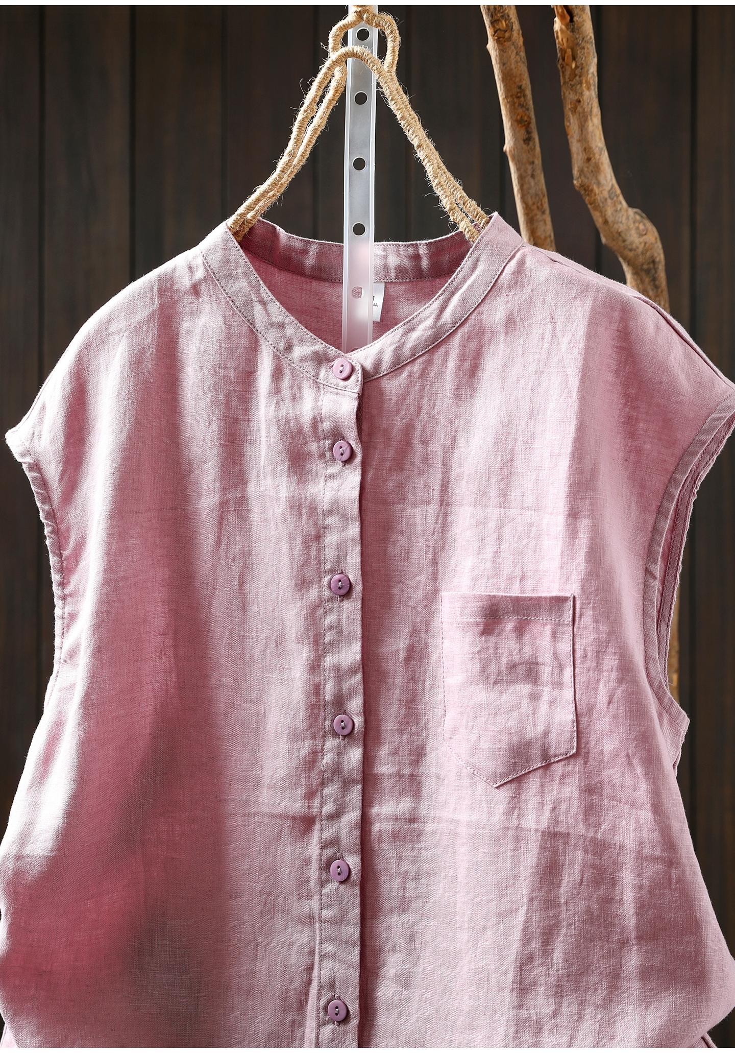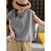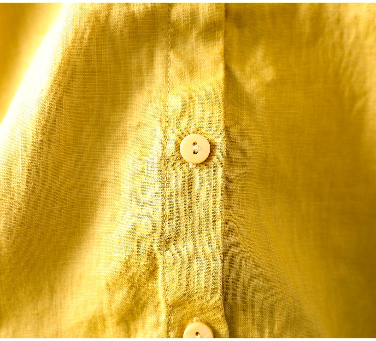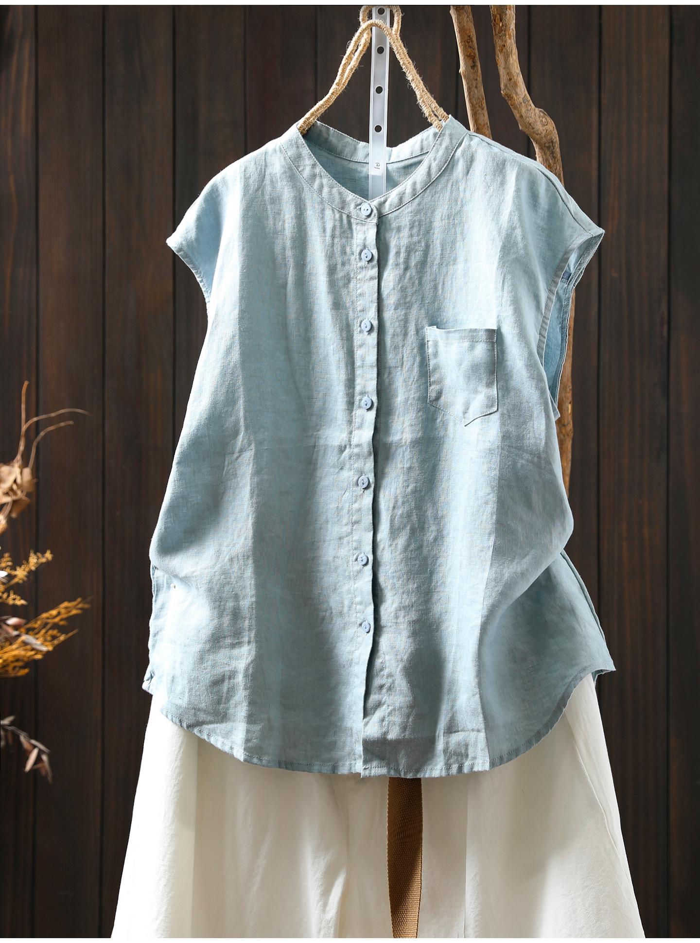 Camisa Amarilla de Lino Puro sin Mangas Mujer 2025 Verano Nueva Color Sólido Cuello Mao Holgada Casual Literaria Versátil Top