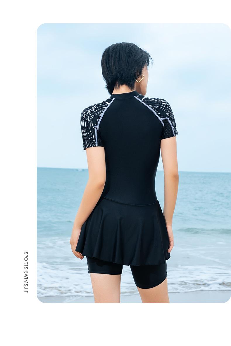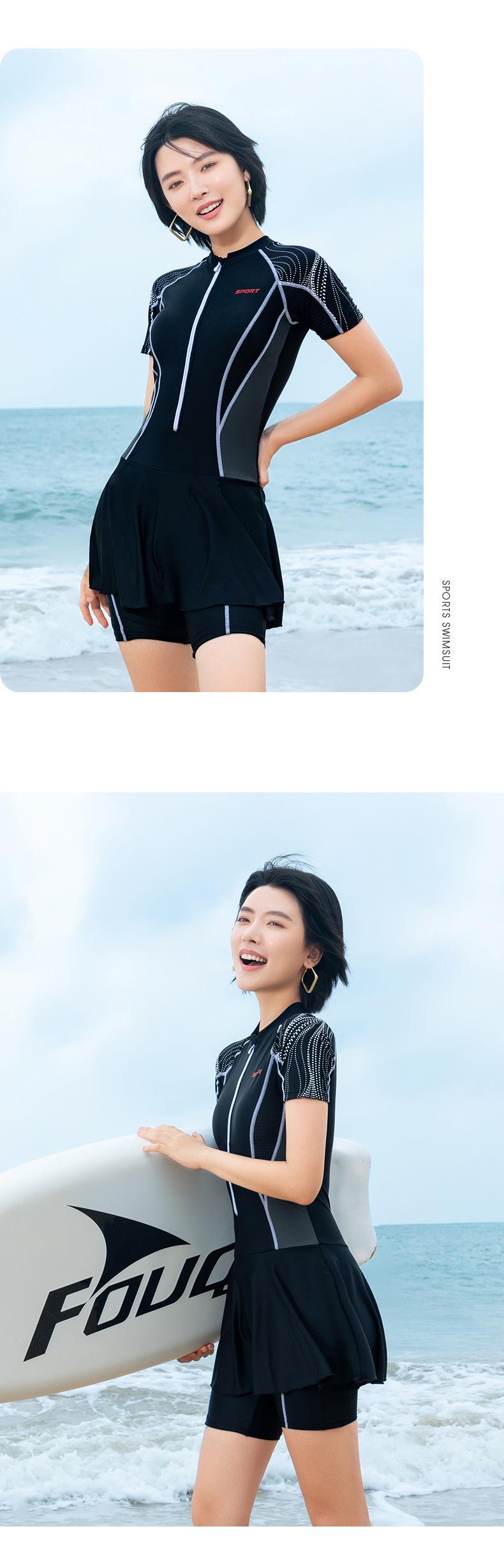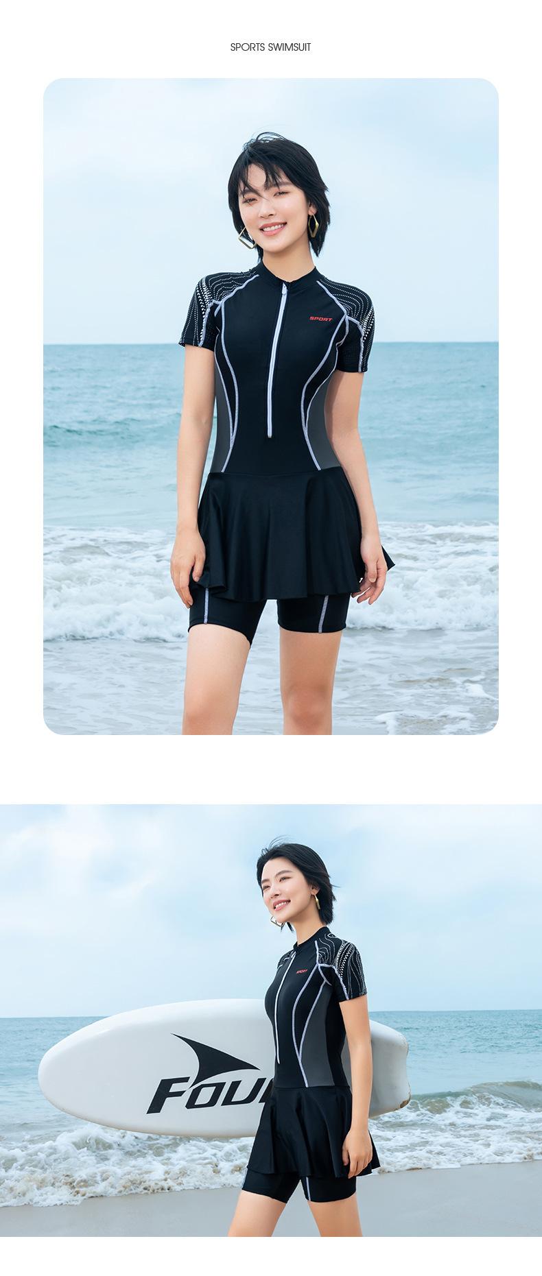 Traje de baño deportivo nuevo 2024 para mujer, traje de buceo de manga corta con falda, de una pieza con cremallera, traje de baño de talla grande para aguas termales, Amazon