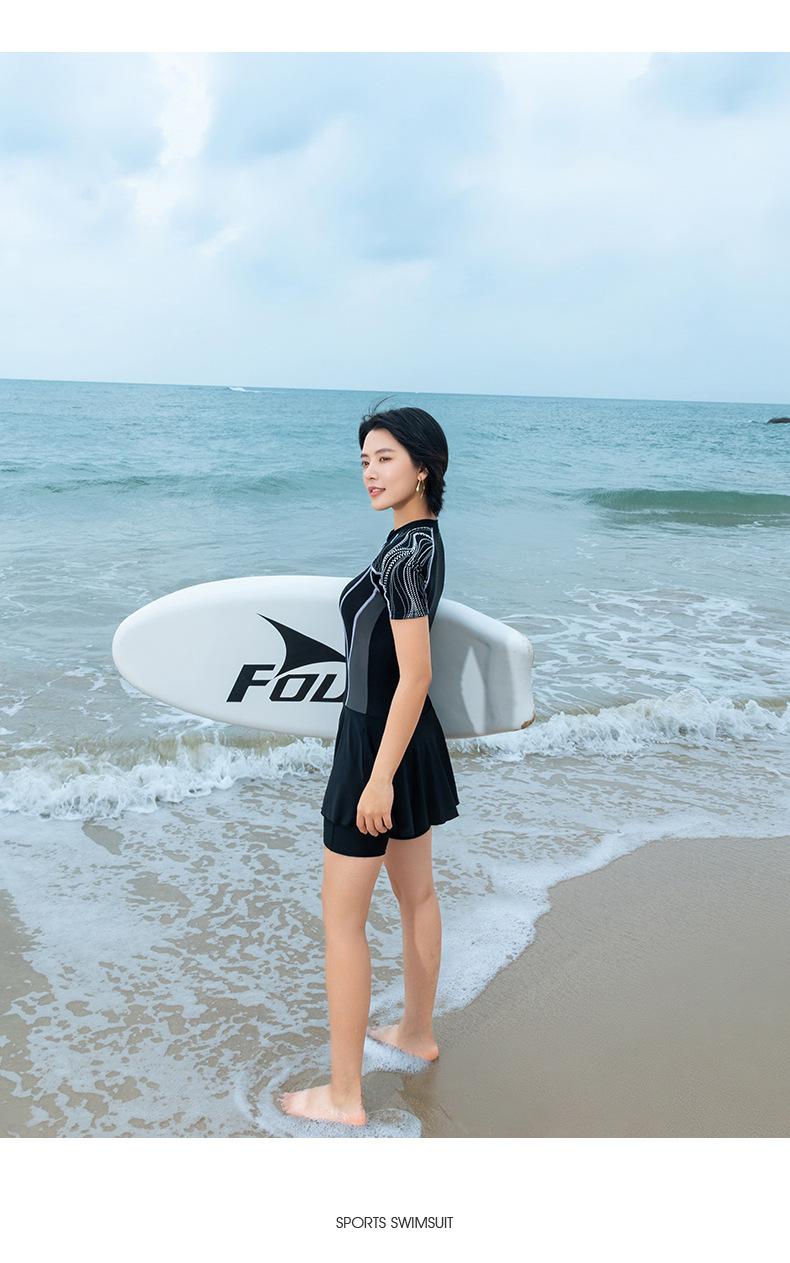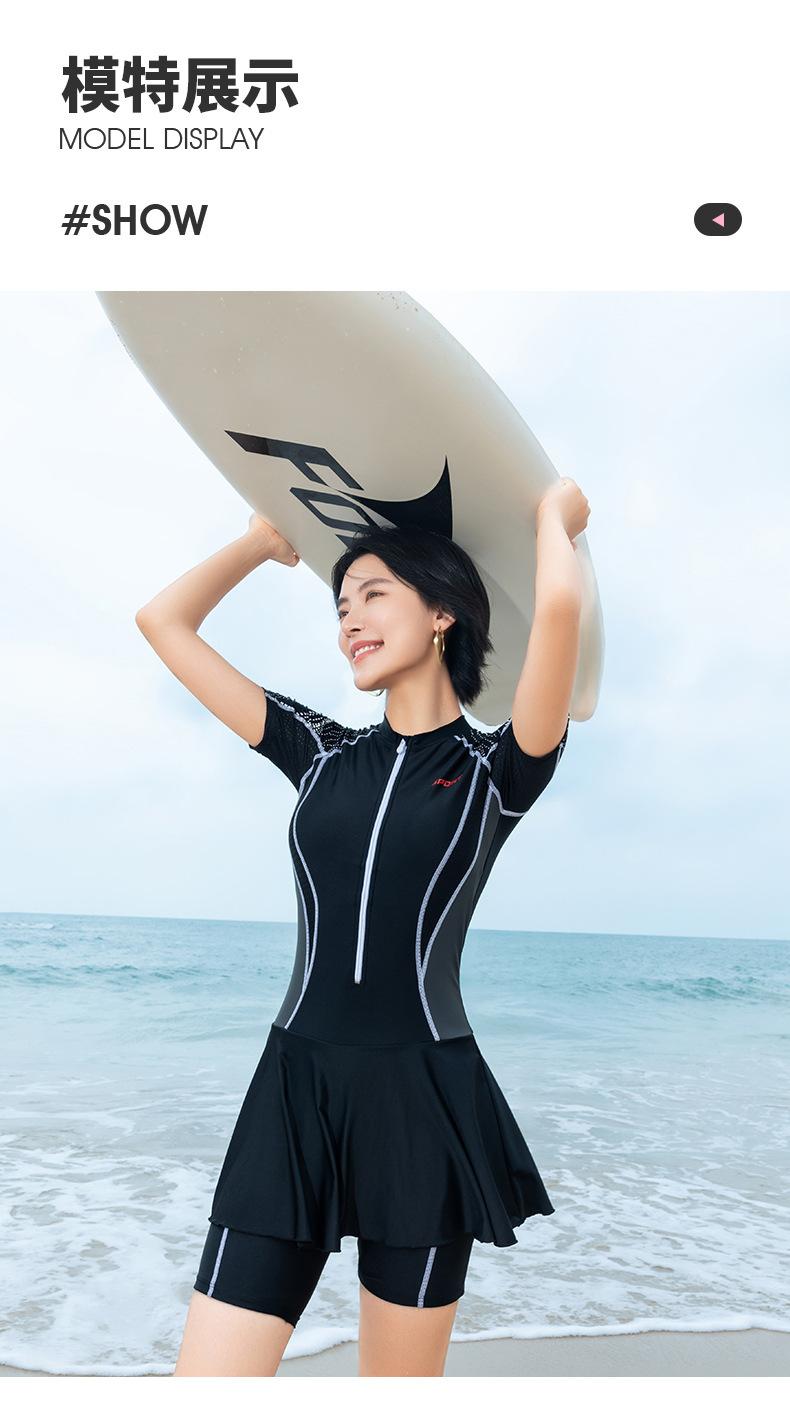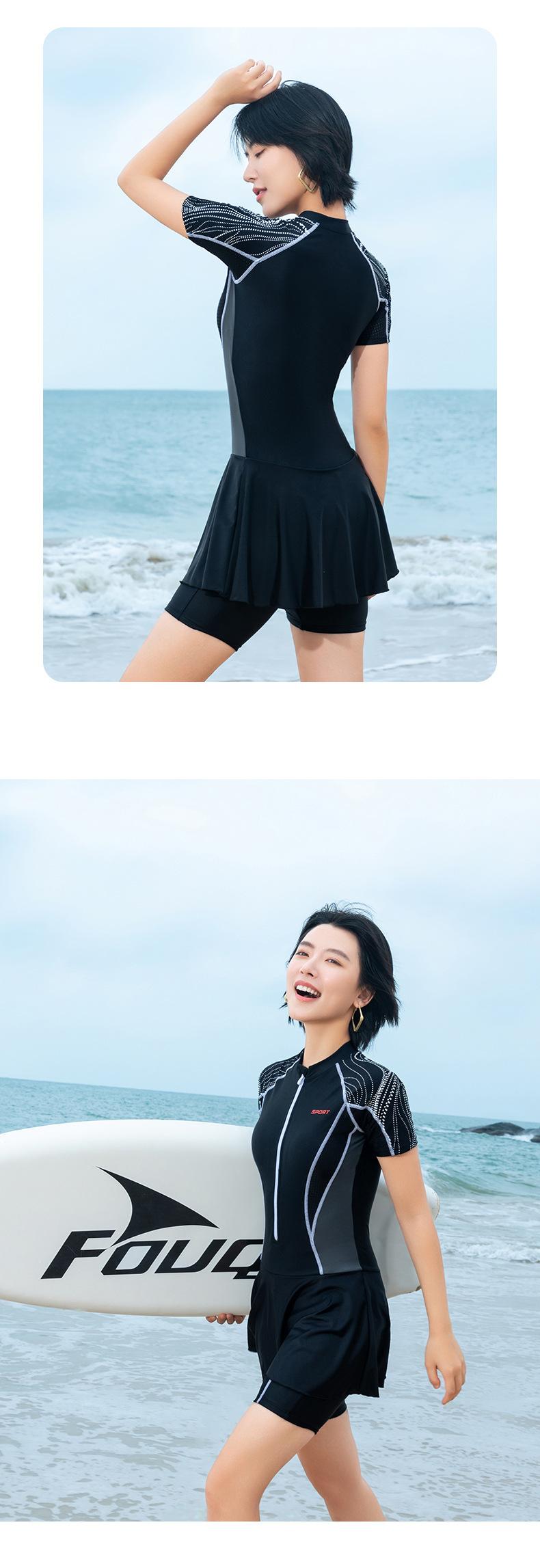 Traje de baño deportivo nuevo 2024 para mujer, traje de buceo de manga corta con falda, de una pieza con cremallera, traje de baño de talla grande para aguas termales, Amazon