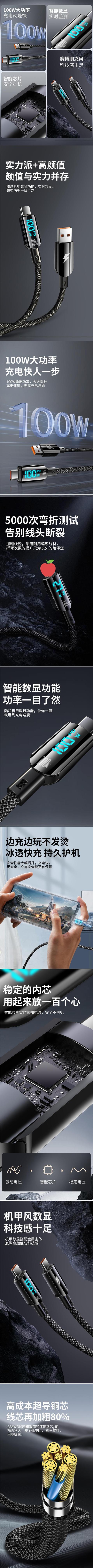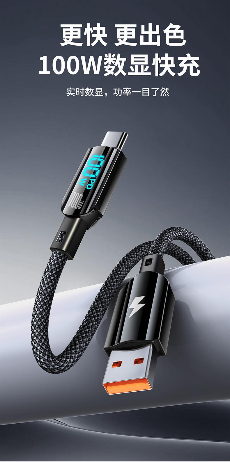 Aplicable a Apple Huawei Cable de Carga Rápida de 100w Pantalla Digital Inteligente Cable de Carga para Teléfono Móvil Cable de Datos Tipo C Trenzado de Nailon