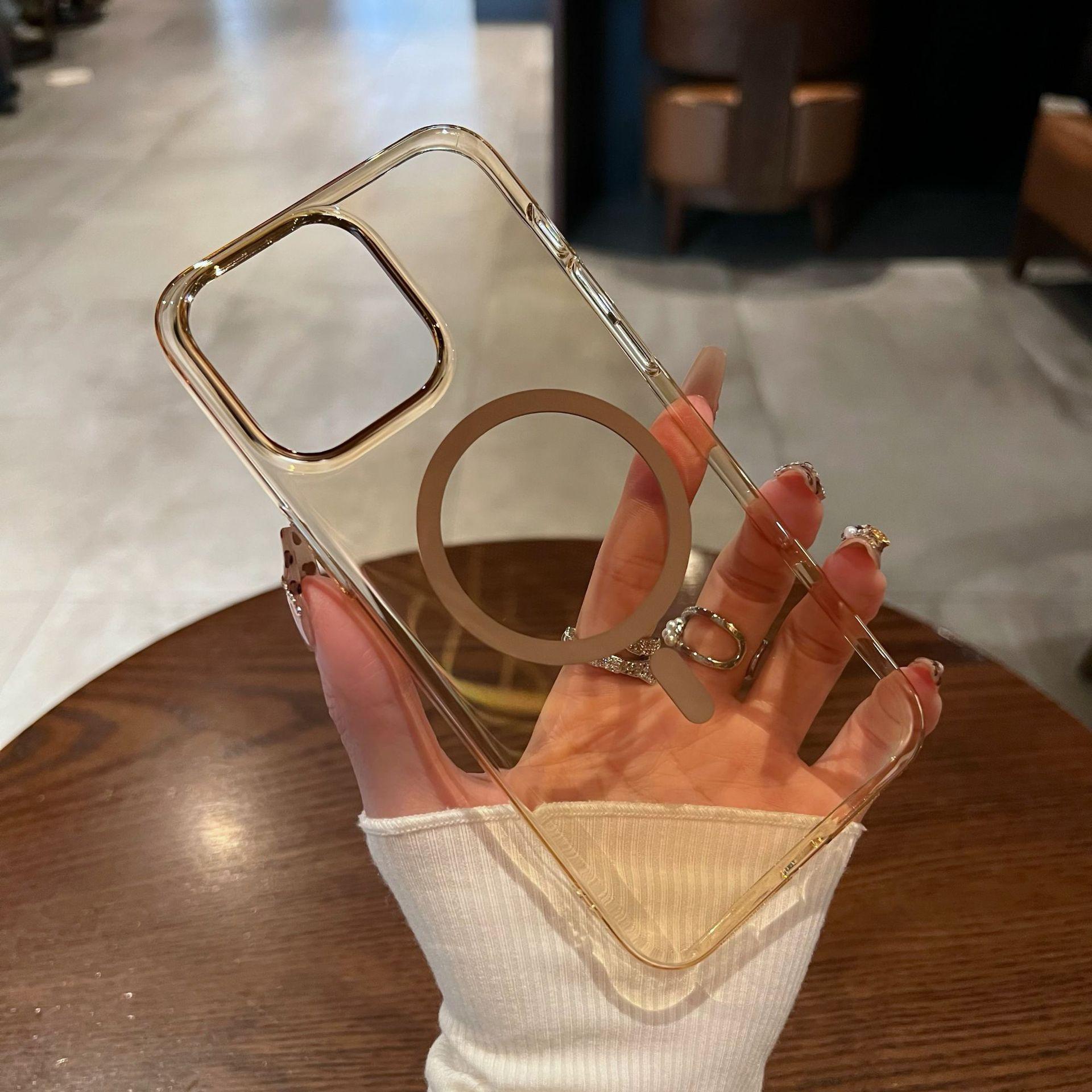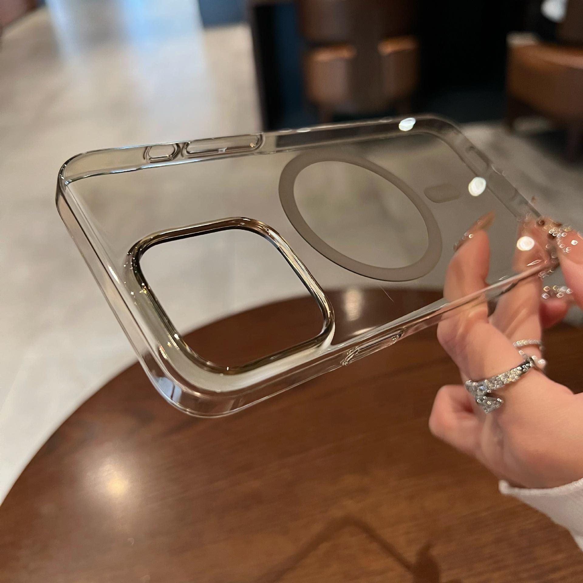 Compatible magnético que no amarillea para Apple 17promax funda de teléfono transparente iphone16 antiarañazos PC ultradelgada 15 funda rígida