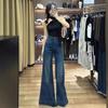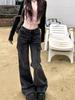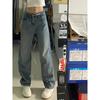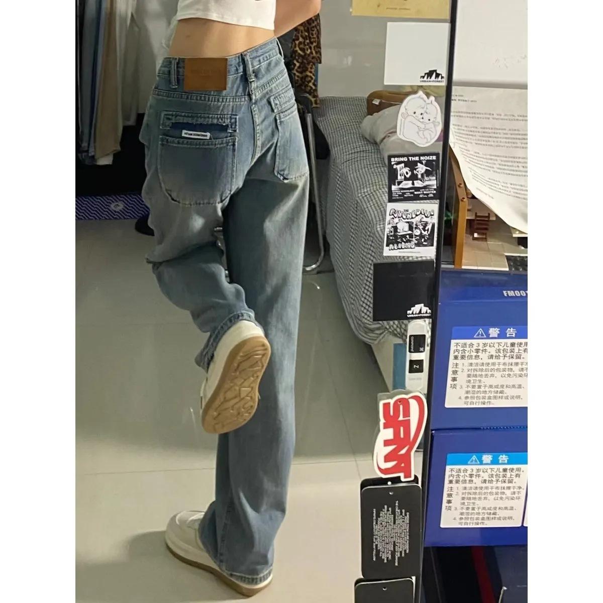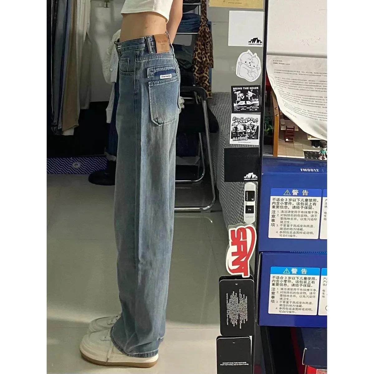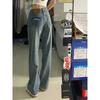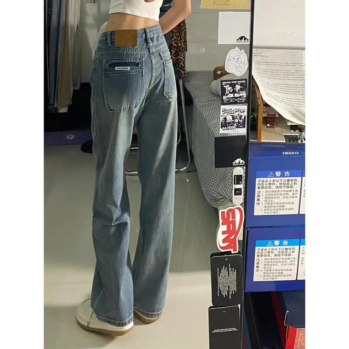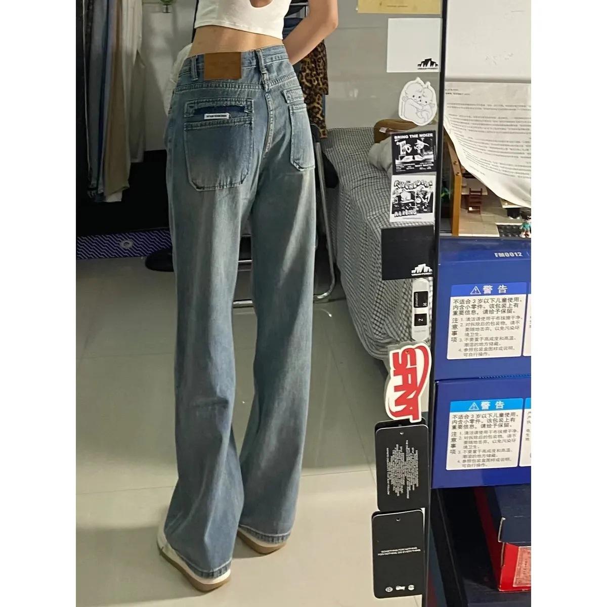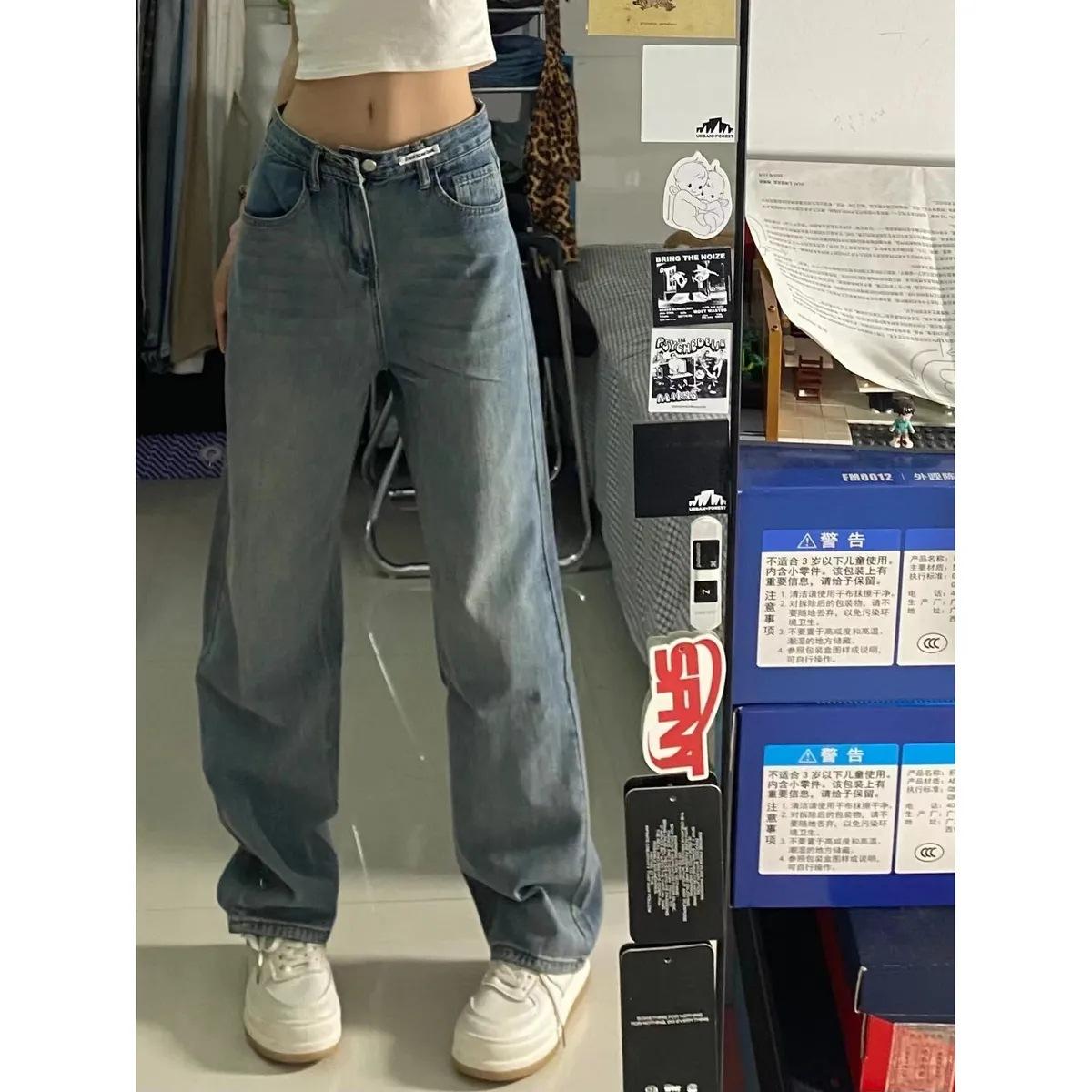 Jeans Americanos Retro Azules de Cintura Alta y Pierna Ancha para Mujer Primavera Nuevo Diseño Sensación Ajuste Slim Holgados Adelgazantes Rectos Pantalones Largos