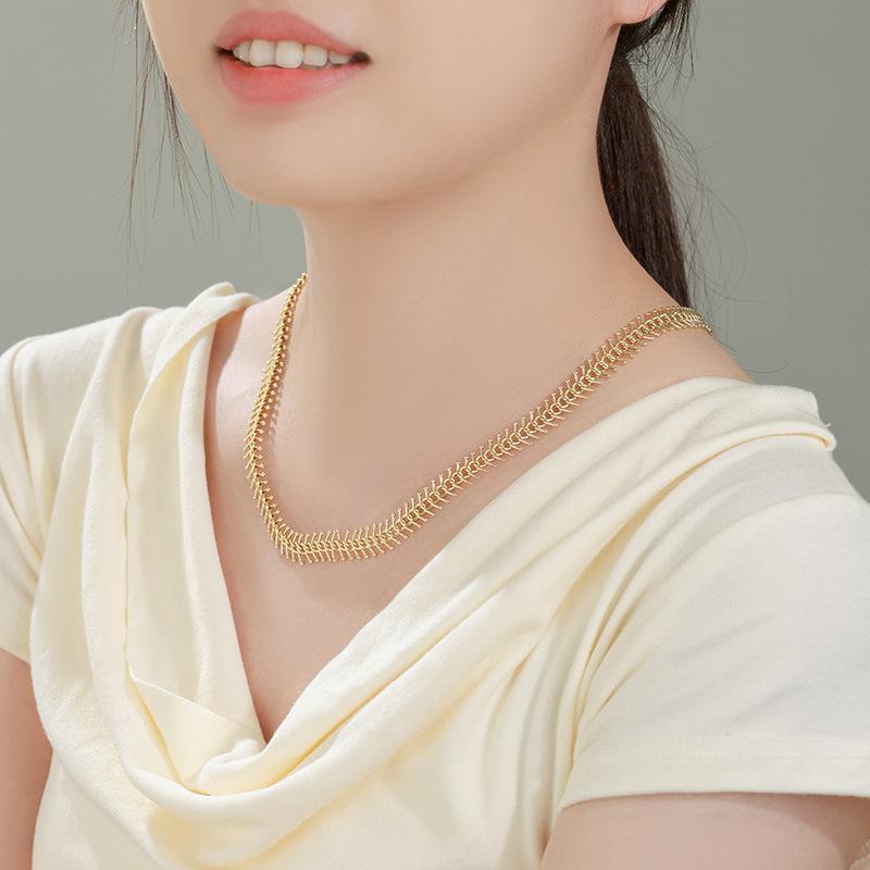Xu Ping Nueva Moda Aleación Galvanizado Oro 14k Europeo y Americano Transfronterizo Personalidad Espina de Pescado Cadena Clavícula Collar Estilo Frío