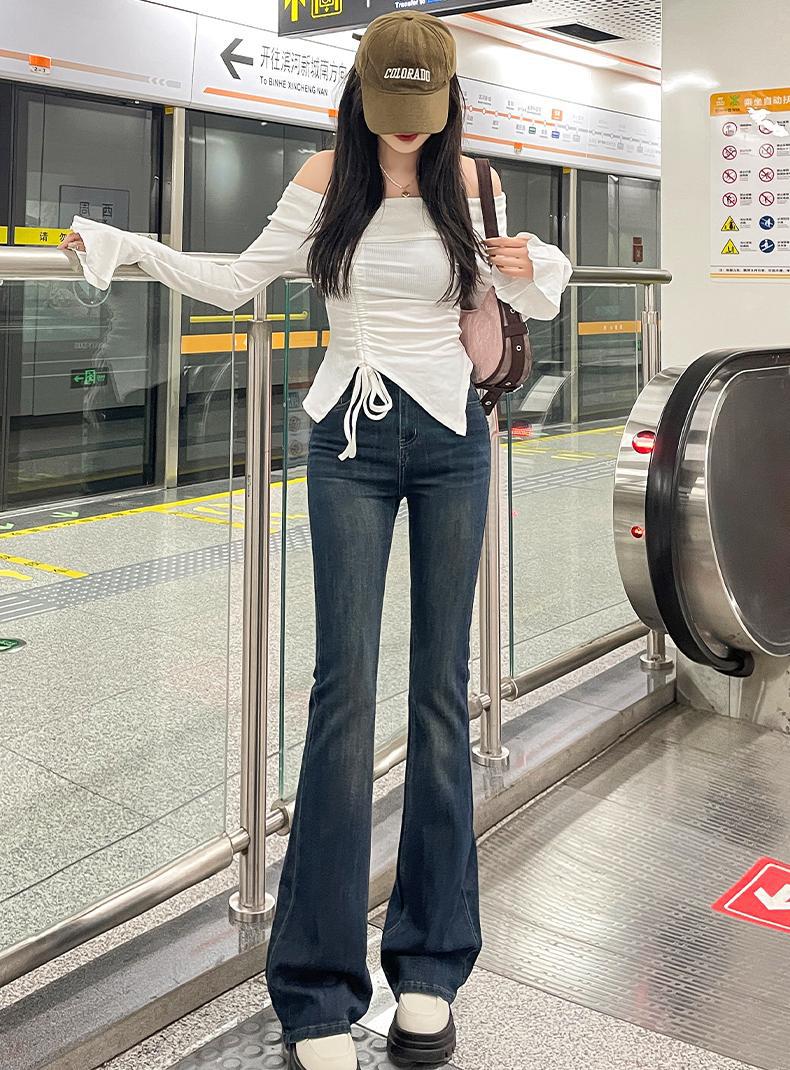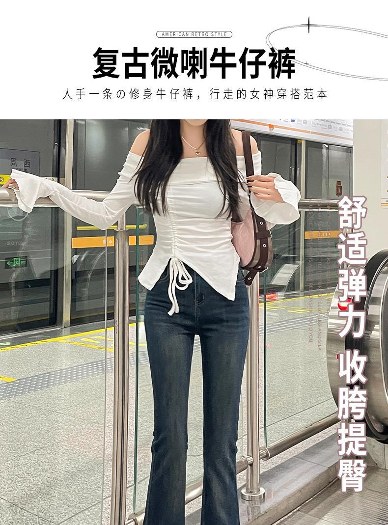 Jeans Retro Microacampanados para Mujer Nuevo Estilo 2024 Verano Cintura Alta Ajuste Slim Pantalones Largos de Herradura para Personas Pequeñas