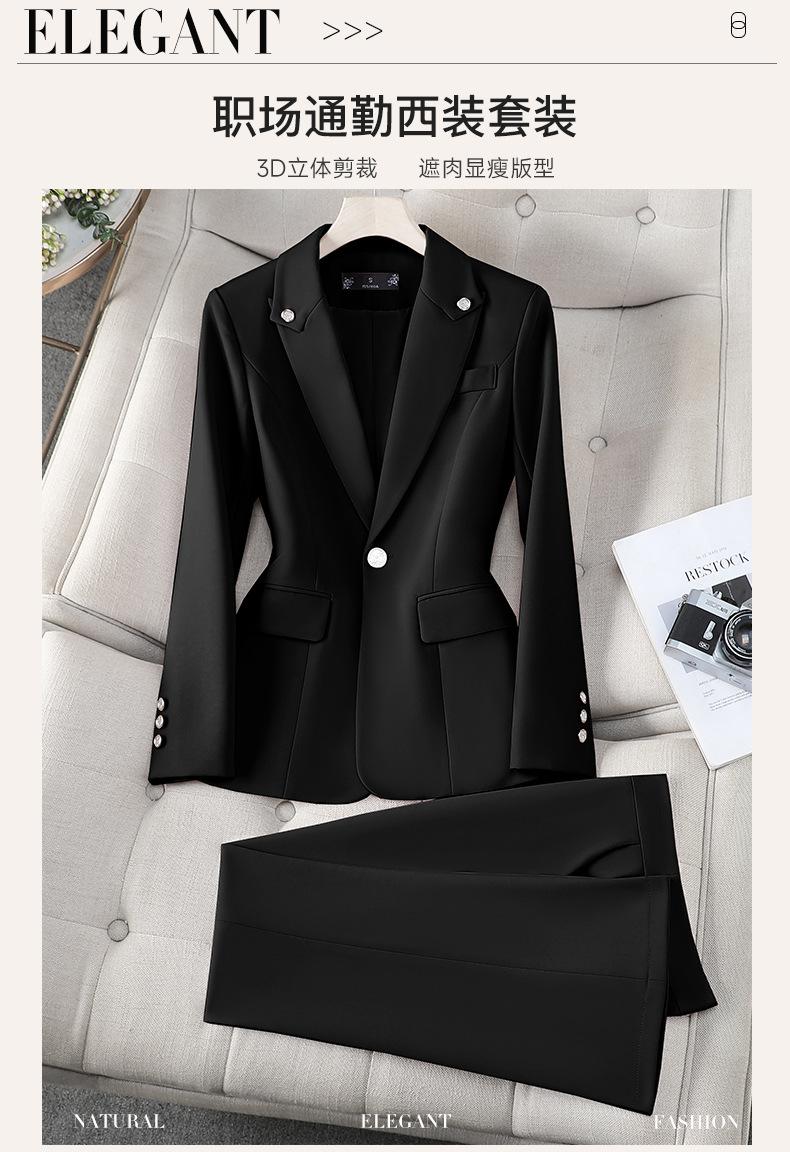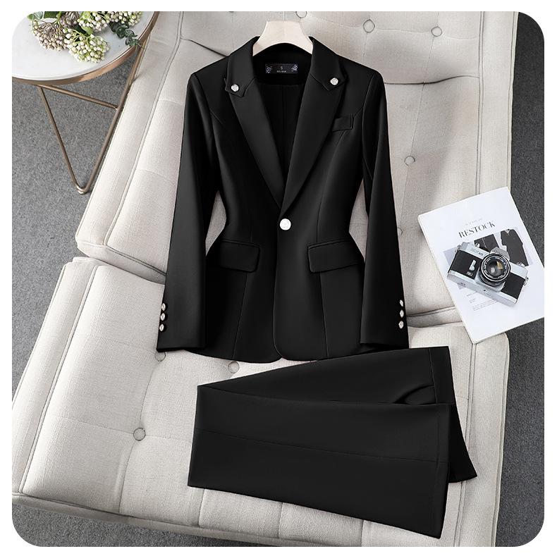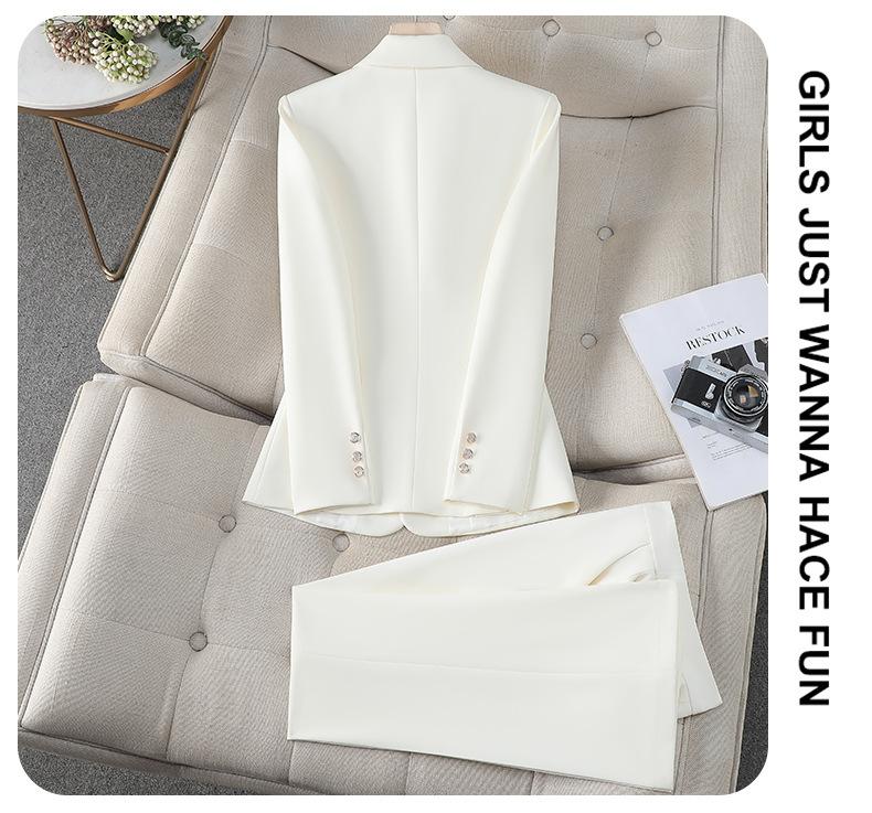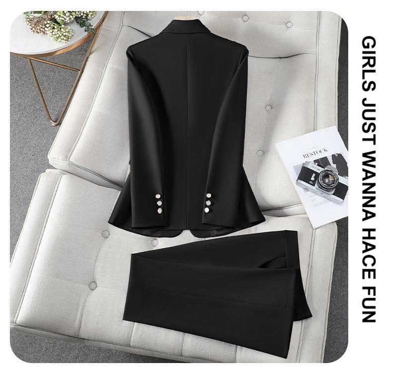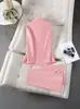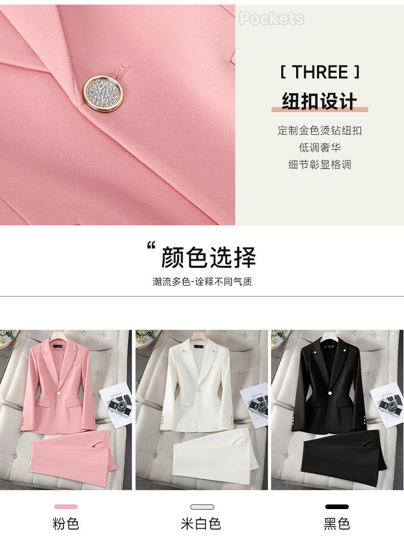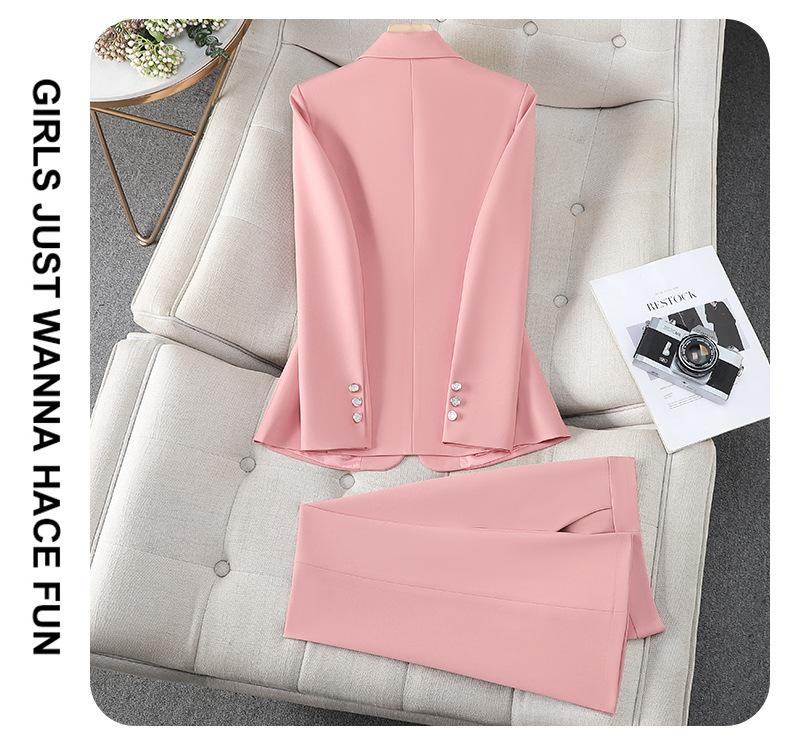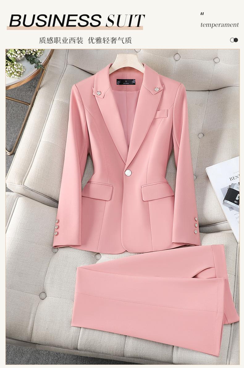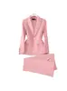 Conjunto de Traje Profesional Rosa de Manga Larga para Mujer Blazer Pantalón Conjunto de Dos Piezas Moda Simple Otoño e Invierno Nuevo Temperamento